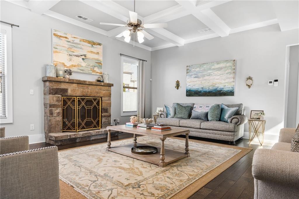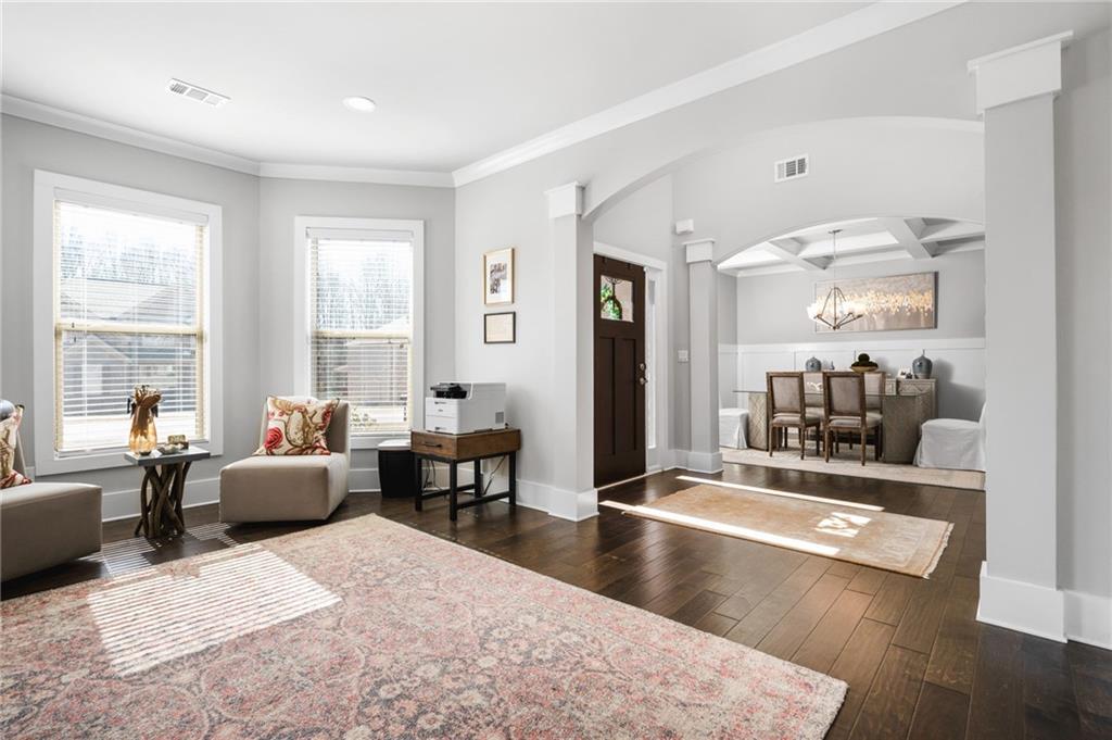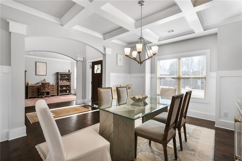 - FeaturesCoffered Ceiling(s), Crown Molding, Disappearing Attic Stairs, Double Vanity, Entrance Foyer 2 Story, High Ceilings 10 ft Main, Vaulted Ceiling(s), Walk-In Closet(s)