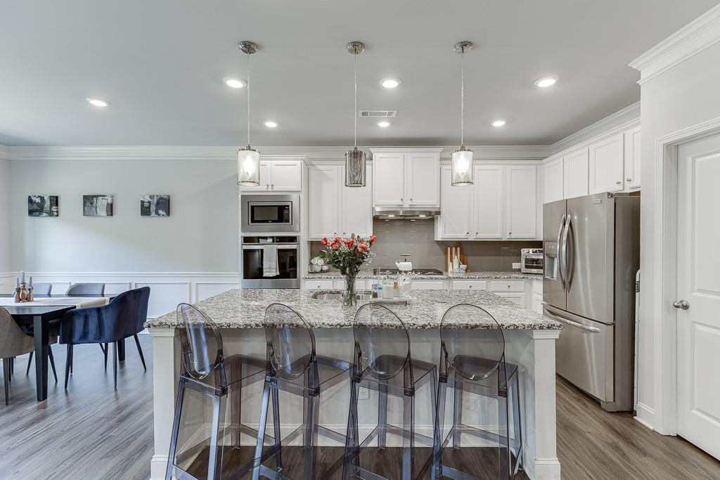 - KitchenBreakfast Bar, Breakfast Room, Cabinets White, Eat-in Kitchen, Kitchen Island, Pantry Walk-In, Stone Counters