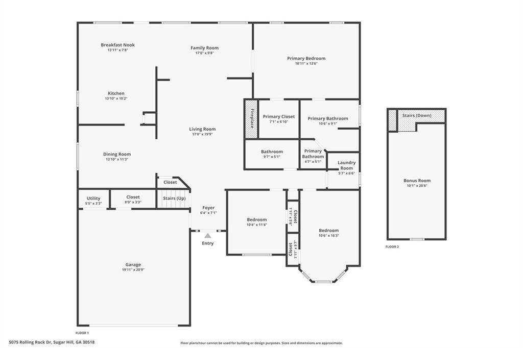 PRICED BELOW RECENT SALES- MOVE INTO INSTANT EQUITY! Hard to find Ranch with a Bonus Room in Sugar Hill, walking distance to Sugar Hill Elementary, EE Robinson Park, and all of the shops, dining, and entertainment of Sugar Hill! Open-concept Family Room with new LVP flooring! Kitchen features granite countertops, generous cabinet & counter space, and beautiful wood cabinets. Room for entertaining in the formal Dining Room OR Sunroom/Living Room with built-in shelving. Spacious Primary Suite with walk-in closet & ensuite bath with granite countertops. Two Secondary Bedrooms share Full Bathroom. Laundry Room on main! Upstairs, the Bonus Room is finished and perfect for Office, Storage, Playroom, or even a Fourth Bedroom! Enjoy the private, wooded back yard from the patio, fully fenced with a NEW privacy fence! Quiet, cul-de-sac lot in prime location! Roof, HVAC, Gutters, and Flooring all recently updated! Sold As-Is.