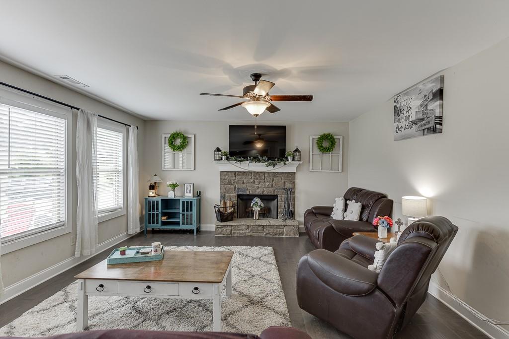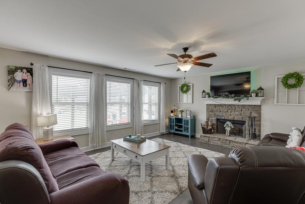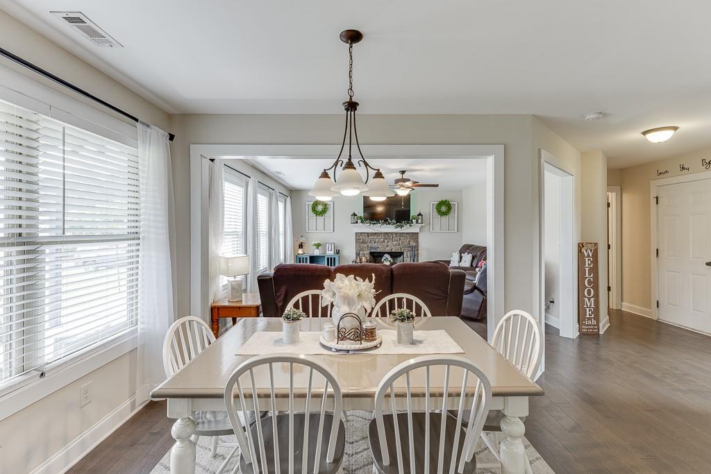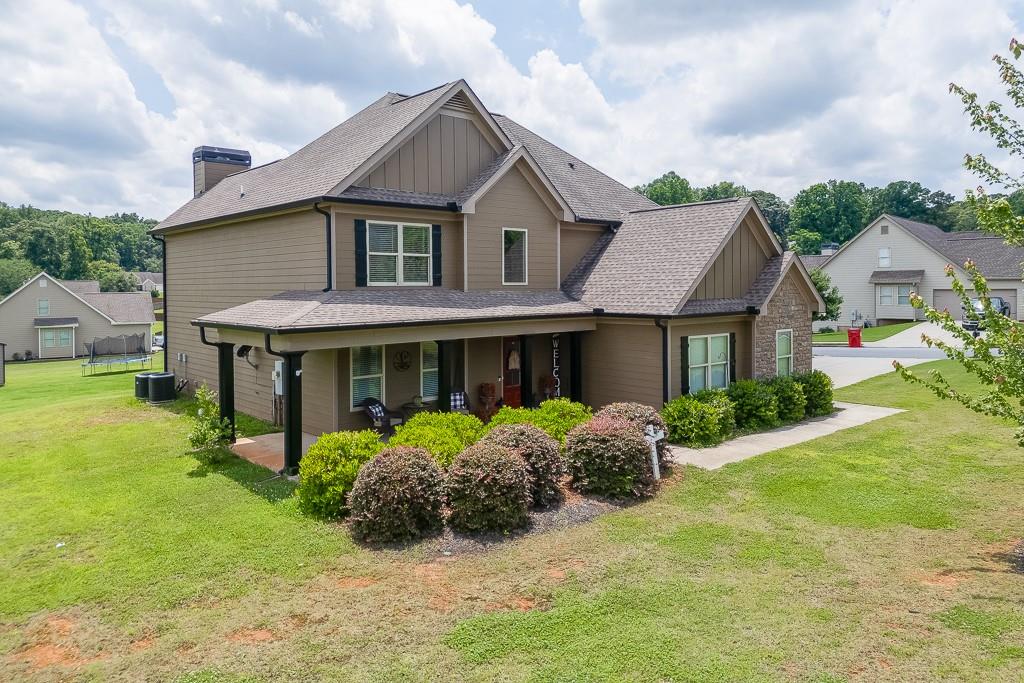 Welcome to this beautiful Craftsman-style home in the highly sought-after Finch Landing subdivision! Built in 2019, this charming two-story residence sits on a generously sized 0.75-acre wooded lot, offering privacy and serenity with a rocking chair front porch perfect for relaxing evenings. Inside, you'll find an open-concept floor plan featuring rich hardwood flooring, a wood-burning fireplace, and a spacious separate dining room ideal for entertaining. The heart of the home is the kitchen, boasting custom-built cabinetry, granite countertops, and modern finishes throughout. Upstairs, the large owner's suite provides a peaceful retreat with a luxurious bathroom that includes a garden tub, separate shower, and granite vanity countertops. Additional highlights include upgraded wall-to-wall carpet, quality craftsmanship, and attention to detail in every room. This home qualifies for 100% USDA financing.