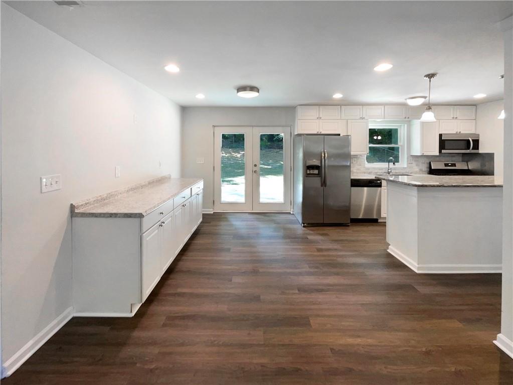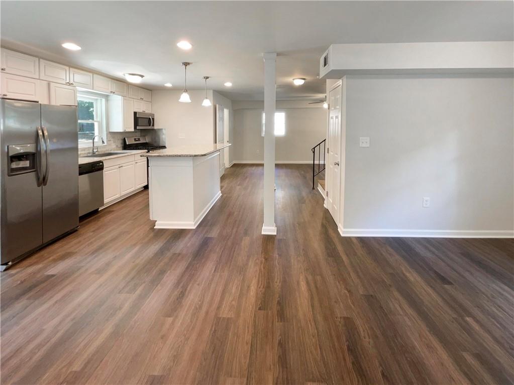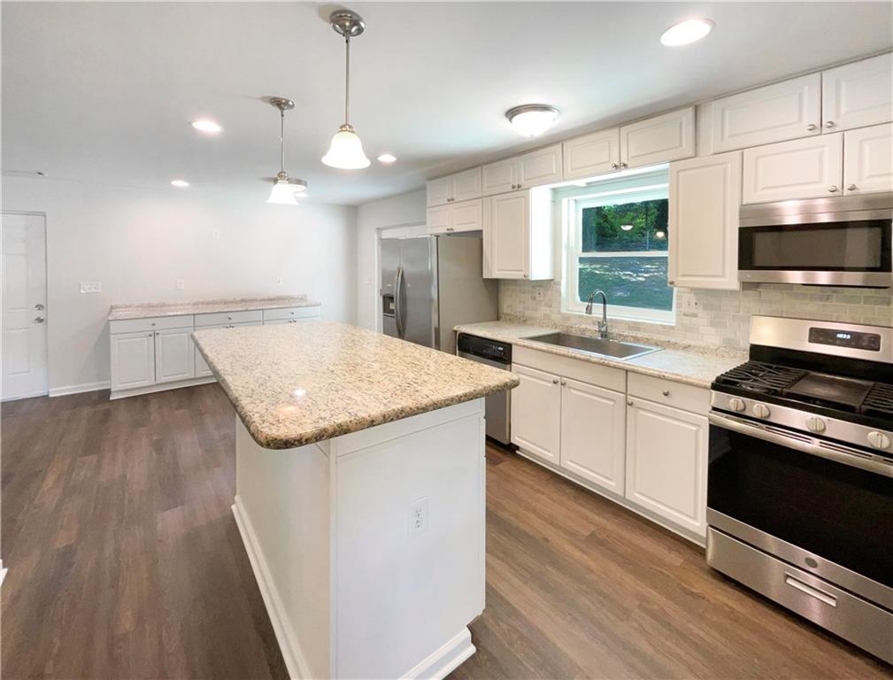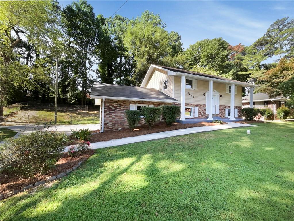 Welcome to this beautifully updated 4-sided brick split-level home nestled in an established neighborhood just minutes from I-85 and Hartsfield-Jackson Airport. Boasting 3 bedrooms and 2.5 bathrooms, this move-in ready gem features a classic split-foyer design with timeless curb appeal and a columned front porch that offers a warm, inviting entry. Step inside to find a spacious and airy main level with a modern open-concept layout. The renovated kitchen is the heart of the home, showcasing white cabinetry, granite countertops, a large island, and stainless steel appliances including a gas range—perfect for everyday living or entertaining. The kitchen flows seamlessly into both the dining area and the family room, creating an ideal gathering space filled with natural light. Elegant iron rail staircases add a custom touch and visual charm to the layout. Upstairs, the primary suite features a walk-in closet and a stylish private en-suite bath with updated tile finishes. Two additional bedrooms are well-sized and share a beautifully renovated full bath. All bathrooms have been thoughtfully upgraded with contemporary tile and modern fixtures, providing a fresh and refined feel throughout. Outside, enjoy a fenced backyard complete with a patio—great for cookouts, gardening, or simply relaxing. Additional features include a 2-car carport with utility closet, an extra parking pad, and low-maintenance brick exterior for added peace of mind. Conveniently located just a short drive from shopping, restaurants, major highways, downtown Atlanta, and the airport, this home offers the best of suburban living with urban accessibility. Don’t miss this charming, updated home in a prime location—schedule your private tour today!