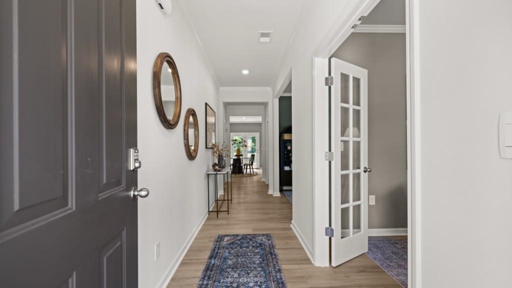 Lake Golf community Northwoods at Mirror Lake has your new home at 106 Crooked Lake Park, Villa Rica. 4 Bedroom, 2.5 bath residence where refined meets everyday comfort-and where the luxury of space becomes the foundation for your next great chapter. From the moment you step inside, the sense of arrival is unmistakable. The expansive main level immediately sets the tone, beginning with a bright personal home office and formal dining room. The heart of the home is where everyday living turns extraordinary with the open-concept layout bringing together a soaring family room, a cheerful dining area and an inspiring chef's kitchen. With an abundance of cabinetry, smart design details and seamless flow, it's the kind of space where week night dinners and weekend celebrations both feel at home. Upstairs is where the Hanover plan sets itself apart with a primary suite that will become your personal haven. Stretching the full width of the rear of the second floor, this suite boasts two oversized walk-in closets, spa-inspired bath retreat with soaking garden tub, glass enclosed shower and dual vanities plus two oversized walk-in closets. Secondary bedrooms are impressively sized for comfort and flexibility. Upstairs loft retreat invites endless possibilities--movie nights, fitness routines or a cozy reading oasis. Highly desired second-floor laundry room for ultimate convenience. Located in the sought-after Mirror Lake Community, the Hanover offers more than just a beautiful home--it offers an elevated lifestyle. Enjoy peaceful strolls along scenic walking trails, quiet mornings at the nearby lake or a quick round of golf just minutes from your front door. With easy access to I-20, top rated schools and charming local shops & dining. Members of the Mirror Lake community enjoy great amenities including pool, cabana, clubhouse, 3 tennis courts, 2 pools, 2 pickle ball courts and 2 tot lots. Reach out today to learn more about all the Northwoods at Mirror Lake has to offer and make 106 Crooked Lake Park you home in Villa Rica, GA.