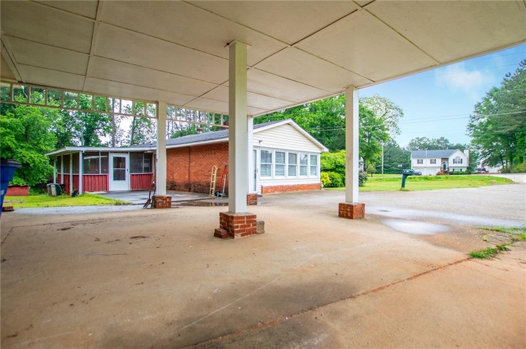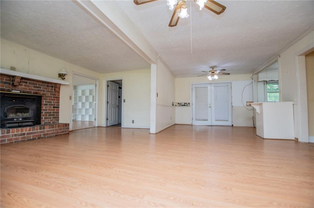 BACK ON THE MARKET, NOT FAULT OF SELLER Brick ranch with large lot that has access from Burnt Hickory Road and from Brownsville Extension. Detached garage with carport on front gives space for extra covered parking or large shop. This property has a lot of potential: Could be rental/income property or great starter with a little work or could be completely remodeled. Home has a lot of living space with large sunny great room, den/dinning area with fireplace, screened back porch and patio. It has been converted from a 3 bedroom to a larger 2 bedroom home but could easily be made into a 3 bedroom. Has some hardwood flooring under the existing flooring. Gas heater in family room is propane and it is additional heat source