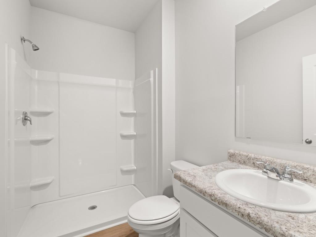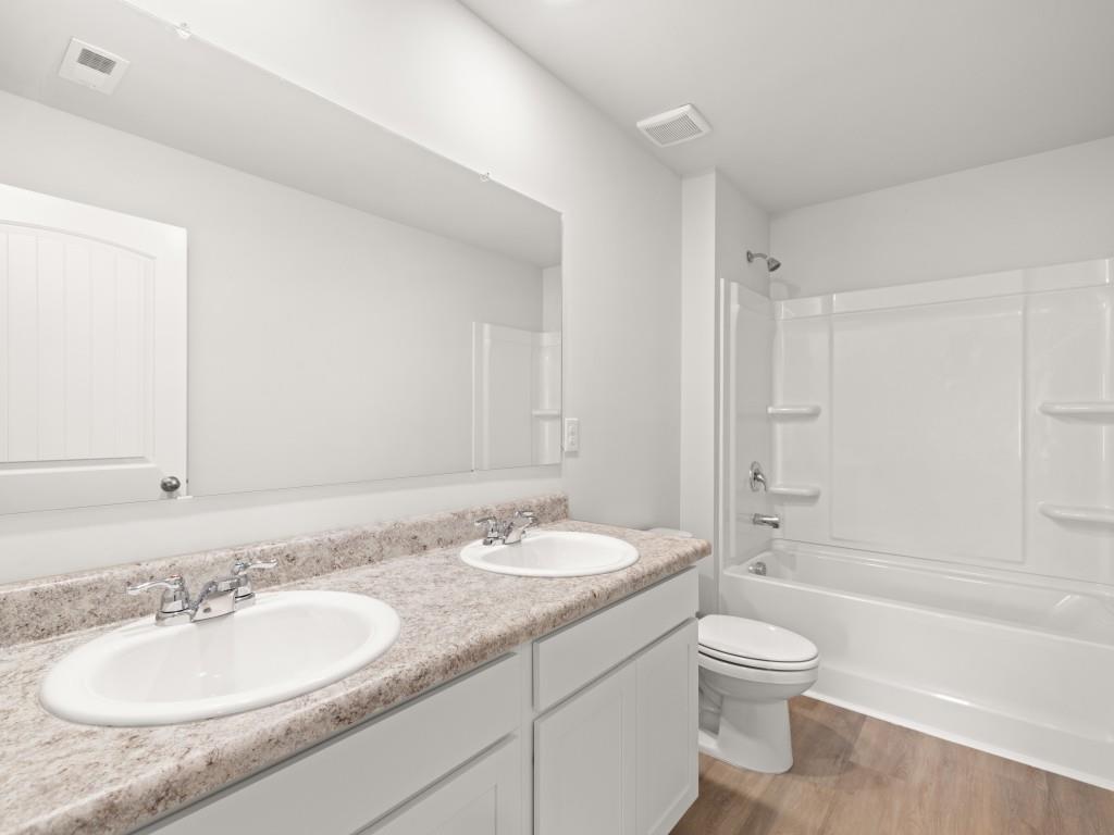 Welcome to Oakleigh Glen, home to 201 Oak View Lane, a single family home in Dallas, GA. This Robie floor plan home features 5 bedrooms and 3 bathrooms, plus a 2-car garage in 2,360 square feet. Through the front door, a foyer welcomes guests passed the stairway into the main living area. The open family room allows room for a dining table to enjoy meals with loved ones or to relax after a hard day's work in front of the gas fireplace. A large island separates the kitchen from the living area providing space to enjoy a quick meal or prepare food for the family. The kitchen is well equipped with white shaker style cabinets with soft close doors, granite counter tops, stainless steel appliances and a walk-in pantry. A spare bedroom and bathroom sit off the kitchen. Once you head upstairs, you are greeted by an open loft area that allows easy access to the 4 remaining bedrooms in the house, including the primary suite. The primary bedroom offers rest and relaxation with the deluxe bathroom featuring dual vanity, separate soaking tub and walk-in shower plus walk-in closet. Homeowners will enjoy convenient access to the second floor laundry room right outside the primary suite. If 201 Oak View Lane sounds like your dream home, call our listing agents at Oakleigh Glen to make it yours.
