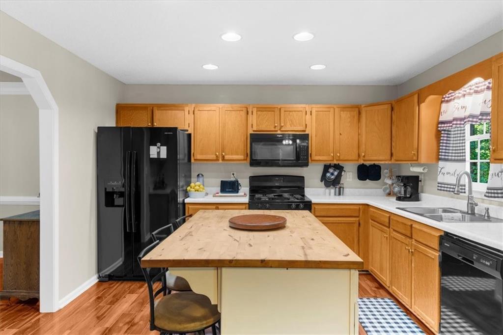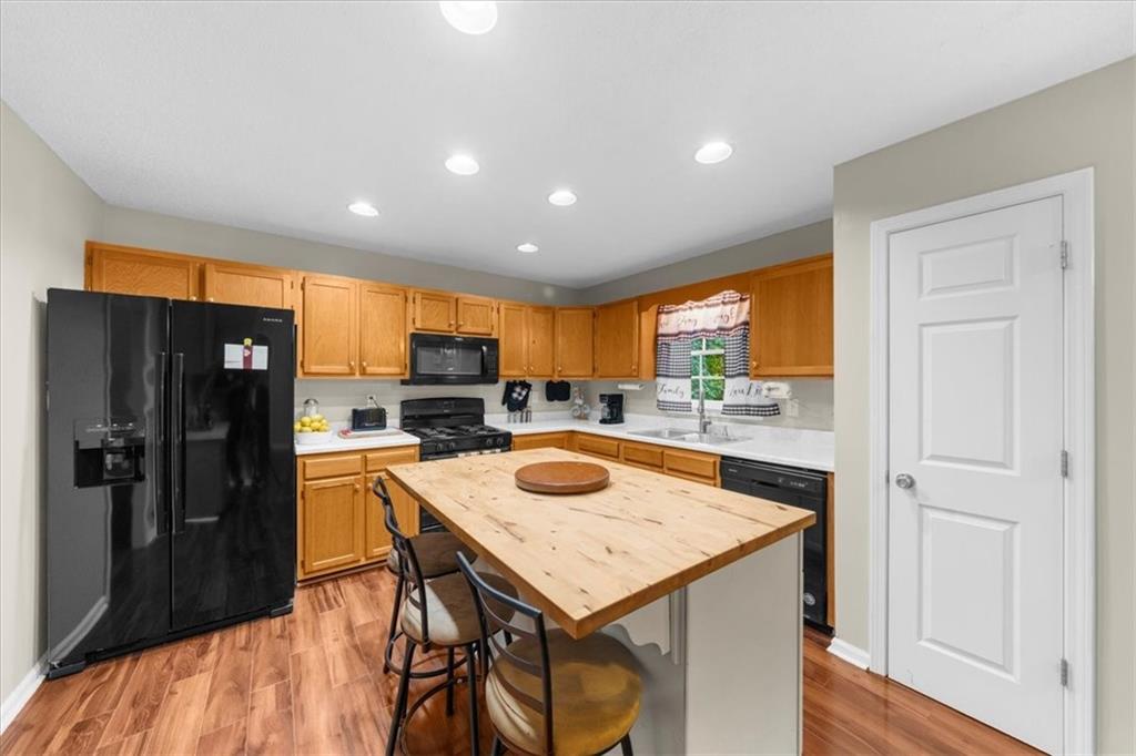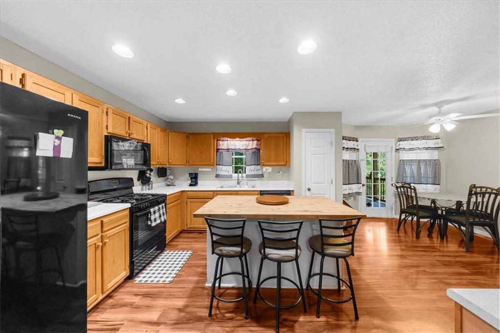 - KitchenBreakfast Bar, Cabinets Stain, Eat-in Kitchen, Kitchen Island, Laminate Counters, Pantry