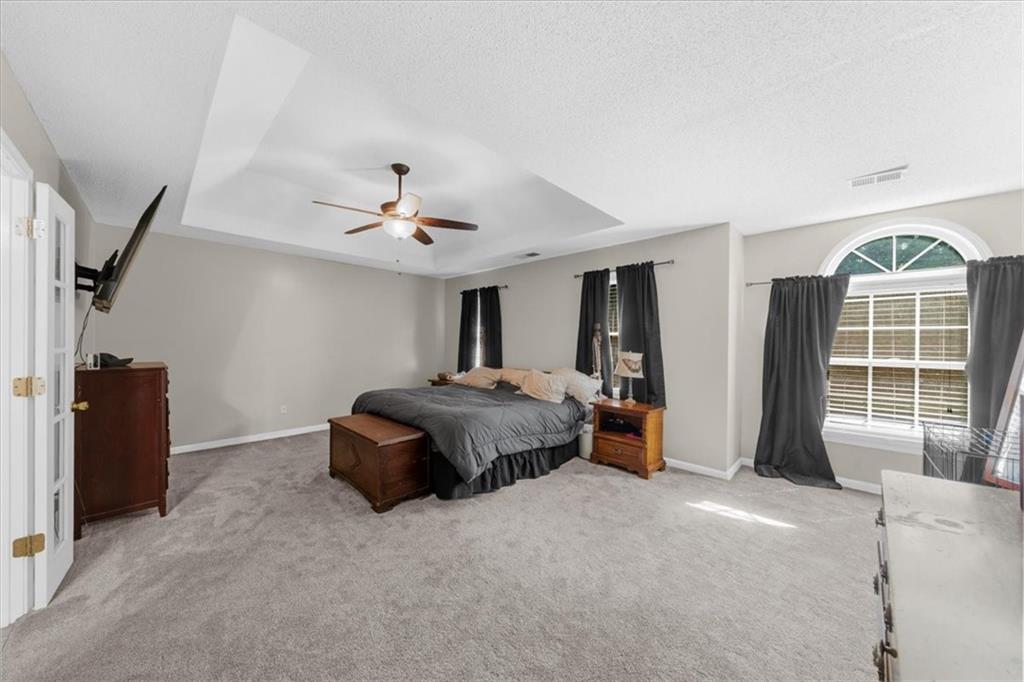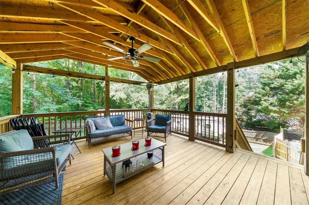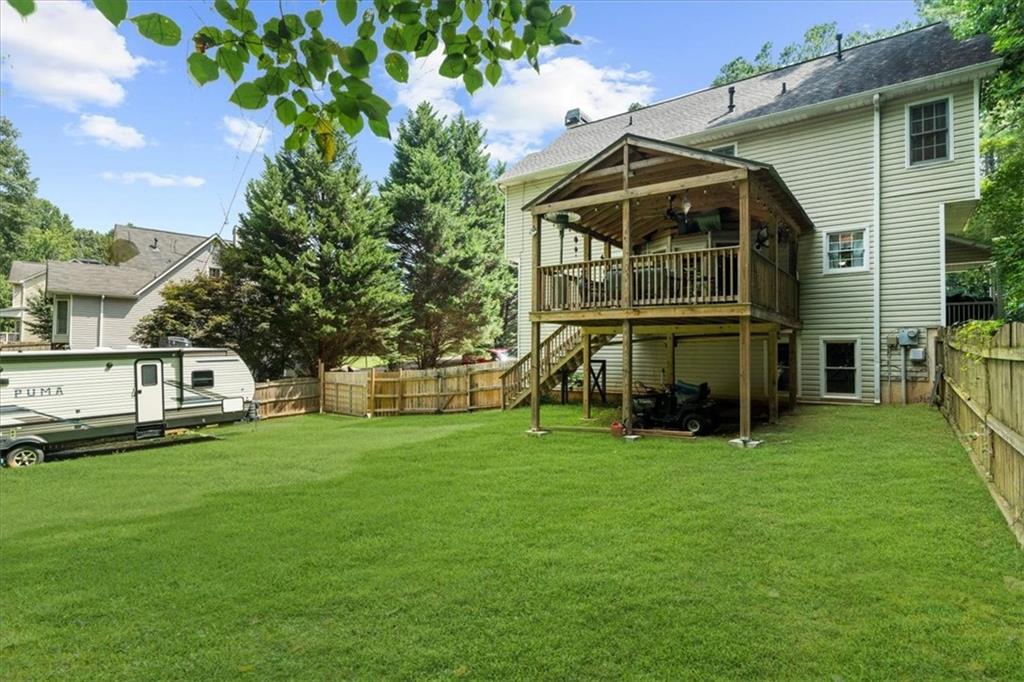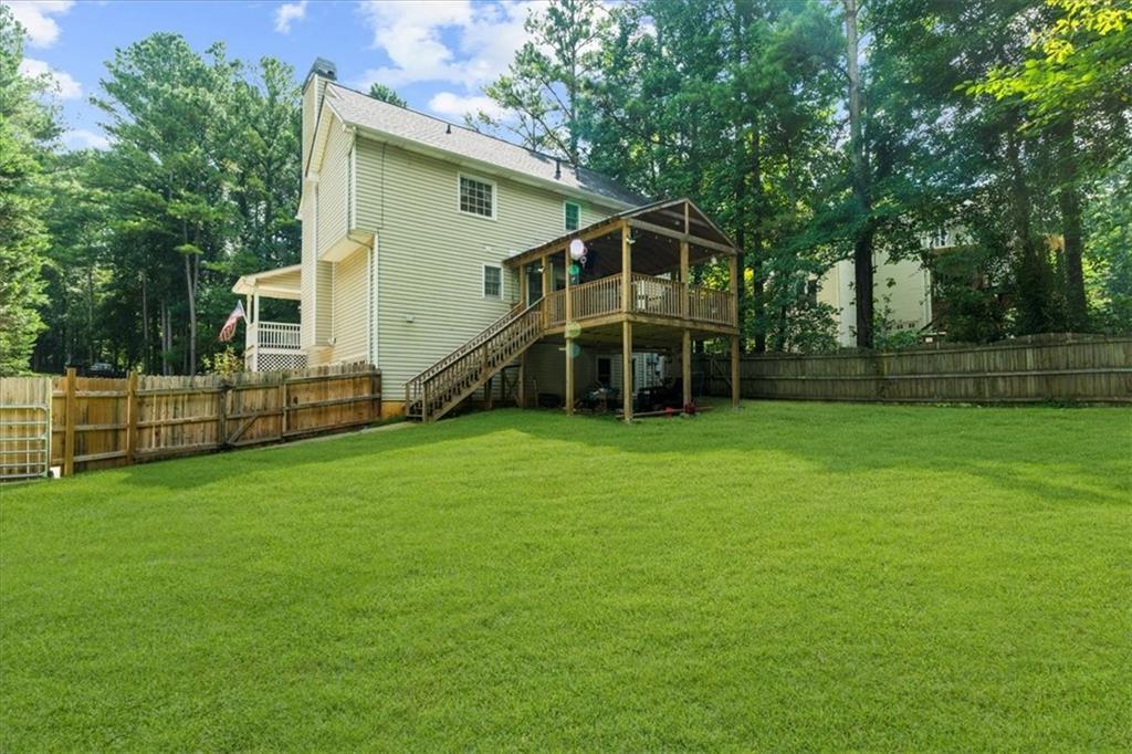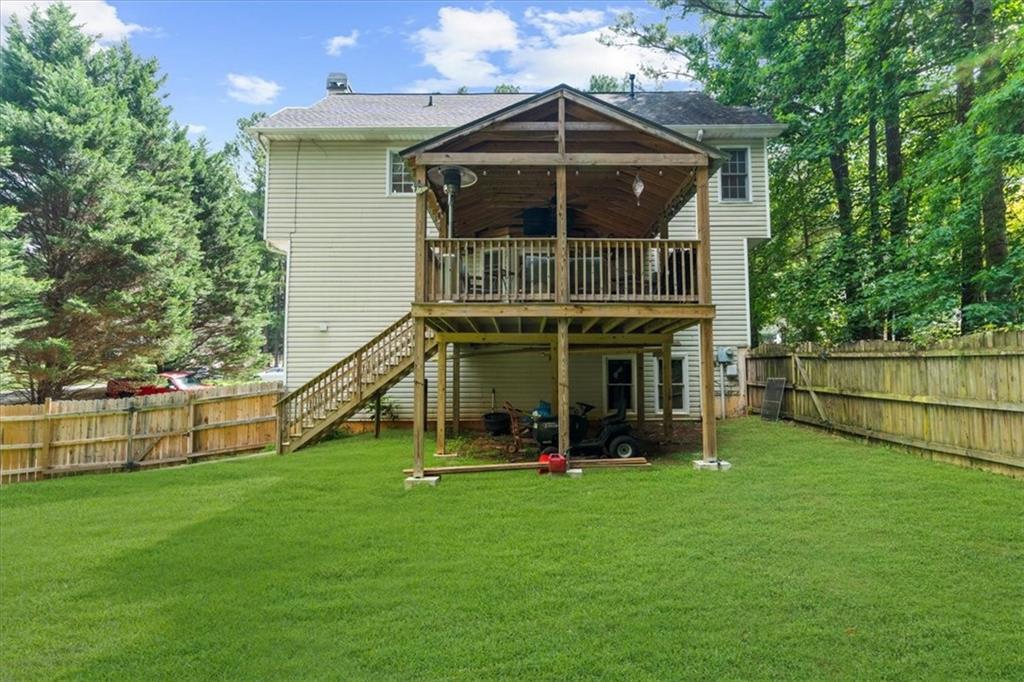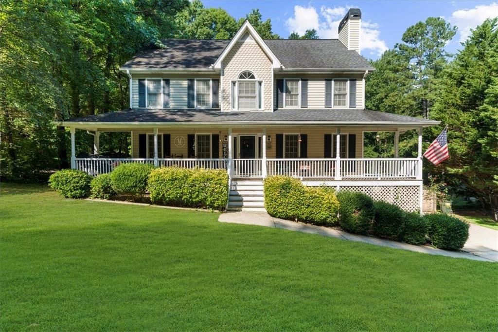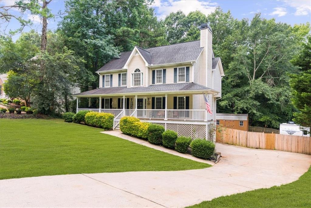 Welcome to 320 Warrenton Dr, a charming 3 bed, 2.5 bath home in Douglasville that perfectly blends Southern charm with modern updates. From the moment you arrive, the large rocking chair wraparound front porch invites you to sit back and unwind. This well maintained home also boasts a huge covered back deck-ideal for entertaining or quiet evenings outdoors. Inside, the spacious master suite impresses with vaulted ceilings, while recent updates include a newer roof, updated HVAC, fresh interior paint, and new carpet upstairs. The kitchen features warm brown cabinetry, durable laminate countertops, and sleek black appliances. Nestled on 1.36 acres with a partially fenced backyard and an unfinished basement offering endless potential. This house is a must see! Schedule showing today! By appointment only, please do not show up to house unannounced!