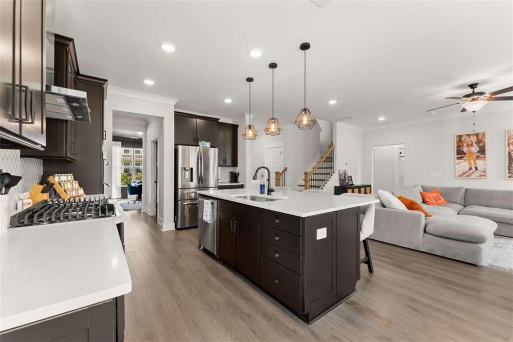 - KitchenKitchen Island, Pantry Walk-In, Solid Surface Counters, View to Family Room