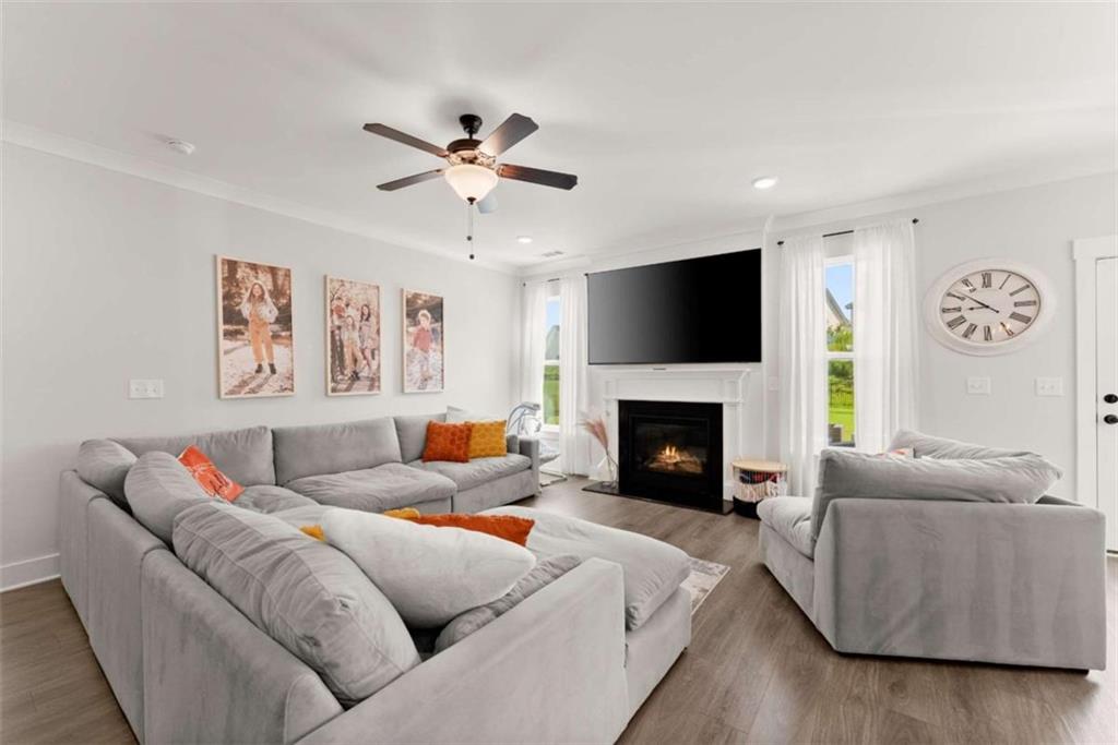Welcome to "The Davidson" plan in the highly sought-after Twin Lakes community! This spacious 5-bedroom, 3-bathroom home offers over 3,000 square feet of well-designed living space. The main floor features a versatile flex room -- perfect as a formal dining room or home office -- alongside a guest suite on the main level with a full bathroom, oak tread staircase, and a bright, open-concept family room with a cozy fire place. The kitchen boasts solid countertops, ample cabinetry, and a seamless flow into the living and dining areas -- ideal for entertaining. Upstairs you'll find a spacious loft -- perfect for a media room or second floor family room, laundry room connected to the master closet, and an oversized master suite with a dropped tray ceiling, generous walk-in closet and beautiful master bath. Enjoy outdoor living on the extended patio overlooking a fully fenced in backyard. Located in the desirable Twin Lakes neighborhood, this home offers resort-style amenities and a vibrant community atmosphere.
