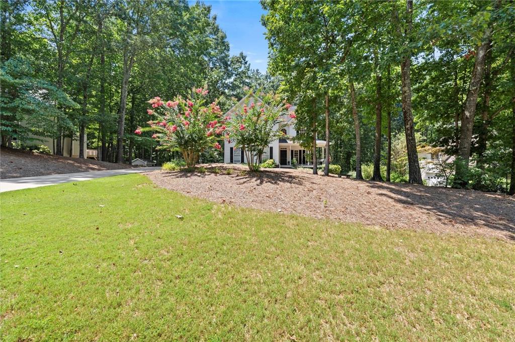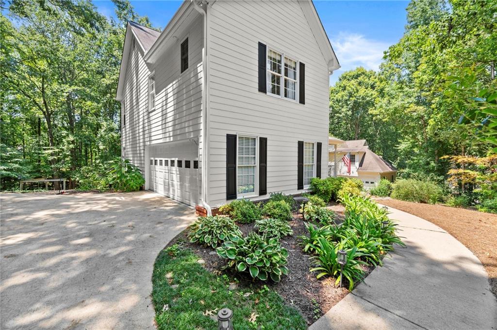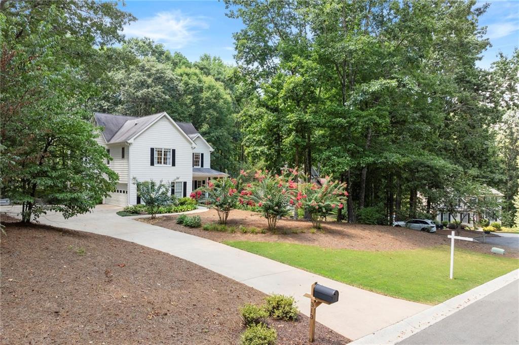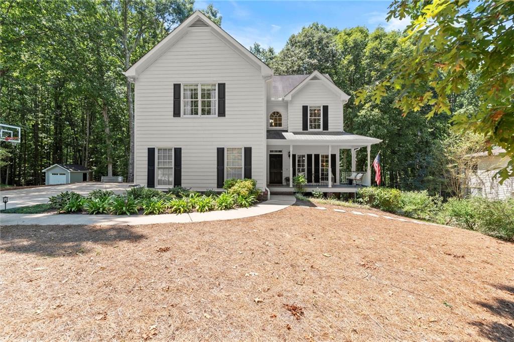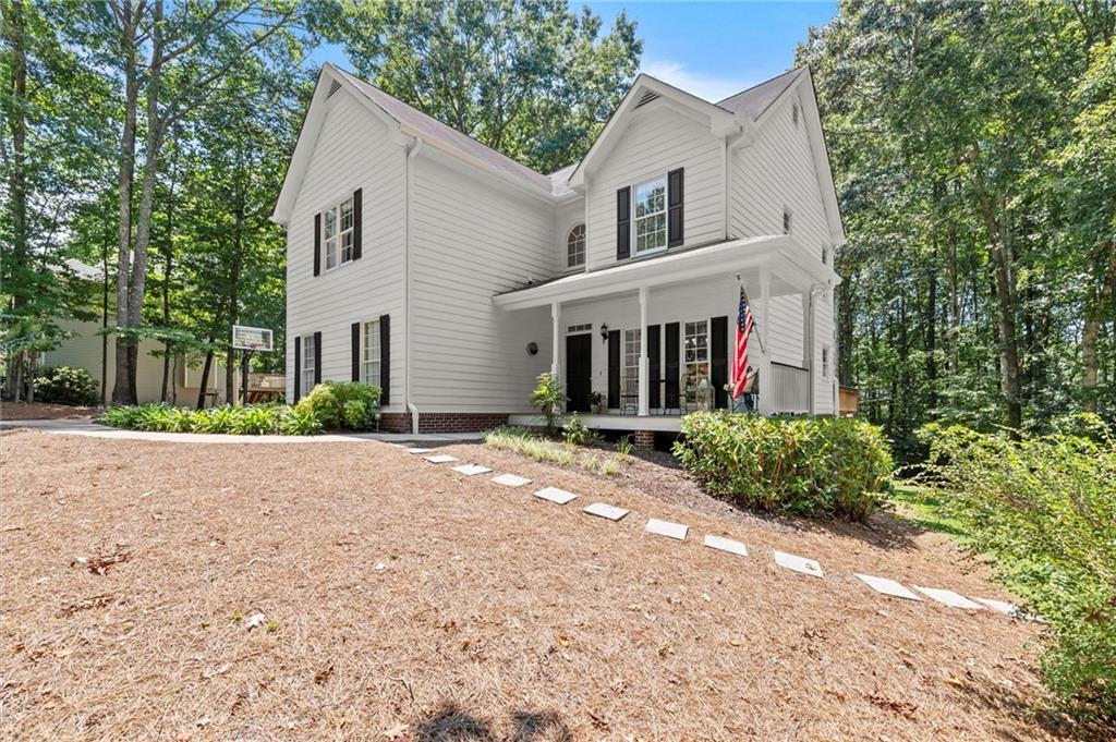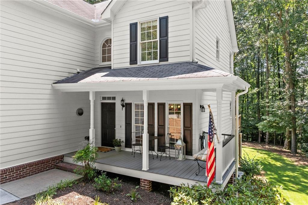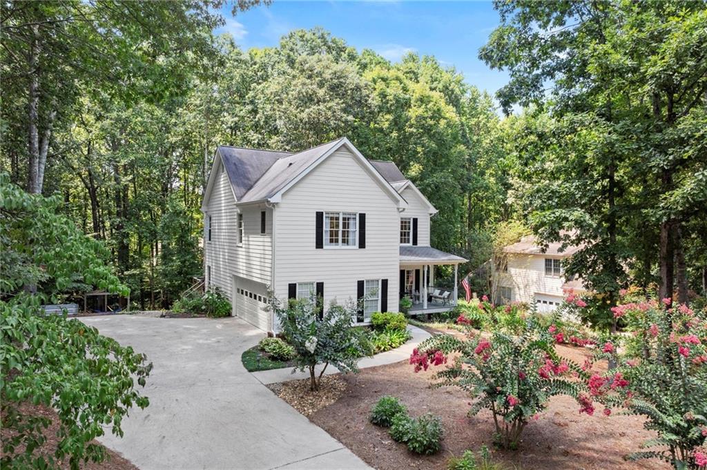 Welcome to this picture-perfect home nestled on a premium cul-de-sac lot in the desirable Orange Shoals Greenbelt community. From the moment you arrive, the inviting front porch and spacious front yard set the tone for lots of charm and character! Step inside to a light-filled foyer flanked by a separate dining room, leading into a beautifully updated kitchen with stone countertops, designer backsplash, and newer appliances. The kitchen opens to an expansive deck that overlooks a serene, wooded backyard—your private retreat with direct access to miles of community trails. The fireside family room with coffered ceilings and gleaming hardwoods offers a cozy yet refined space to unwind. Upstairs, the charm continues with a spacious Primary Suite and spa-inspired bath, three secondary bedrooms, a computer nook, and thoughtful touches like built-ins and designer lighting. The fully finished terrace level adds versatility with a full bath, two separate flex rooms including one with a ventless fireplace and 5th bedroom space(currently used as a home office). Enjoy fall evenings on the well appointed deck, by the firepit, or unwind under the covered patio. Located less than 5 miles from top-rated schools (K-12), shopping, dining, Northside Cherokee, quaint downtown areas like Ball Ground and Canton, the Cumming City Center, as well as a hop and a skip from Milton|Alpharetta areas. This home offers peace, privacy, and access to a vibrant, nature-loving community.