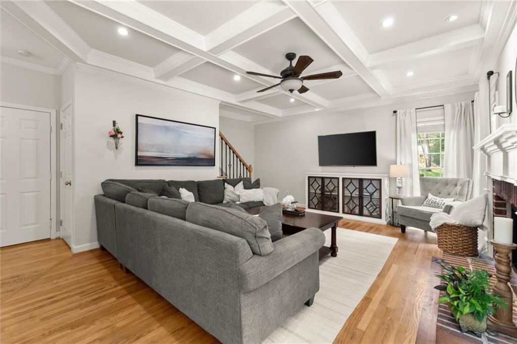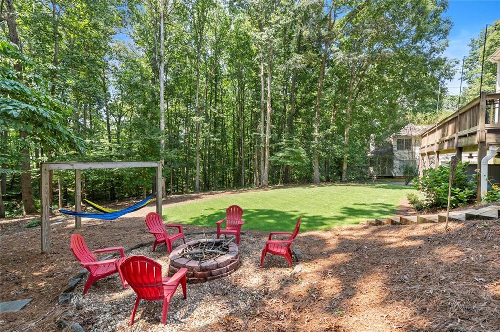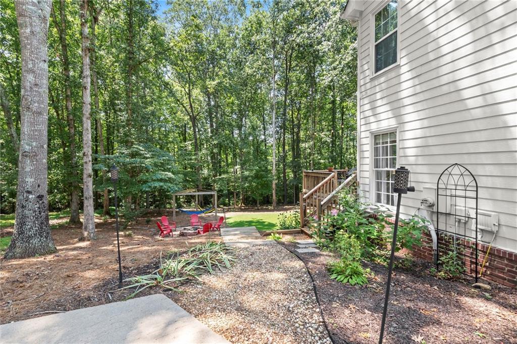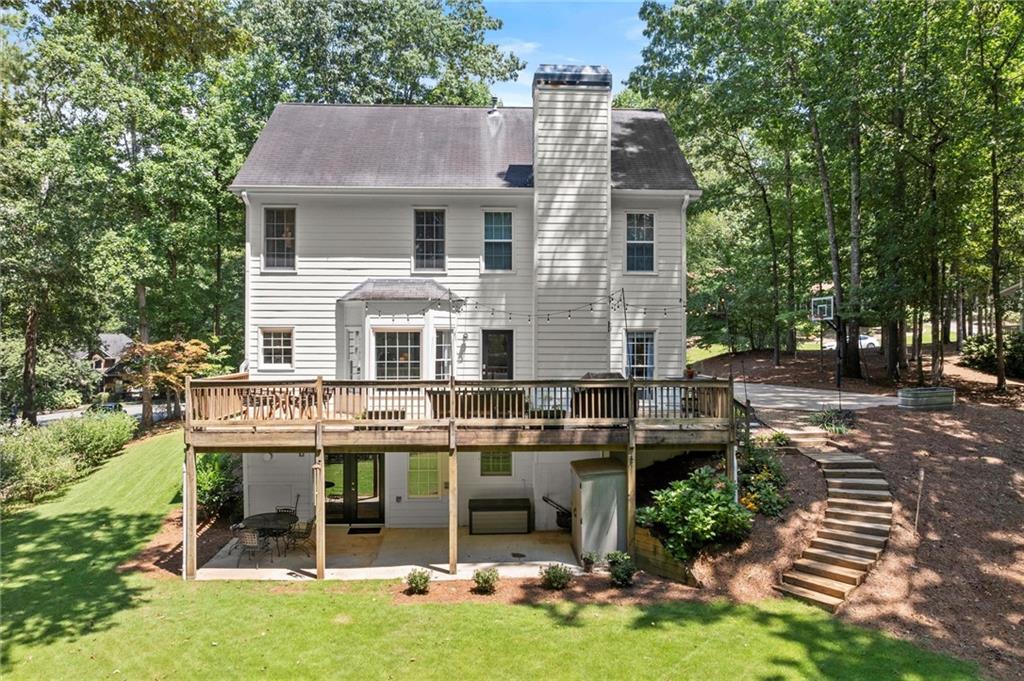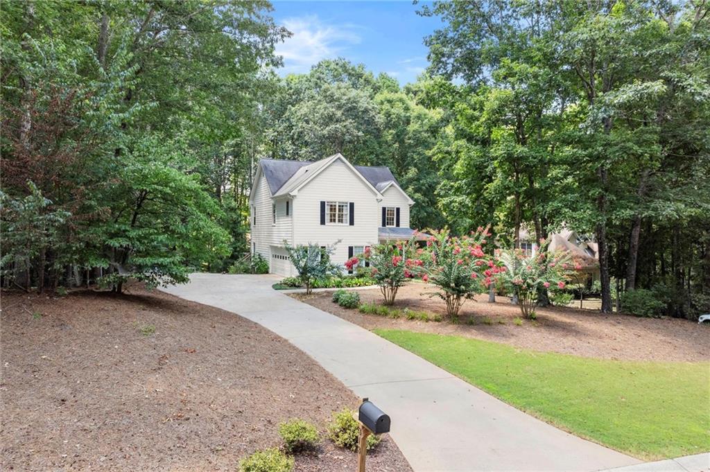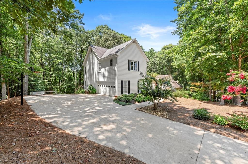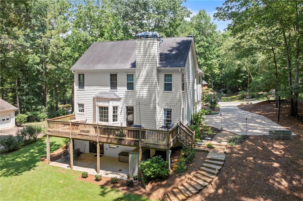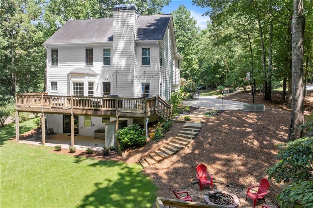 Welcome to this picture-perfect home nestled on a premium cul-de-sac lot in the desirable Orange Shoals Greenbelt community. From the moment you arrive, the inviting front porch and spacious front yard set the tone for lots of charm and character! Step inside to a light-filled foyer flanked by a separate dining room, leading into a beautifully updated kitchen with stone countertops, designer backsplash, and newer appliances. The kitchen opens to an expansive deck that overlooks a serene, wooded backyard—your private retreat with direct access to miles of community trails. The fireside family room with coffered ceilings and gleaming hardwoods offers a cozy yet refined space to unwind. Upstairs, the charm continues with a spacious Primary Suite and spa-inspired bath, three secondary bedrooms, a computer nook, and thoughtful touches like built-ins and designer lighting. The fully finished terrace level adds versatility with a full bath, two separate flex rooms including one with a ventless fireplace and 5th bedroom space(currently used as a home office). Enjoy fall evenings on the well appointed deck, by the firepit, or unwind under the covered patio. Located less than 5 miles from top-rated schools (K-12), shopping, dining, Northside Cherokee, quaint downtown areas like Ball Ground and Canton, the Cumming City Center, as well as a hop and a skip from Milton|Alpharetta areas. This home offers peace, privacy, and access to a vibrant, nature-loving community.