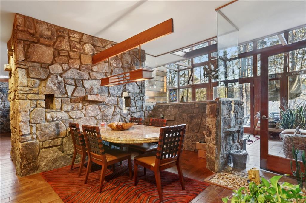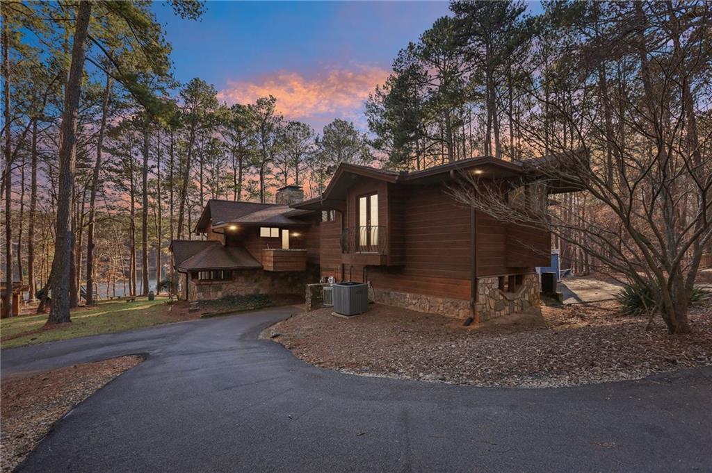 Escape to Your Private Retreat! Discover unparalleled tranquility in this custom-built, cabin-inspired home, nestled on a secluded waterfront lot. This exquisite 4-bedroom, 3-bathroom residence offers a sanctuary of refined comfort. Imagine waking up to serene water views from nearly every room. Two bedrooms feature charming walk-out decks, perfect for morning contemplation. The primary suite is a true haven, boasting dual closets, a cozy fireplace, a large bathroom with a soaking tub, separate shower, and a double vanity. The primary also has a private office and separate sitting area, connected to a dedicated staircase leading to a versatile lower-level retreat (man cave), complete this luxurious space. Entertain effortlessly in the open-concept dining and kitchen areas, or unwind in the inviting family room with its wood-burning fireplace and bar. The sun-drenched glass sunroom offers panoramic water views, ideal for savoring moments of peace. Step outside onto the expansive deck and enjoy direct access to the water for small boating adventures. Conveniently located near Panola Mountain State Park, this home offers a perfect blend of natural beauty and modern convenience. ALL while being close to the city!