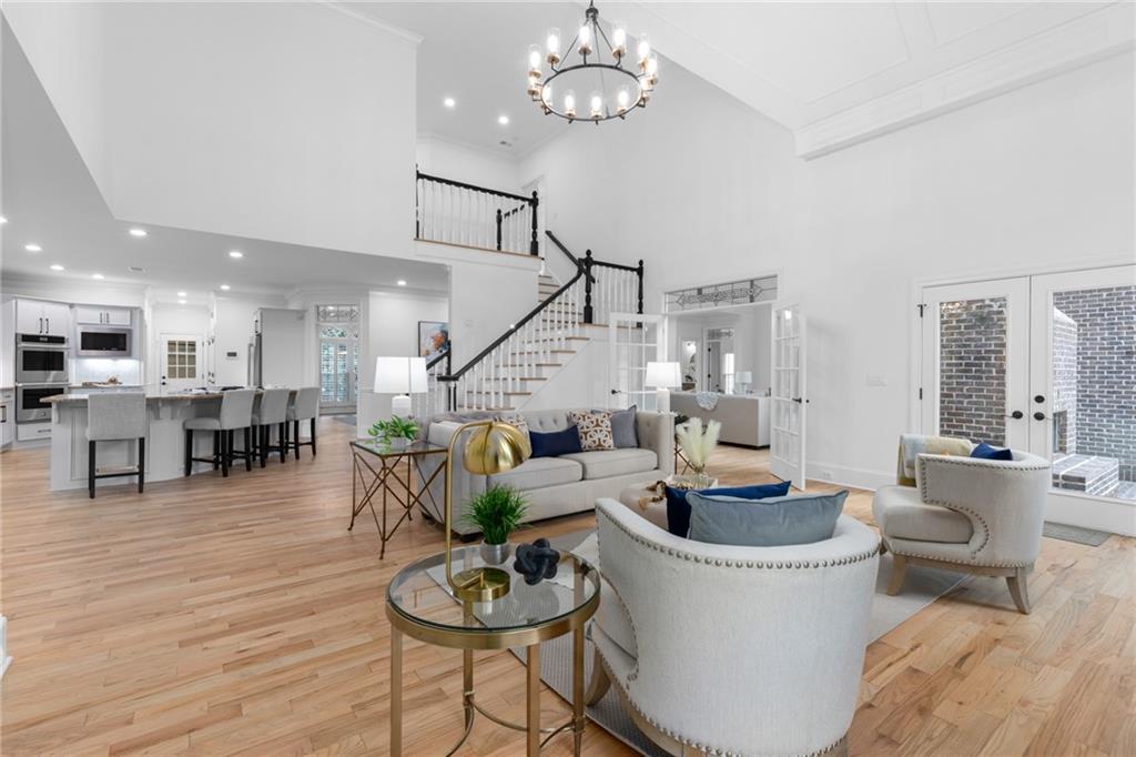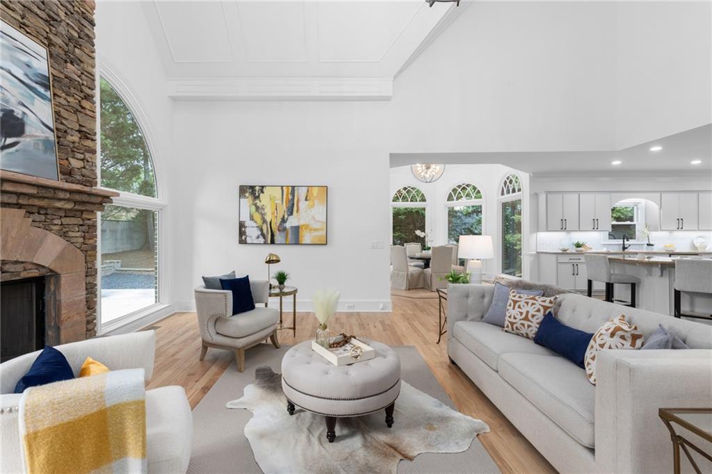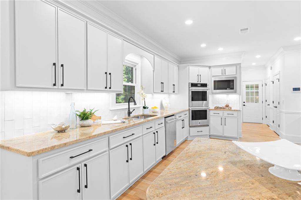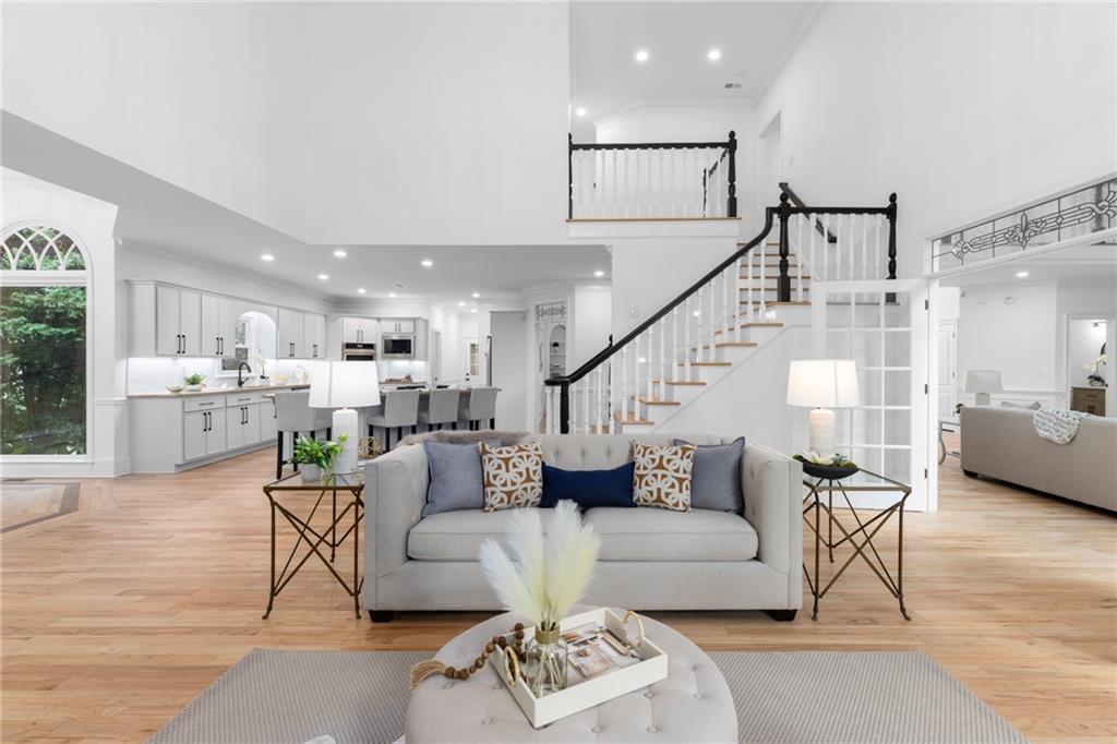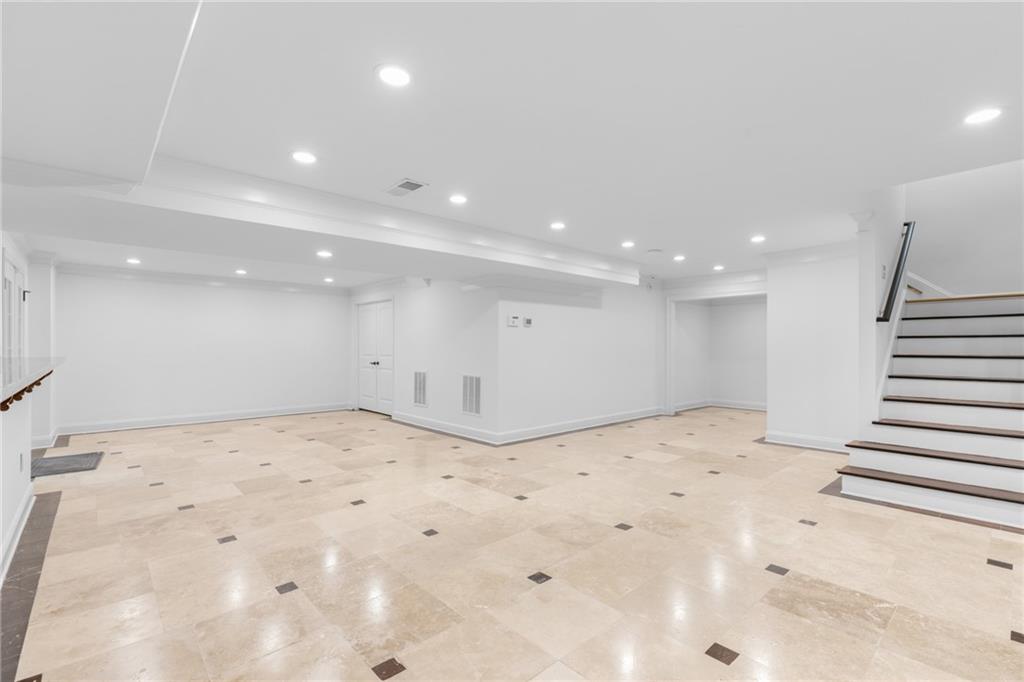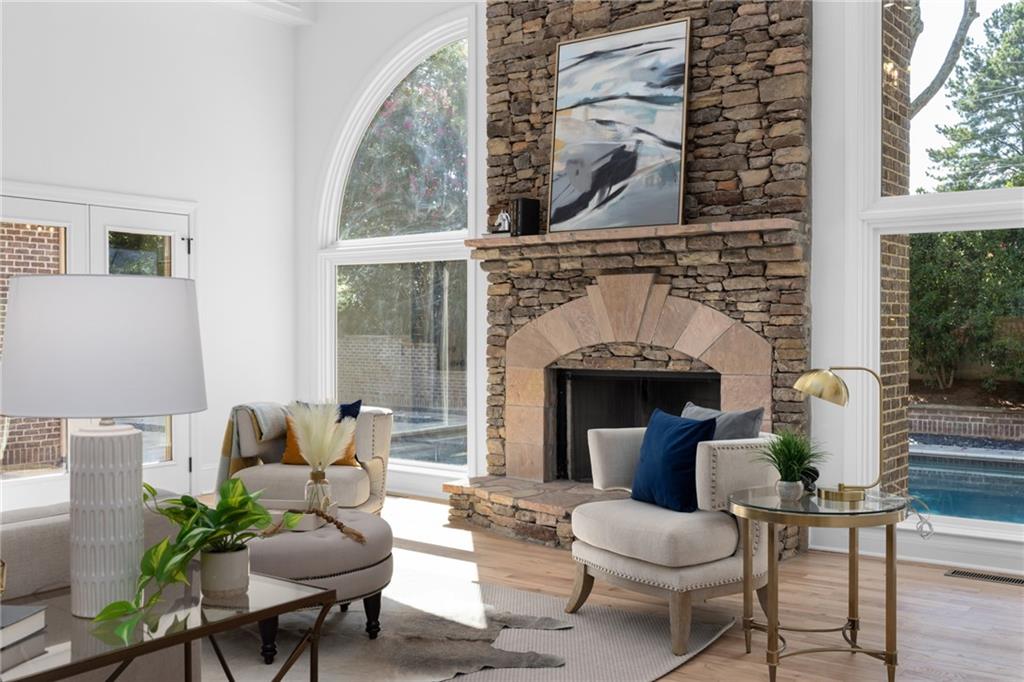 This stunning four-sided brick home is located in the Saint Ives gated country club community in the heart of Johns Creek and is walking distance from Johns Creek High School. The house has completed a three-level major renovation on 8/29/25, featuring a new master bathroom; a new kitchen with all new stainless-steel appliances; all new light fixtures, chandeliers, and recessed lighting throughout the home; newly refinished contemporary hardwoods; and an entirely repainted interior; among numerous other upgrades. The back of the home opens to a beautifully maintained brick patio with an outdoor fireplace and a spacious travertine pool deck, perfect for entertaining, and features a large, heated salt water PebbleTec pool with built-in spa and smartphone controls, as well as an outdoor grilling station with a Brahma Bull natural gas grill, a smoker, and a separate fire pit. The home comprises a total of 7 bedrooms with master suite on main, 6 full bathrooms, 1 half bath, and an exceptionally large, finished daylight basement complete with a kitchenette and full bar. The main level includes a separate formal dining room, a spacious home office, and a two-story renovated foyer with new custom front doors that open to a magnificent family room with one of the two indoor fireplaces. The open layout of this space is ideal for entertaining, as the kitchen space flows into the keeping room and breakfast area, from which there is a full view to the pool in the backyard for when the gathering spills out into the beautifully maintained and recently renovated back patio and pool deck. The main level is bright and bathed in sunlight. The water-based light hardwood flooring extends from the main level to the upper level, which houses four additional bedrooms and bathrooms. The terrace level showcases beautiful travertine marble flooring and includes 2 additional spacious bedrooms, a home theater room, a gym, a family room, a dance studio with lights and mirrors, a bonus room, and a workshop/additional storage area. Every element of the physical plant of the house contains either brand new hardware or has been replaced within the past five years. The roof is two years old with architectural shingles and a 25-year transferrable warranty. A preemptive home inspection was commissioned at the end of the renovation and minor issues detected were all addressed, including installation of a new 70-gallon Energy Star certified water heater.