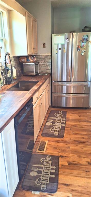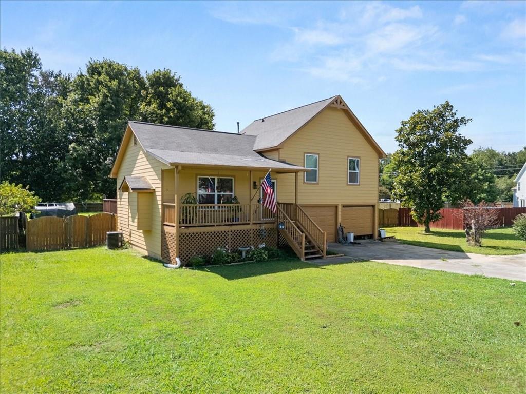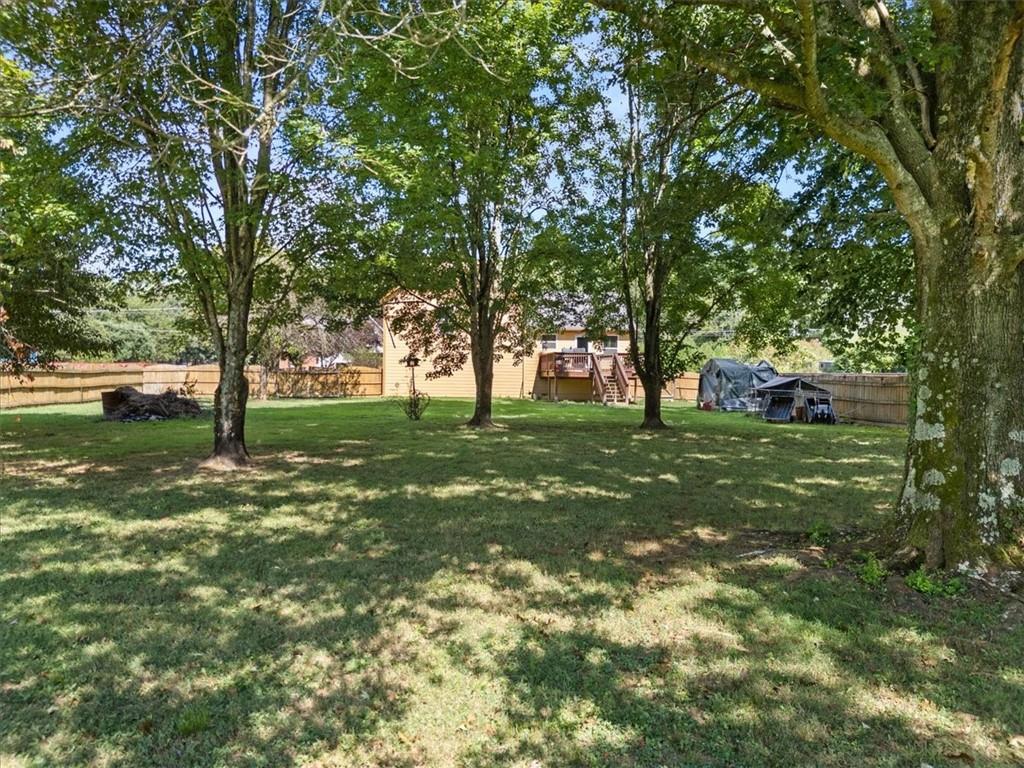 Just 10 minutes from Downtown Cartersville, a RARE LEVELED LOT, this charming 3-bedroom, 2-bath split-level home in the desirable Sugar Mill subdivision of Cartersville is a fantastic opportunity for first-time buyers or those seeking a move-in ready space. Set on a spacious 0.55-acre lot with NO HOA, this home invites personal touches and enhancements. Recent updates include fresh siding, new windows with screens, stylish storm doors, and an extended back deck perfect for entertaining. A covered front porch adds charm, and the two-car garage features automatic openers and laundry hookups. Inside, you'll find new wood flooring, a bright living area with a cozy gas fireplace, and an inviting kitchen that boasts a new butcher block countertop, backsplash, sink, dishwasher, range, and a stainless steel refrigerator—all included. The hall bathroom showcases new tile flooring, while the primary bath boasts an updated vanity top. Additional updates include new ceiling fans, faux wood blinds, and a modern thermostat. With the HVAC and water heater replaced in 2020 and numerous cosmetic upgrades completed, this home offers exceptional value. The motivated sellers are ready to consider your offers—don't miss this incredible opportunity!