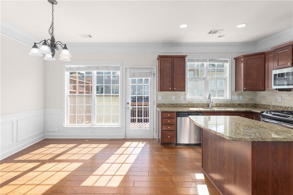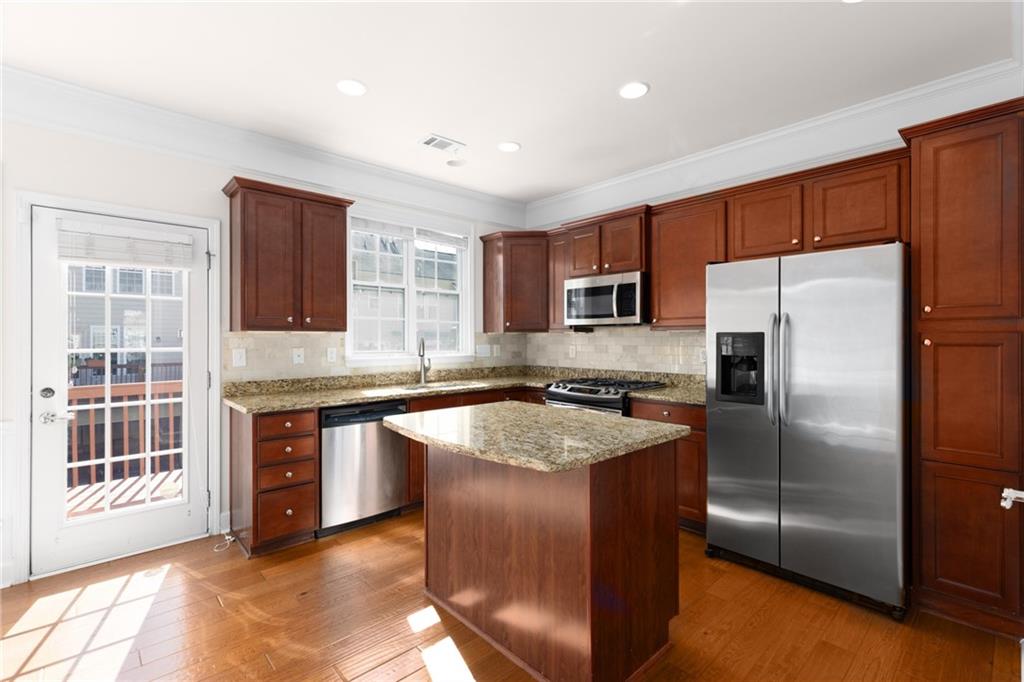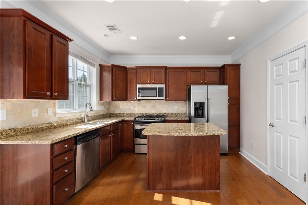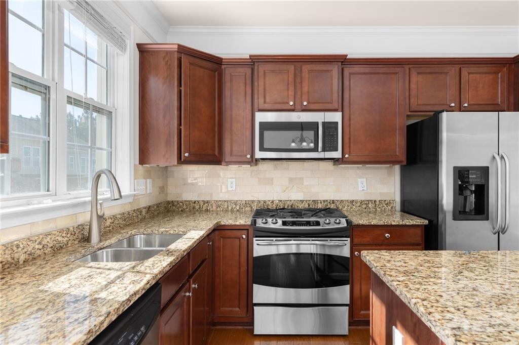 Well maintained 3b 3.5b townhome located in the highly sought-after Views at Park Avenue community. A sun-drenched living room featuring gleaming hardwood floors and a cozy fireplace. A chef-inspired kitchen is updated with granite countertops, stainless steel appliances, breakfast bar island, ample cabinetry and a walk-in pantry. Upstairs, both the primary and secondary bedrooms are oversized feature tray ceilings and walk-in closets, a perfect option for a roommate plan. The terrace level offers versatility with a flexible room and attached full bath, ideal for a third bedroom, office, or media room. It also comes with a spacious storage room under the stairs. Step outside to the freshly painted deck for entertaining and relaxing! Seller has recently installed all brand new carpet throughout, fresh interior paint & new hardwood flooring on the main level. New water heater was replaced in 2024. AC evaporator coil was replaced in 2020. Washer & dryer included. Located in low tax Cobb and in a coveted community with a well managed, low fee HOA that provides termite Bond, Water/Sewer, Landscaping, Trash service. Wonderful amenities including a pool with a covered pavilion, ample guest parking & sidewalks. Situated just minutes from Smyrna’s best attractions—Smyrna Market Village, West Village, The Silver Comet Trail, Cumberland Mall, Truist Park (home of the Atlanta Braves), and The Battery, so you’ll have endless dining, shopping, and entertainment options at your doorstep. Enjoy easy access to major highways, as well as, nearby parks like Tolleson Park, Brinkley Park, and Taylor-Brawner Park, home of the popular Food Truck Tuesdays. Rental cap (10%) has been met with a waitlist.