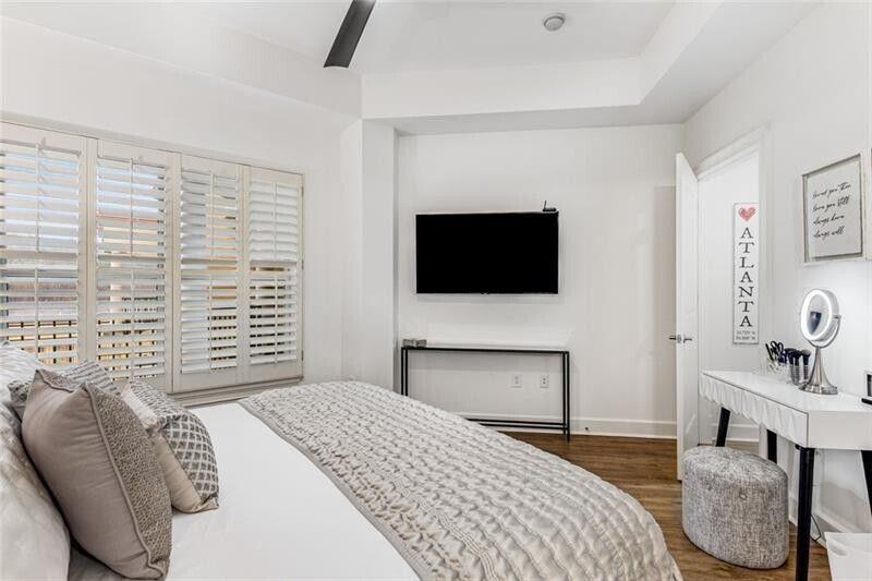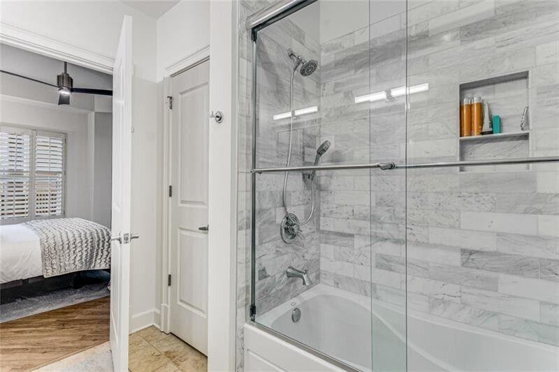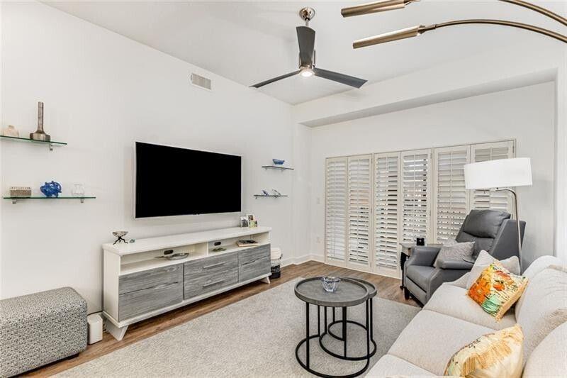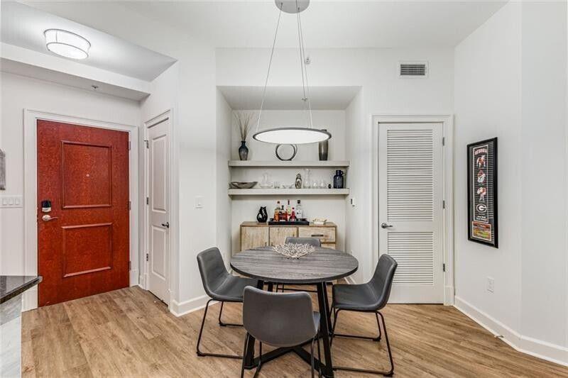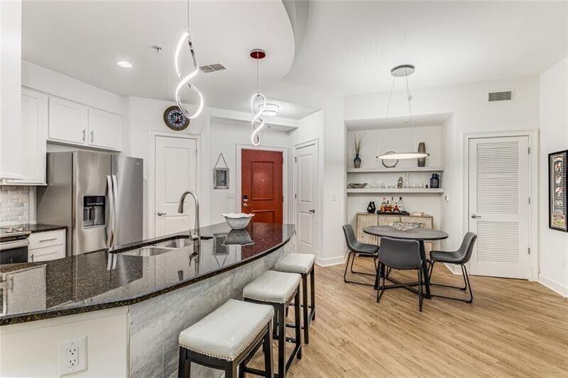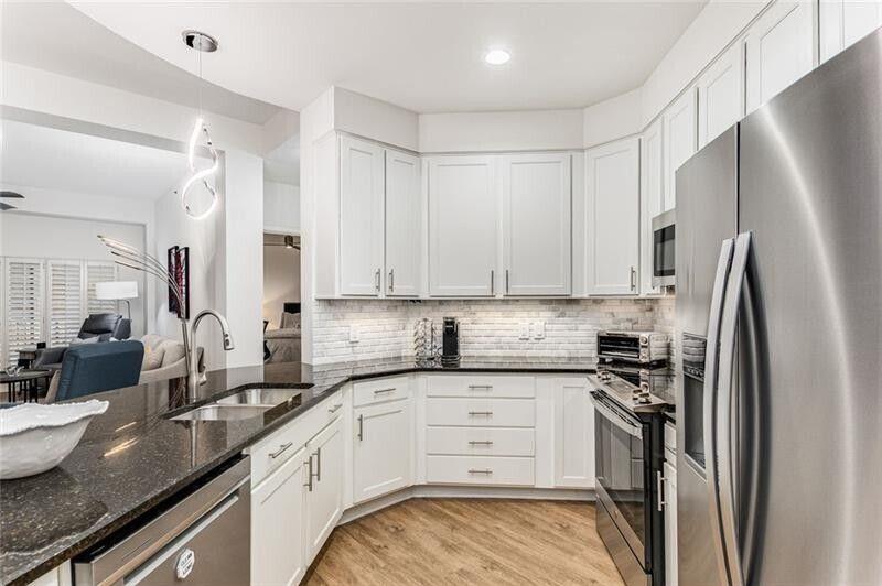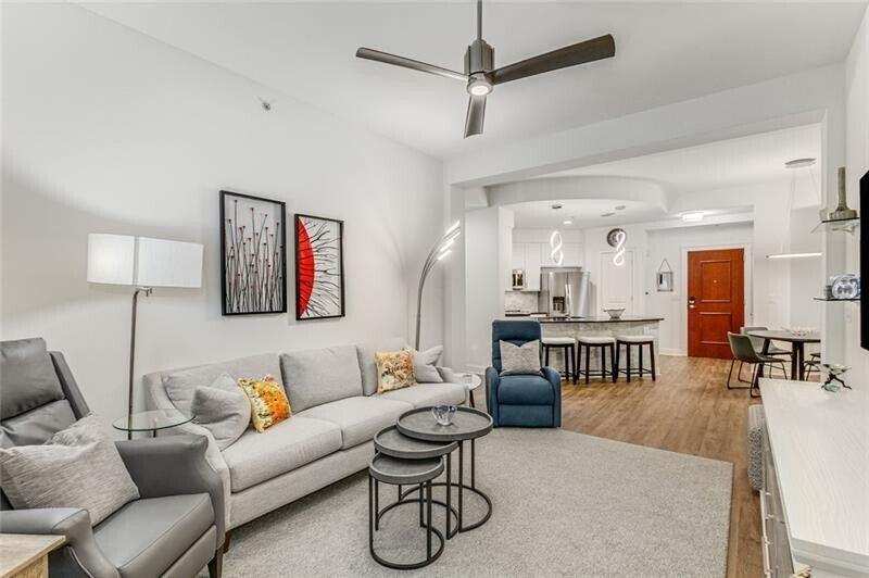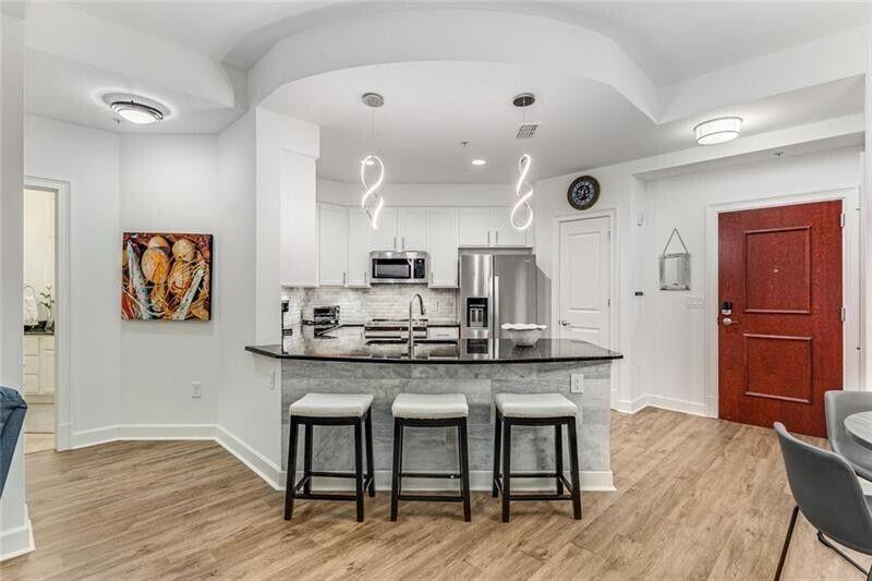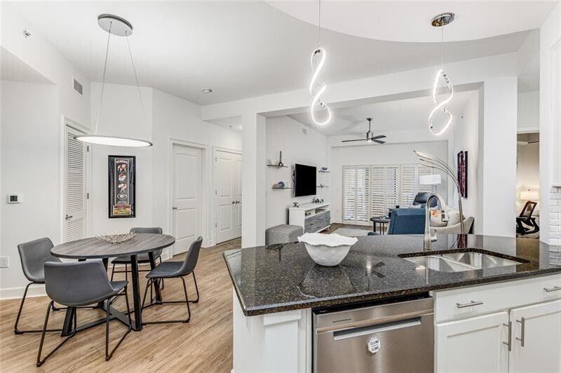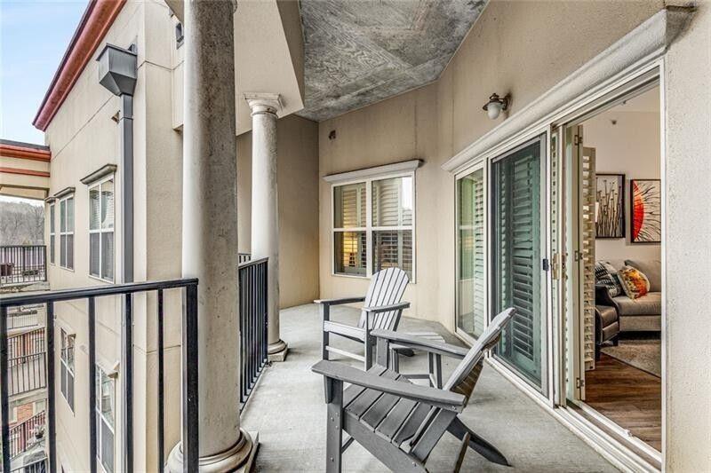 Welcome home to a one-of-a-kind penthouse where style, comfort, and convenience come together in the best way. Thoughtfully redesigned by a professional decorator, this top-floor gem is tucked inside a gated community filled with resort-style amenities you’ll love coming home to. Inside, you’ll find a bright and airy layout featuring a gorgeous kitchen with brand-new stainless steel appliances, a breakfast bar for casual dining, and a spacious pantry. The open dining area is accented with floating shelves and a modern light fixture, while the cozy living room, with plantation shutters, opens to a covered balcony that’s perfect for morning coffee or evening get-togethers. The primary suite is a true retreat, complete with a tray ceiling, a beautifully renovated ensuite with double vanity, and a custom walk-in closet. A second bedroom offers flexibility—it’s great for guests or can easily double as a home office. Other highlights include 10-foot ceilings, a full-size laundry room with side-by-side washer and dryer, and same-level parking just steps from your door. Life at One River Place means more than just a beautiful home, it’s a lifestyle. Nestled along the Chattahoochee River and close to favorite spots like The Battery, Sandy Springs Performing Arts Center, and shopping, this vibrant community offers two saltwater pools (one heated), a dog park, scenic walking trails, a tranquil pond, and lush green spaces. The clubhouse features a 24/7 fitness center, spa room, catering kitchen, and pavilion—perfect for hosting friends or simply unwinding. 24/7 gated access, on-site management, EV charging just for River House residents, an Amazon locker, and HOA dues that cover water, sewer, termite, trash, and recycling. This home has it all!