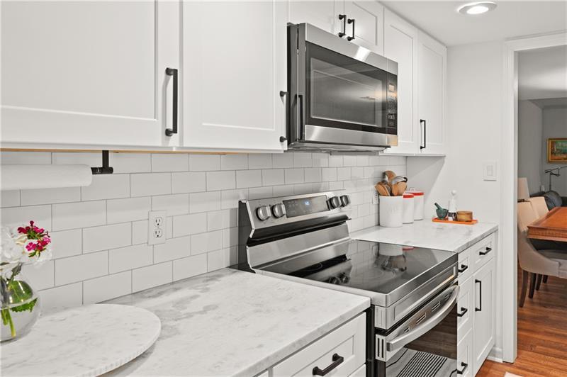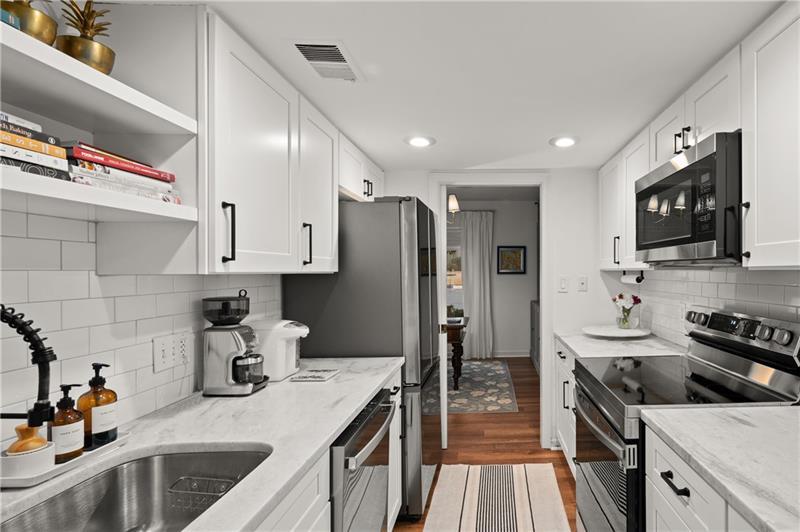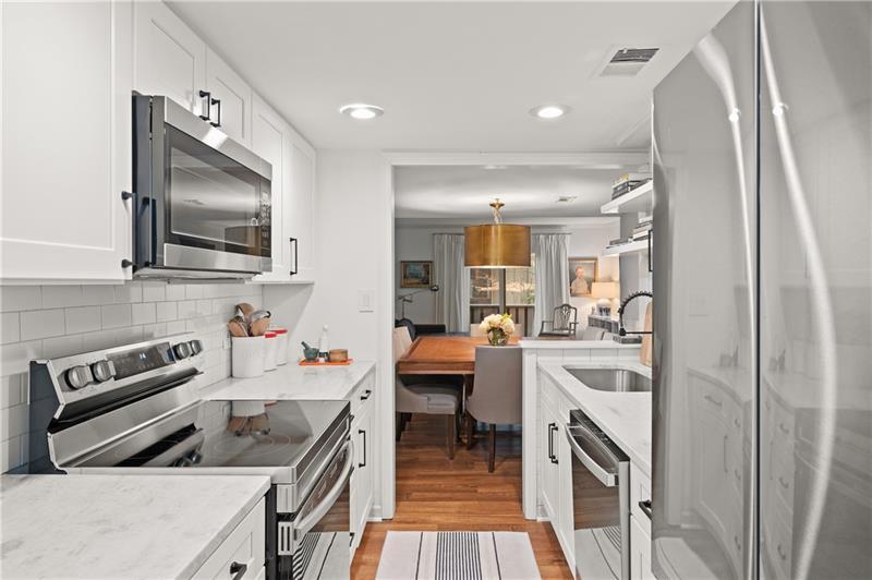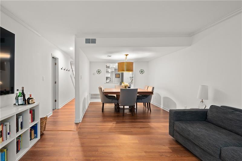 Amazing 3 bedroom in prime Buckhead location! This spacious townhome has been renovated and refreshed and is move in ready. The kitchen has been updated including white cabinets with new quartzite countertops, subway tile backsplash, new hardware, new stainless steel appliances and a separate dining area with seating for 6-8 people that opens up to the spacious family room and deck overlooking a wooded and private backyard. All bathrooms have been updated with new vanities, countertops. Upstairs you will find the primary bedroom and secondary bedrooms and bath. The primary bath has a frameless glass shower with rain shower head, new countertops, subway tile shower and new tile floors and it has a generous walk-in closet. On the terrace level you will find an additional secondary bedroom with full bathroom that has been updated and a spacious laundry room with barn door and access to the lower level deck. This home is so conveniently located and you walk to Chastain Park, Hals, Cava, The Chastain. This active community offers a swimming pool, recently refinished tennis courts and a green space area. Come view and make this your home today!