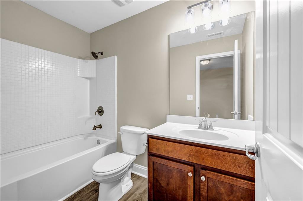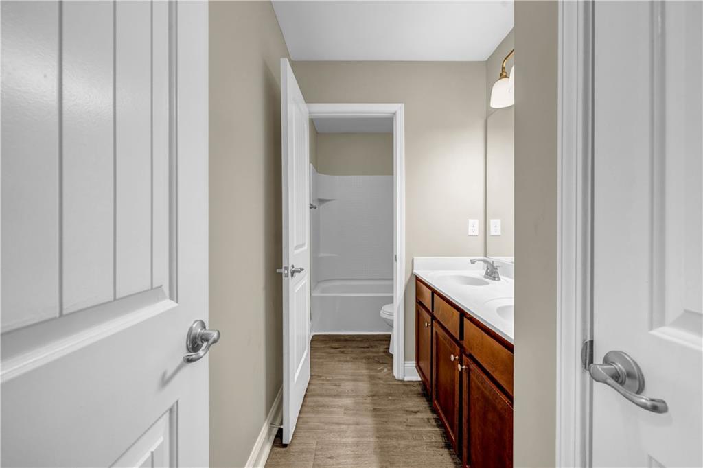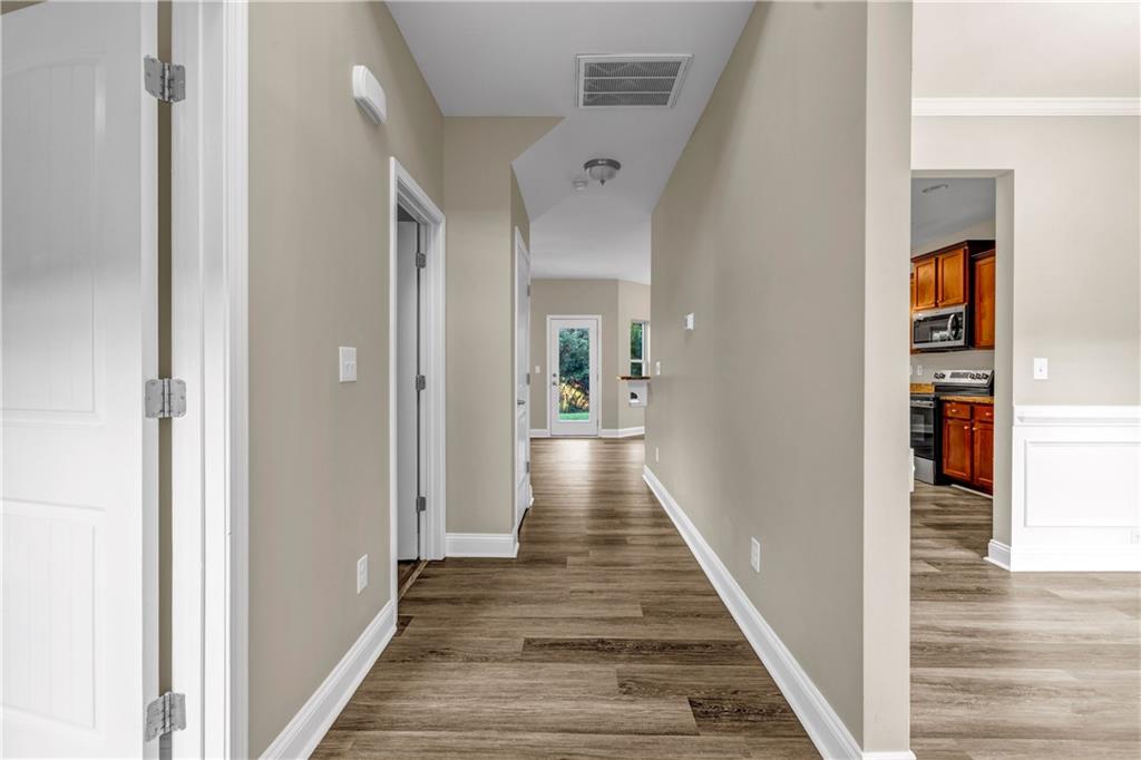 A beautifully crafted move-in ready 5-bedroom, 4-full bath traditional home that blends timeless charm with spaciousness and modern functionality. Nestled in a quiet community just minutes from I-85, Hartsfield-Jackson Airport, and the vibrant heart of Atlanta, this home – one of the largest floor plans in the neighborhood offers the perfect balance of tranquility and convenience. Step onto the inviting front porch that welcomes guest, and enter through a soaring foyer adorned with new LVP flooring. The main level features a flex bedroom perfect for guests, a home office, or a creative space tailored to your needs. The formal dining room shines with elegant crown molding and abundant natural light that is ready to host memorable gatherings. At the heart of the home, the open-concept kitchen and great room create a seamless flow for entertaining and everyday living. Enjoy tall stained cabinetry, granite countertops, a bay window breakfast nook, and stainless-steel appliance, all designed to inspire culinary creativity. A full bath, laundry area, and 2-car garage complete the main level with thoughtful convenience. Upstairs, the sought out back-entry staircase leads to an owner’s suite featuring a tray ceiling, ensuite with double vanity, full size soaking tub, separate shower, and a walk-in closet. A spacious loft offers a bonus retreat, while the split-bedroom layout ensures privacy and comfort for all. The junior suite has its own private bath and two additional bedrooms share a well-appointed full bath. Each of the bedrooms are generously sized. Out back, fire up the grill and unwind on the patio overlooking a private wooded backdrop that is perfect for peaceful evenings or lively weekend gatherings. This rare gem offers space to spread out, modern amenities, and a setting that’s perfect for creating lasting memories. Don’t miss your chance to live one of the largest homes in the neighborhood; schedule your private tour today and fall in love with your next chapter.