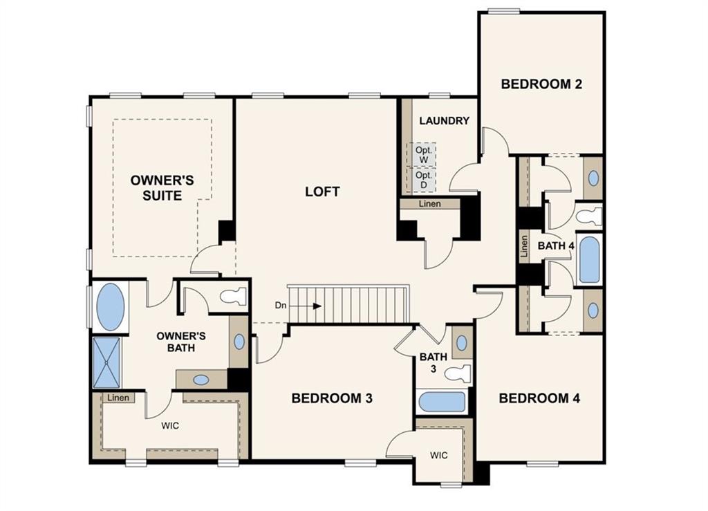 The Sapling is a stunning 5-bedroom, 4-bathroom two-story home, designed with spacious, open-concept living in mind. The main level welcomes you with a formal dining room, a private study, and a large kitchen featuring ample cabinetry, expansive countertops, a sunny breakfast area, and a walk-in pantry. The great room, complete with a cozy fireplace, offers a perfect gathering space. Conveniently, there’s a guest bedroom with access to a full bath located just off the garage entry. Upstairs, the primary suite impresses with a separate double vanity, soaking tub, walk-in shower, and a generous walk-in closet. Two secondary bedrooms share a Jack-and-Jill bath, each with its own vanity, while a third bedroom enjoys a private ensuite bath and large walk-in closet. A spacious loft and a well-equipped laundry room complete the second level, offering both functionality and style throughout. Elevate your lifestyle with the Sapling floorplan at Ellorie Estates - where there is a home for every dream!