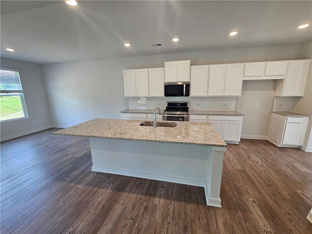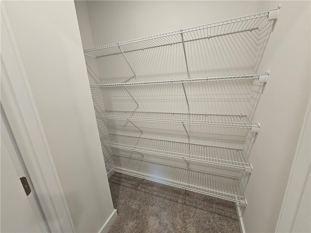 - KitchenCabinets White, Kitchen Island, Pantry Walk-In, Solid Surface Counters, View to Family Room