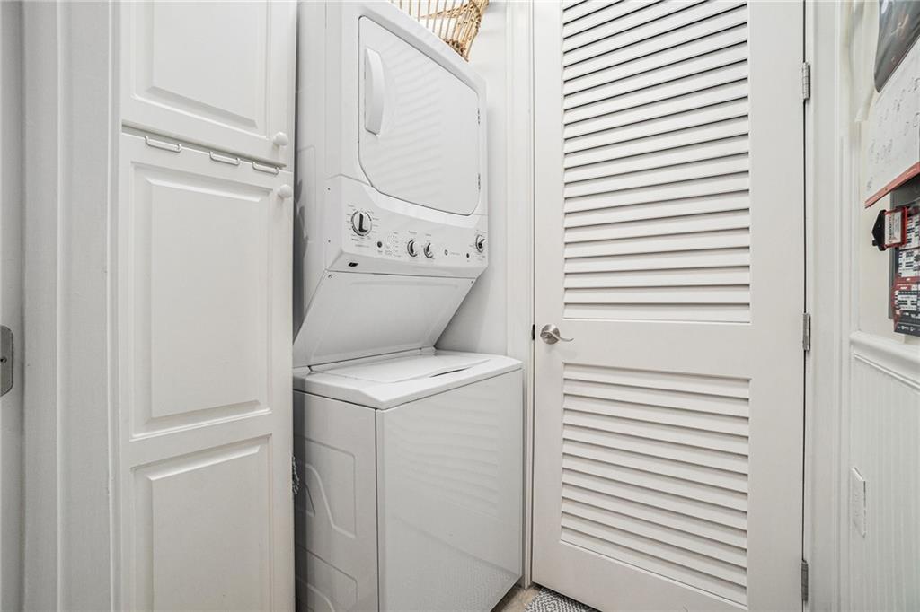 A limited number of Georgetown plans exist in The Manor At Olde Ivy. Unit 202 is an originally-owned and cared-for unit. Boasting 1200+ square feet, this layout offers designated rooms with an open-concept lifestyle. Updated hardwood floors, generous moldings and 9’ ceilings throughout add to the warm welcome of this plan. The community has a Clubhouse for events or meetings, and workout room on lower level Garage has one assigned parking space. Both workout room and garage are FOB protected. The Great Room brings in views of the outdoors through decorative plantation shutters. Well-appointed with built in shelves create a perfect display area for your gallery. The kitchen with breakfast bar, opens to the dining room to allow for group gatherings. Painted cabinets, attractive granite countertops, updated backsplash tile and appliances offer an entertaining atmosphere. The separate laundry room, and HVAC closet are conveniently located off the kitchen. Conventely accessed through custom-made louvered 8’ doors. An oversized primary bedroom suite, complete with a walk-in custom closet, full size linen closet and built-in bookshelves. The ensuite bathroom has double vanity cabinets, jetted tub and separate shower. Spacious and light filled, this primary suite provides the ultimate privacy overlooking total nature in the rear of the 4905 building. As a bonus is the flex room. Built out with custom shelving as an office, just add a daybed for the occasional overnight guest. A half bath and coat closet complete what is one of the largest 1BR condos on the market. The Clubhouse overlooks the beautifully landscaped pool area and houses a newly equipped fitness center featuring locker rooms and showers. Convenient to Hartsfield Atlanta International Airport, upscale shopping and restaurants, movie theaters, and The Battery in Truist Park, home of the 2021 World Series Atlanta Braves.