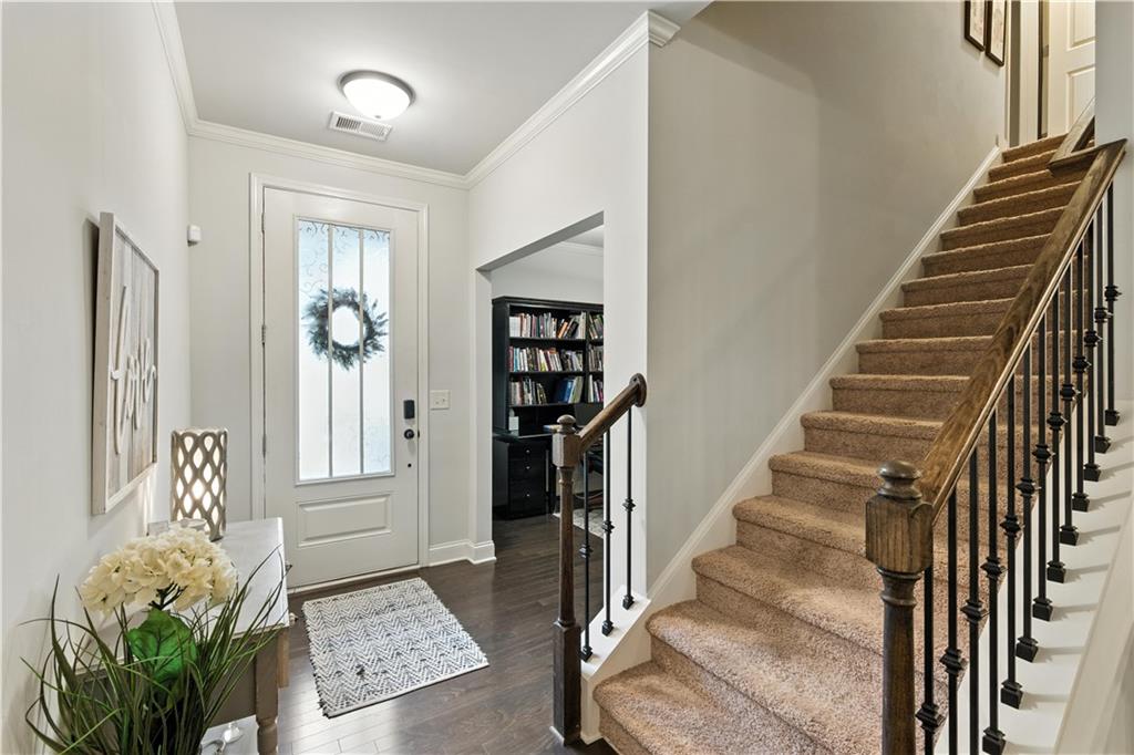 - FeaturesDisappearing Attic Stairs, Entrance Foyer, High Ceilings 9 ft Main, Tray Ceiling(s), Walk-In Closet(s)