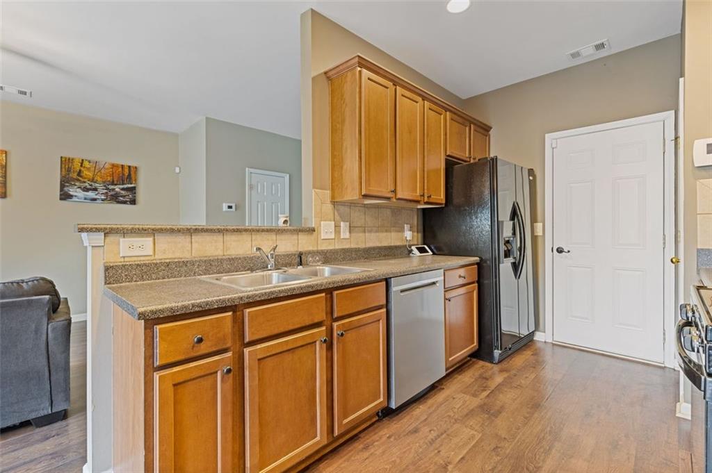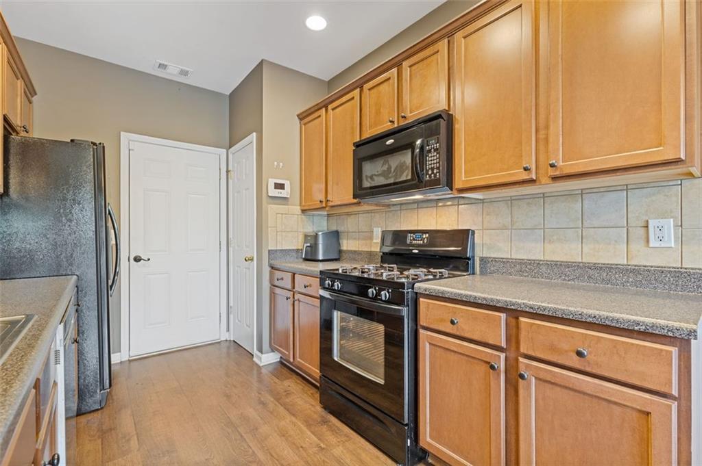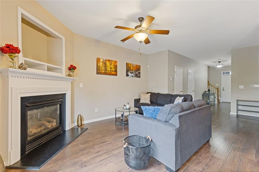 This home qualifies for a 10k grant program- inquire with agent! Charming end-unit townhouse located in a prime area of Kennesaw! The open floor plan seamlessly connects the kitchen, family room, and dining room, featuring two sets of double glass doors that lead to a private patio, allowing ample natural light to flood in. The family room is equipped with a built-in space above the fireplace for a TV. The upper level boasts three spacious bedrooms, with the primary bath offering a double vanity, separate tub, and shower. The HOA takes care of the lawn and exterior, ensuring a low- maintenance lifestyle. Additional features include designated guest parking and community amenities such as a pool, park, and hiking trail. Laundry connections are conveniently located near the upstairs bedrooms. This property is in close proximity to excellent schools, shopping, dining, Kennesaw Mountain, and provides easy access to 1-75!