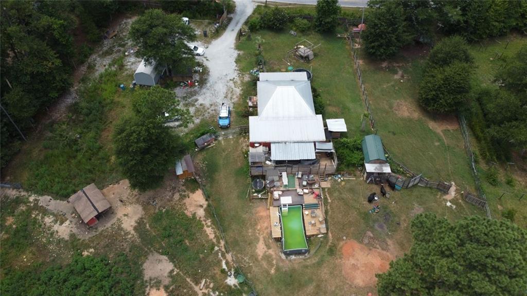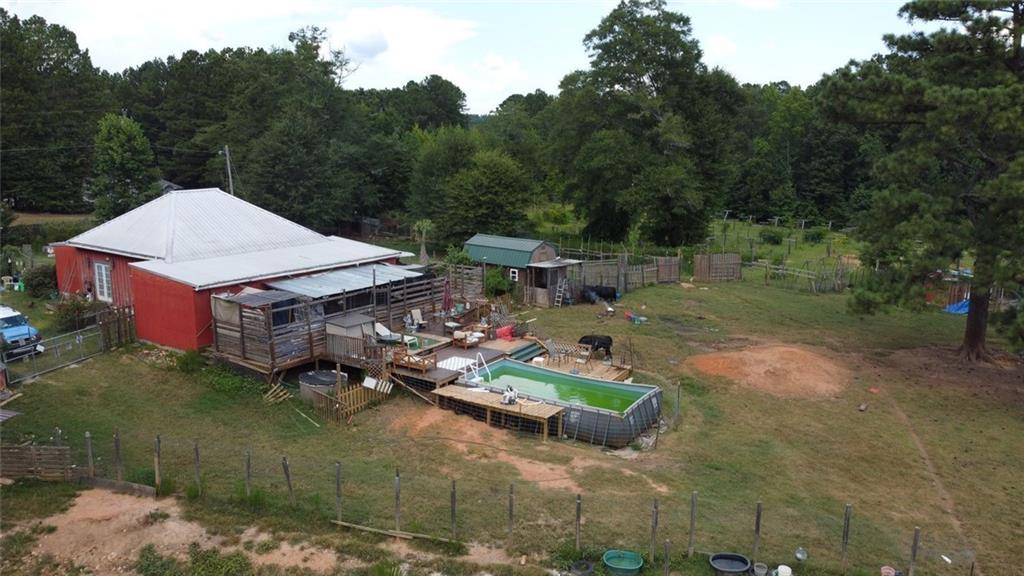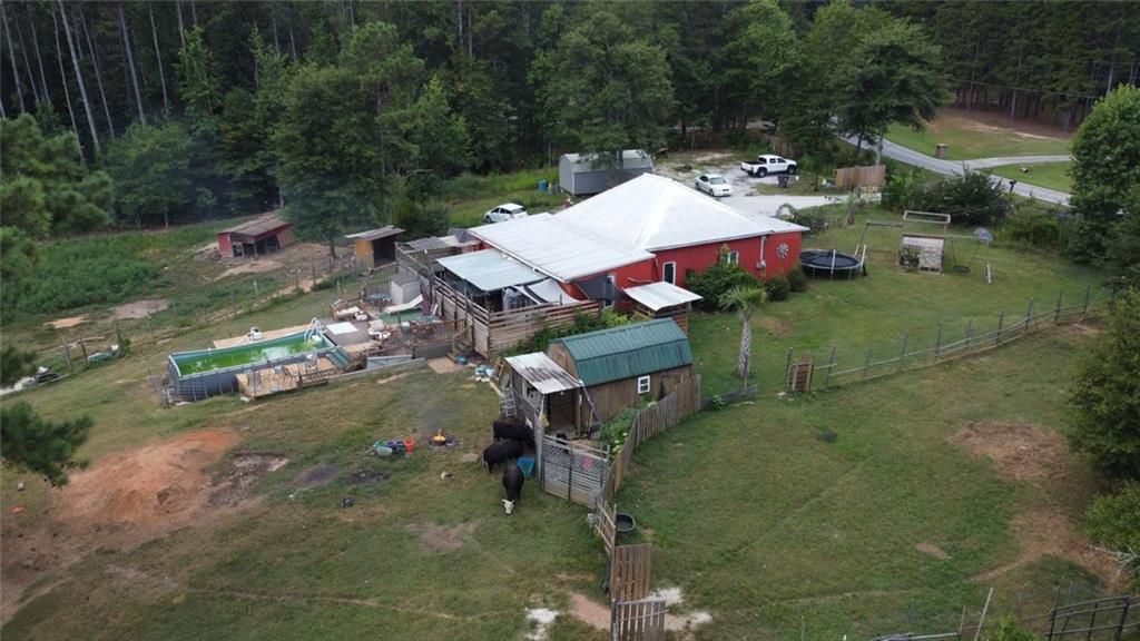 Charming Country Home on almost 25 acres with a Lake, Vineyard & Endless Potential. This unique 2 bed, 2 bath farmhouse blends 1920s charm with some modern updates and fully permitted additions. Set on nearly 25 acres, the property features a small lake, nearly an acre of productive grape vines, multiple storage buildings (one with an additional HVAC unit and electric), and a metal roof installed just 5 years ago. There is also an Electric Fence for cattle. The home is equipped with 3 mini-split HVAC units for year-round comfort. While the house could use some cosmetic updates, it offers great bones and incredible potential. Enjoy a covered back deck, above-ground pool, and a prime hilltop site near the lake—ideal for building your dream home. Conveniently located close to town and I-20 access. A perfect blend of rural living and opportunity.