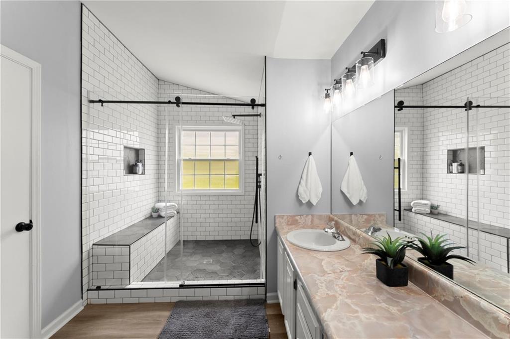 This stylish 3 bed, 2 bath ranch in Woodstock checks all the right boxes—and a few you didn’t know you needed. Inside, you’ll find fresh paint, new LVP flooring, and granite countertops that make the kitchen as functional as it is good-looking. The oversized primary suite brings the wow factor with double sinks, a massive tiled walk-in shower, and enough storage to actually stay organized. Need a home gym or workspace? The garage has its own split unit—no more sweating through summer workouts. A cedar-enclosed patio adds bonus space with personality, and out back, the fully fenced yard features a firepit that’s ready for cool fall nights, s’mores, or story swapping under the stars. Toss in a wood-burning fireplace, low-maintenance cement siding, and a quiet neighborhood just minutes from Downtown Woodstock, Towne Lake, Hwy 92, and I-575—and you've got yourself a home that delivers way more than just good curb appeal.
