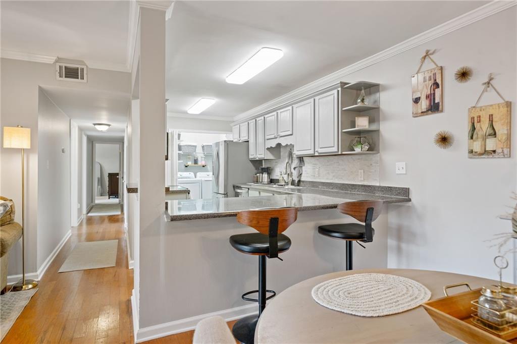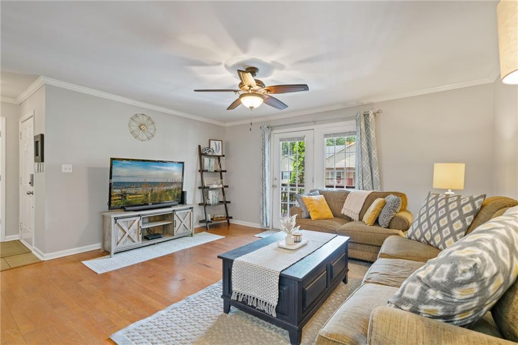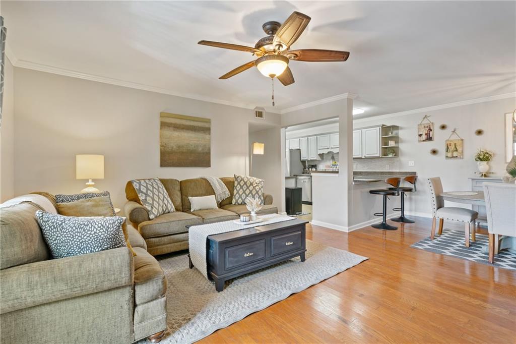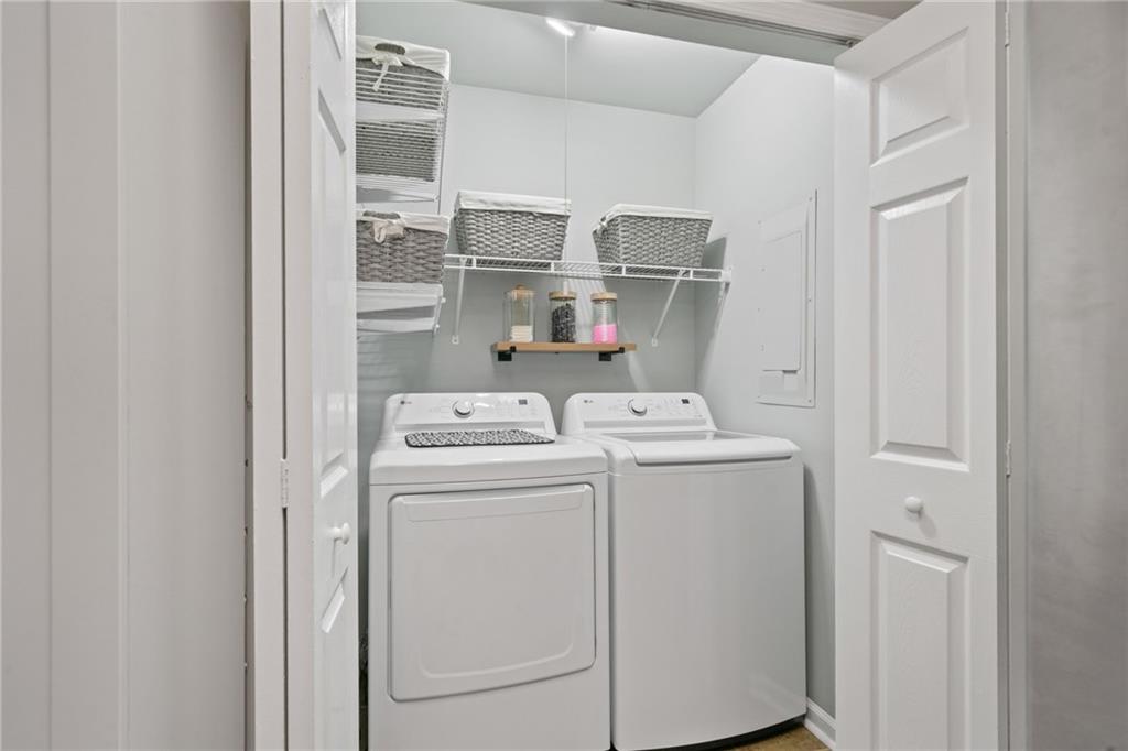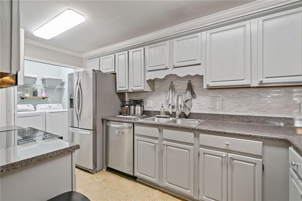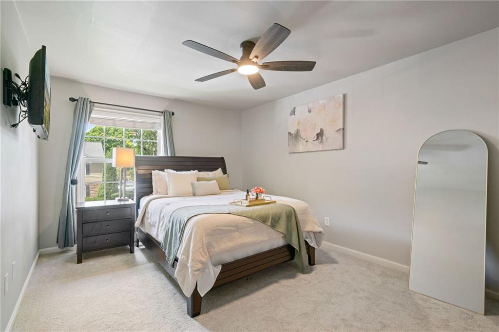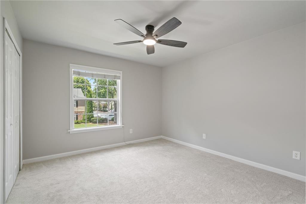 Nestled in the gated Elizabeth Heights community of Sandy Springs, this upper level 3 bed/2 bath condo is move-in ready with updated kitchen, fresh paint and new carpet with upgraded padding. Convenient walkable access to shopping, dining, schools, public transportation, and recreational areas. Spacious kitchen with stainless steel appliances and renovated laundry room. Large walk-in storage closet off the dining area. The exterior covered deck is perfect for entertaining or relaxing. This well-managed community includes a saltwater pool, groundskeeping, clubhouse, numerous dog stations, gated entry, internet, cable, pest control, water, sewer, and waste.