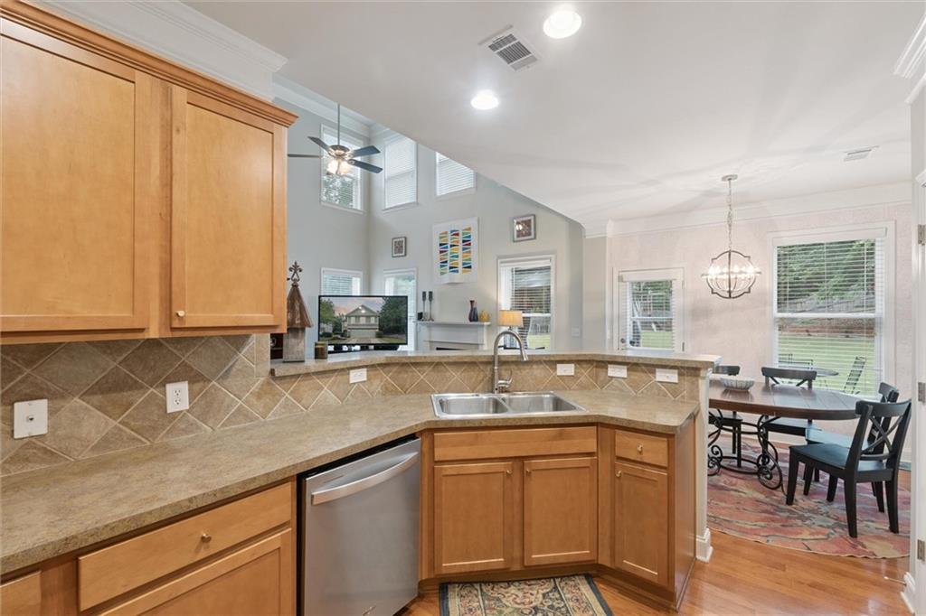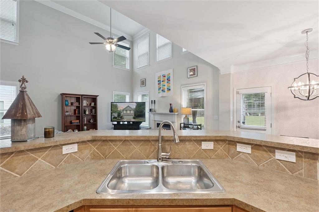 - KitchenBreakfast Bar, Pantry, Solid Surface Counters, View to Family Room