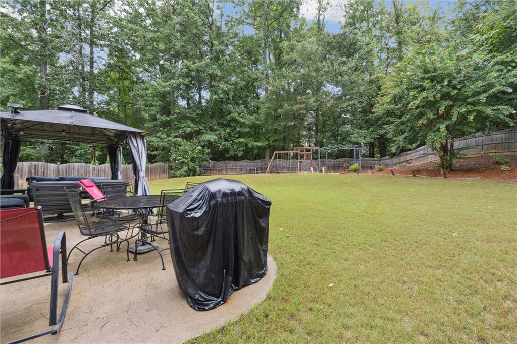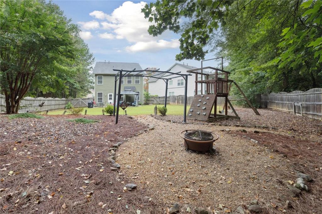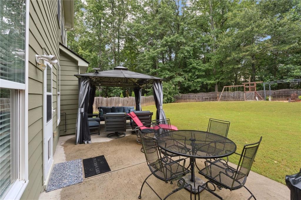 Prime Location in Sought-After West Forsyth District! Tucked away at the end of a quiet cul-de-sac, this beautifully maintained home offers comfort, space, and convenience in one of Georgia's top-rated school districts. The inviting floor plan features hardwood floors, a stunning marble fireplace, tiled bathrooms, and an open-concept kitchen that overlooks the soaring 2-story living room—perfect for entertaining or relaxing with family. Upstairs, an open loft provides flexible space for a home office, playroom, or media area. The oversized primary suite includes a double vanity, walk-in closet, and separate tub and shower. Step outside to enjoy a freshly painted exterior and a fully fenced, expansive backyard ideal for kids, pets, or outdoor gatherings. Enjoy easy access to nearby swim/tennis amenities, the scenic greenway for walking and biking, and just minutes to Vickery Village, shopping plazas, and GA-400. Major updates include a new roof (2024), newer stainless steel appliances, and a brand new water heater—the following interior rooms are freshly painted a clean, Snowbound white. 2-Story Family Room, Kitchen, Foyer, Dining Room, Upstairs Hallway & Loft. Move-in ready and waiting for you!