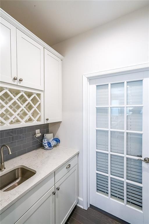 - KitchenBreakfast Bar, Cabinets White, Kitchen Island, Pantry Walk-In, Stone Counters, View to Family Room, Wine Rack