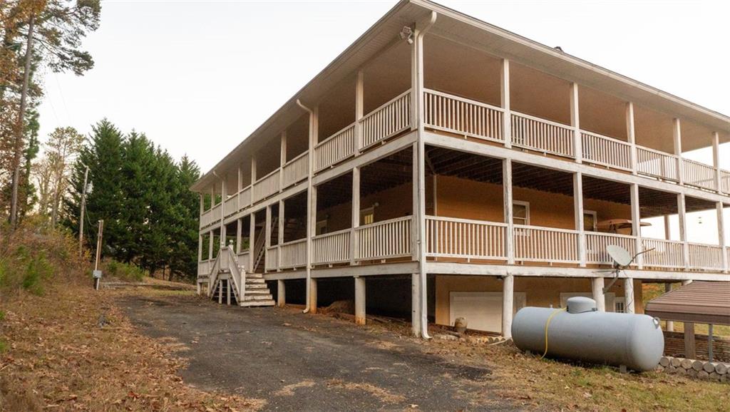 Welcome to your private oasis! Non HOA, secluded, and located right in the heart of Dallas, less than 5 minutes from Downtown! Unique 3 story home on 5+ acres of serene, magnificent, farmland and beautiful pasture. 4 bedrooms and 2 full baths on full basement. Full wraparound patio on both levels is great for enjoying the peace and nature at this home. Master bedroom on main with large bathroom, formal dining, large eat in kitchen with lots of cabinets, 2 living rooms, one on each level and wet bar on both levels. Bonus room in basement can be used as an extra bedroom or good for gym or quiet space for home office. Spiral staircase to upper and lower levels. ELEVATOR from basement to upper level makes the house accessible. 2 car garage, 1 car covered parking and lots of space for many cars to park. In ground pool, currently filled, all electronics work. New Carpet is less than a year old, and original hardwood underneath. Amazing country views with lots of wildlife. Minutes to HWY 278, I-120 and Cartersville