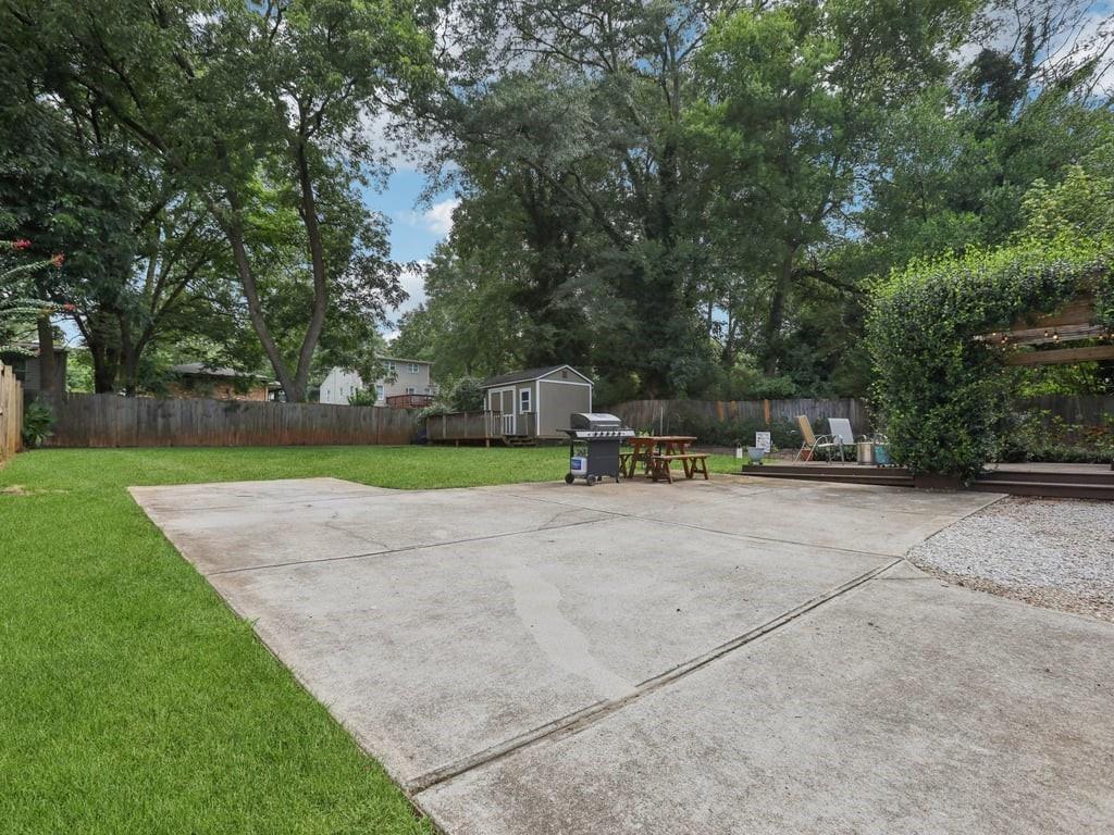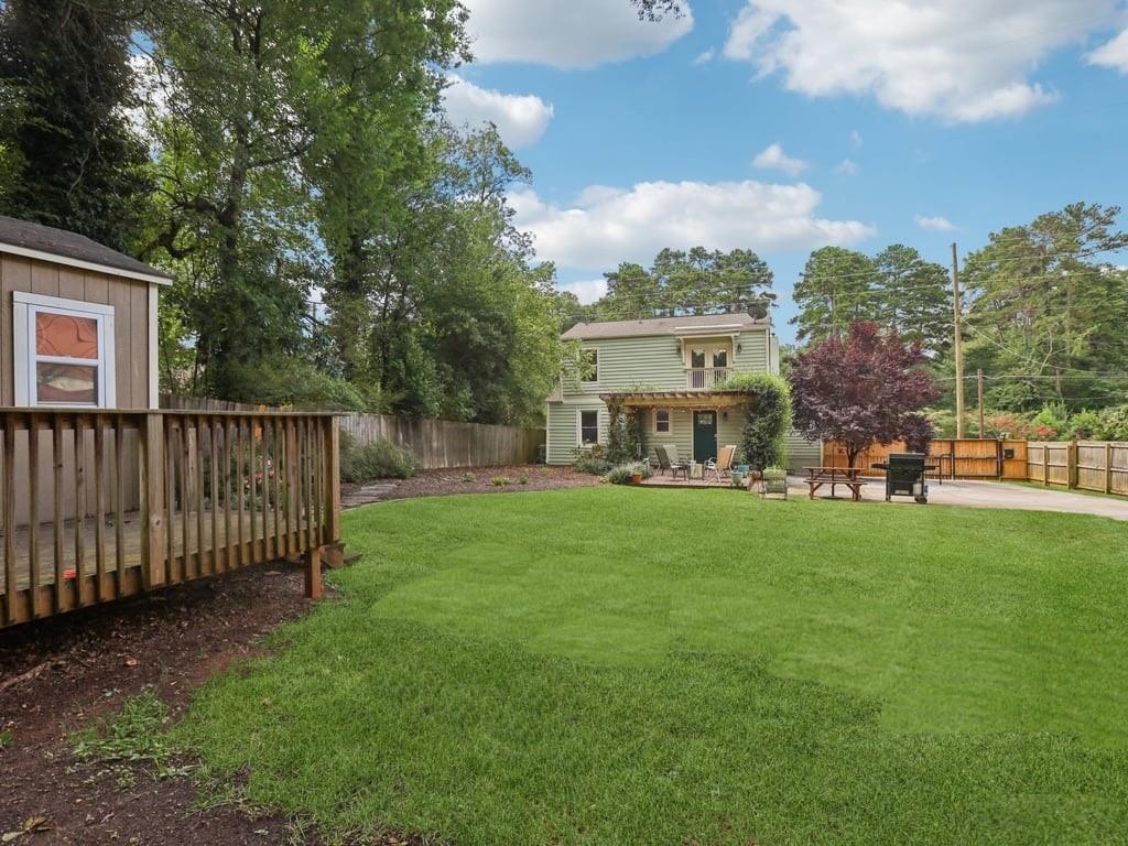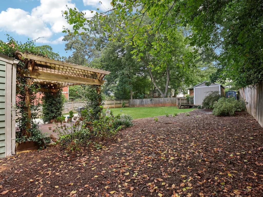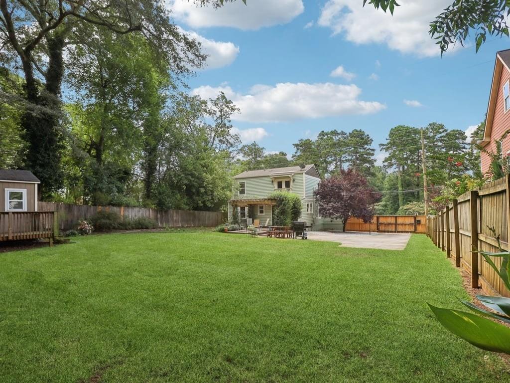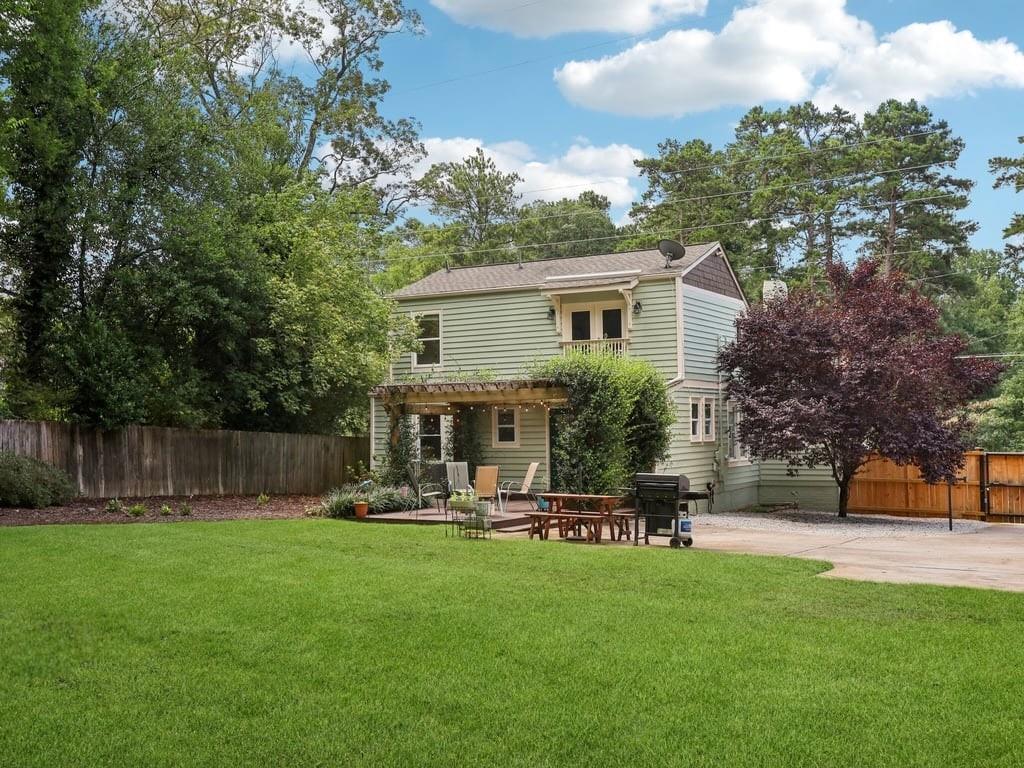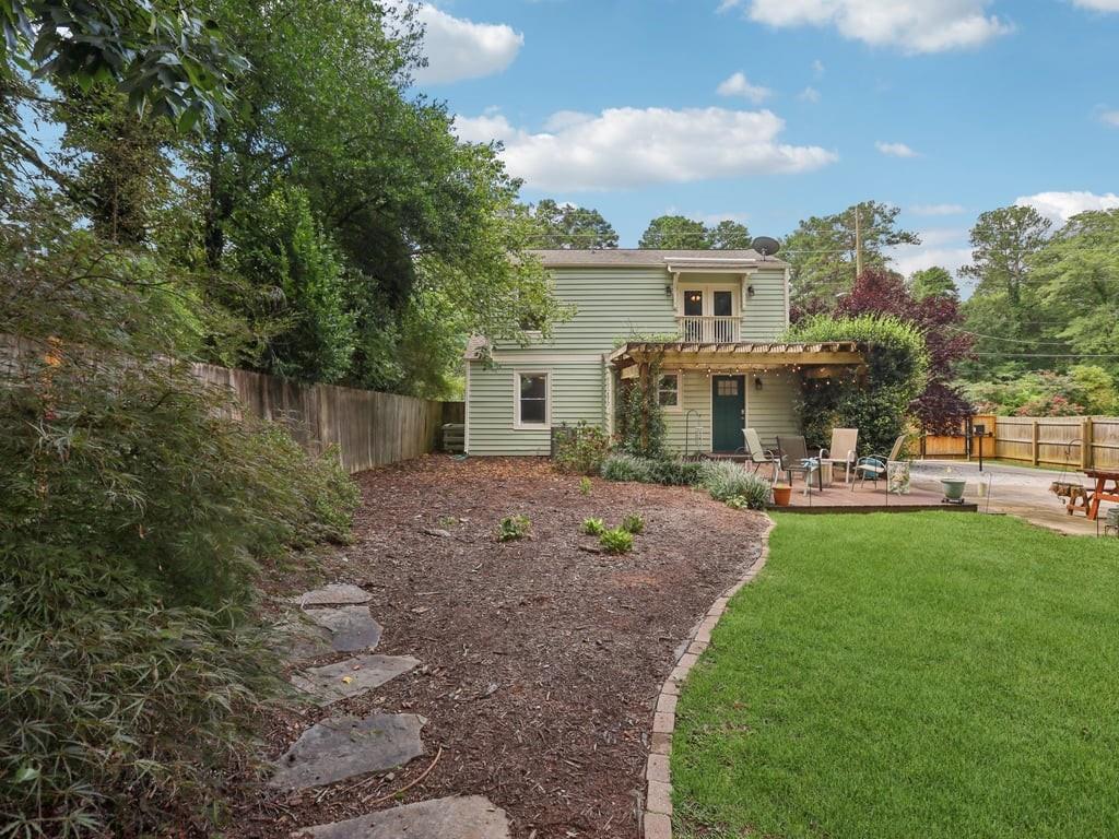 Meet the in town château that lives like a retreat: gated for privacy, framed by a lush Zoysia lawn, and finished inside and out with a meticulous, no-expense-spared touch that makes every arrival feel special. Arrive through a handsome, solar-powered automated gate to a surprisingly private, oversized yard framed by a newly painted white picket fence and an enclosed custom perimeter, a rare intown sanctuary where neighbors are nearby yet thoughtfully out of view. The freshly painted exterior sets an elegant tone enhanced by new gutters and downspouts with debris guards, while professionally designed hosta gardens and a Zenith Zoysia sodded lawn deliver a lush, magazine-ready welcome. Step inside to a sunlit, open floor plan where generous living and dining areas flow with ease to a bright kitchen appointed with stainless steel appliances and granite counters. Every surface feels refreshed and intentional, and the entire home reflects a no-expense-spared mindset. Upstairs, the primary suite is a calming retreat with wonderful volume and an updated bath; upgraded floors extend through the primary bedroom and closets, and thoughtfully reworked closets, including built-in storage in the primary, keep life beautifully organized. Two additional bedrooms and a convenient powder room balance daily routines with quiet sophistication. Smart-home upgrades elevate comfort and peace of mind, Nest thermostat and Protect devices, Schlage smart locks, and Eufy cameras and doorbell, while recent capital improvements instill confidence, including a first-floor A/C replacement, chimney-flashing work, fascia enhancements, and an upgraded primary-bath. Beneath it all, the crawlspace/basement has been encapsulated and insulated with a sump pump and room for shelving and storage, underscoring the home’s meticulous care. Outdoor living is the showpiece: multiple patios expanded for entertaining, a pergola draped in café lights, and a dedicated fire-pit terrace that turns every evening into an alfresco moment. A 160± sq ft shed with an attached deck adds flexible space for hobbies or gear. Privacy comes easy with the remote motorized gate, solar privacy fencing, and ample off-street parking tucked beyond the fence line. It’s effortless to arrive home in any weather, glide through the gate, and step straight into your own private oasis. Positioned for truly convenient Atlanta living, you’re minutes from the I-285/Glenwood interchange and I-20 for quick cross-metro access while celebrated intown destinations remain close at hand. Spend a sunny morning at Shoal Creek Park just down Glenwood Road, then play a twilight round at Charlie Yates Golf Course or head to the East Lake Family YMCA for a wellness reset. When tournament season arrives, East Lake Golf Club, home of the TOUR Championship every August, is a short hop away. Evenings invite you to the acclaimed restaurants of Decatur Square, the indie-spirited East Atlanta Village, and the storied streets of Little Five Points; on nights in, Wonder Wok on Glenwood makes carry-out a breeze. Daily essentials are simple with Publix at East Lake, ALDI on Memorial Drive, Lidl on Covington Highway, and a nearby Walmart Supercenter, and you’re moments to Midtown, Downtown, and Stone Mtn. Immaculate, turnkey, and thoughtfully upgraded inside and out, this home delivers the rare combination of privacy, polish, and proximity, an elegant, indoor-outdoor rhythm that lives as beautifully as it shows.