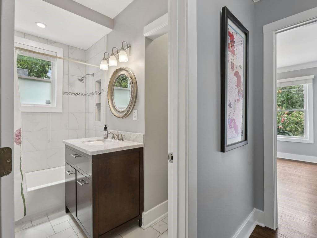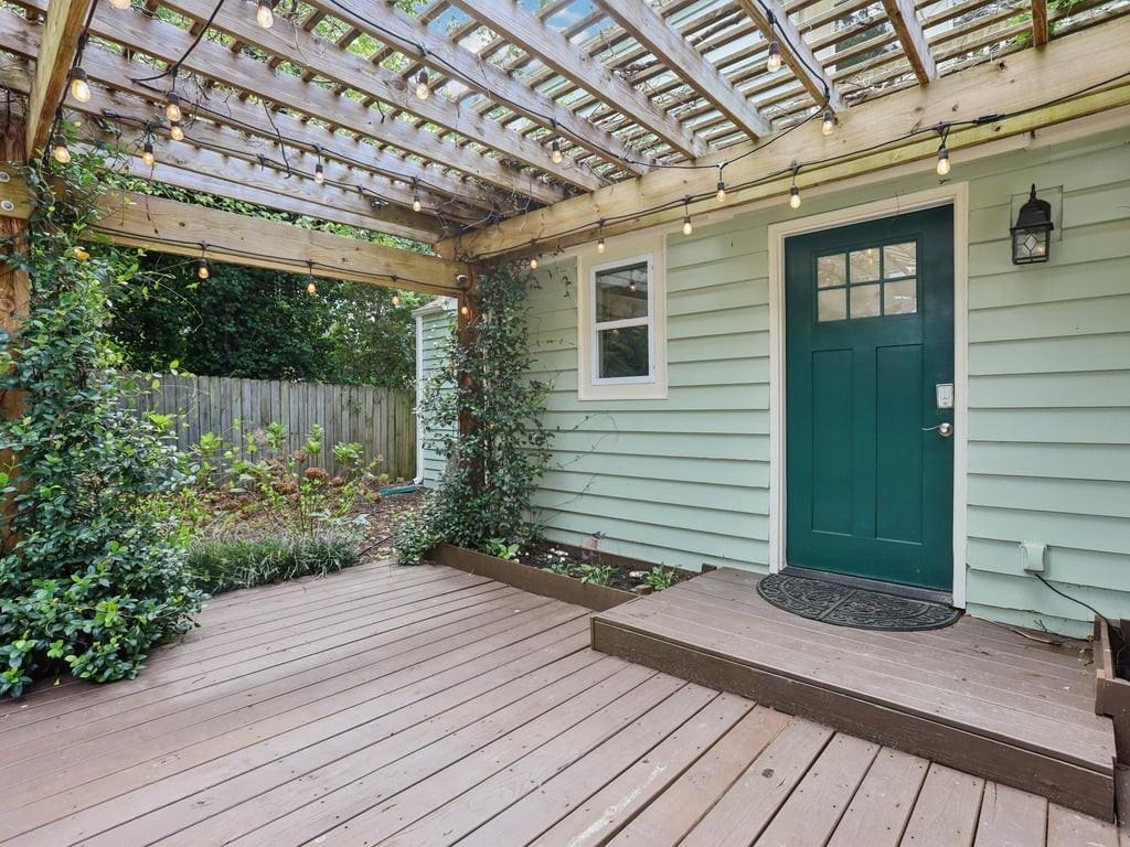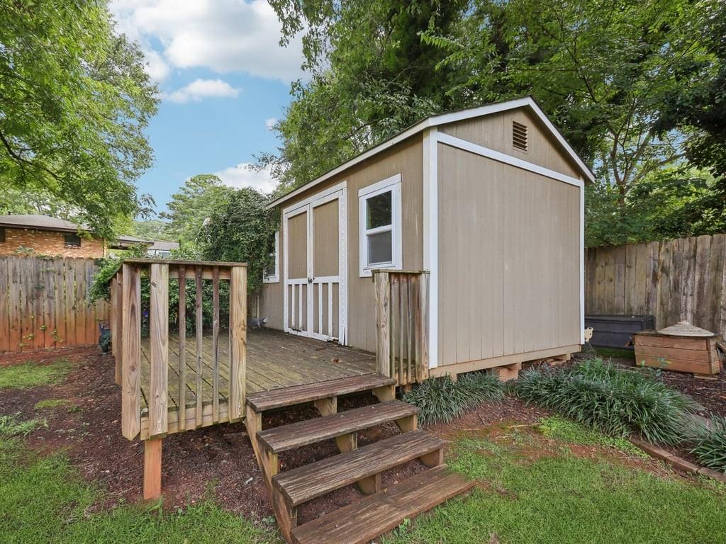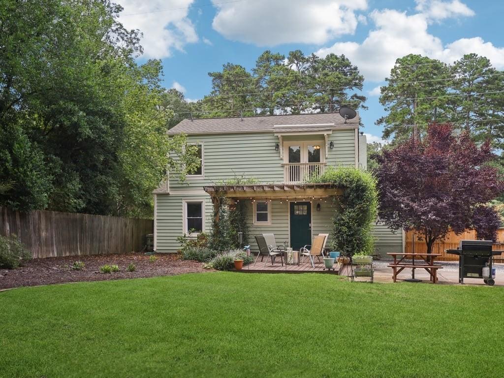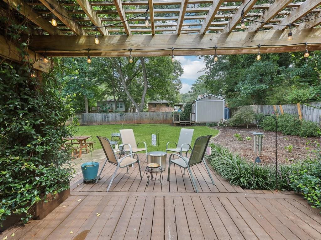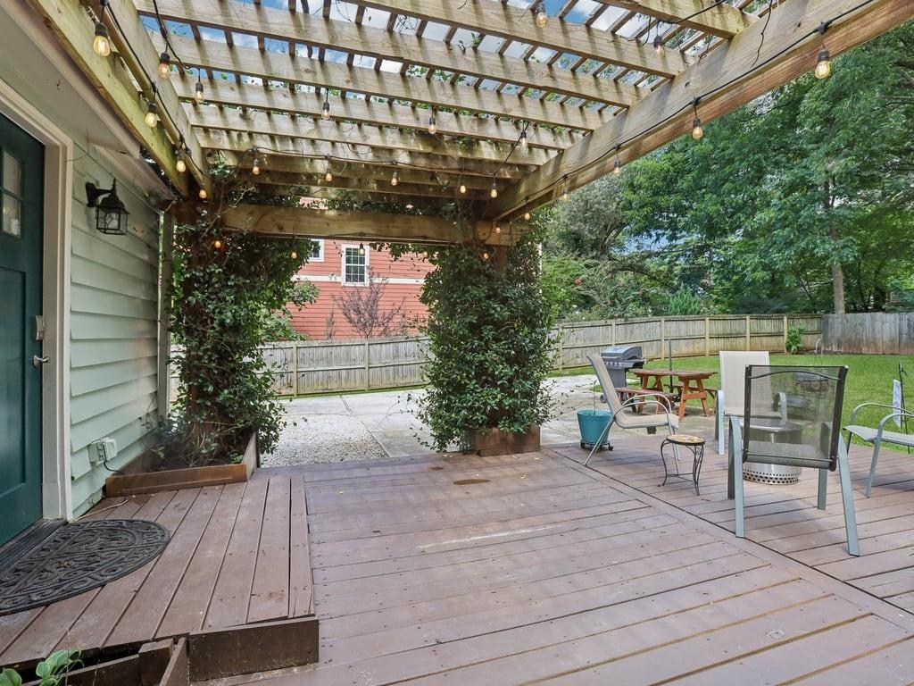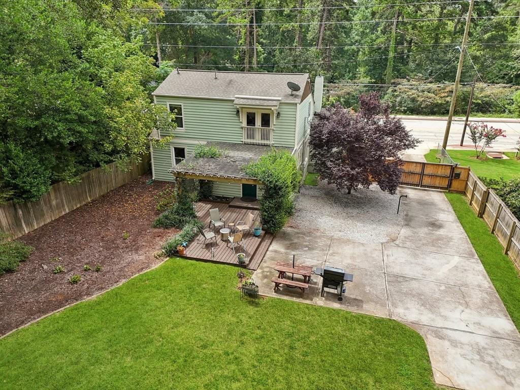 Meet the in town château that lives like a retreat: gated for privacy, framed by a lush Zoysia lawn, and finished inside and out with a meticulous, no-expense-spared touch that makes every arrival feel special. Arrive through a handsome, solar-powered automated gate to a surprisingly private, oversized yard framed by a newly painted white picket fence and an enclosed custom perimeter, a rare intown sanctuary where neighbors are nearby yet thoughtfully out of view. The freshly painted exterior sets an elegant tone enhanced by new gutters and downspouts with debris guards, while professionally designed hosta gardens and a Zenith Zoysia sodded lawn deliver a lush, magazine-ready welcome. Step inside to a sunlit, open floor plan where generous living and dining areas flow with ease to a bright kitchen appointed with stainless steel appliances and granite counters. Every surface feels refreshed and intentional, and the entire home reflects a no-expense-spared mindset. Upstairs, the primary suite is a calming retreat with wonderful volume and an updated bath; upgraded floors extend through the primary bedroom and closets, and thoughtfully reworked closets, including built-in storage in the primary, keep life beautifully organized. Two additional bedrooms and a convenient powder room balance daily routines with quiet sophistication. Smart-home upgrades elevate comfort and peace of mind, Nest thermostat and Protect devices, Schlage smart locks, and Eufy cameras and doorbell, while recent capital improvements instill confidence, including a first-floor A/C replacement, chimney-flashing work, fascia enhancements, and an upgraded primary-bath. Beneath it all, the crawlspace/basement has been encapsulated and insulated with a sump pump and room for shelving and storage, underscoring the home’s meticulous care. Outdoor living is the showpiece: multiple patios expanded for entertaining, a pergola draped in café lights, and a dedicated fire-pit terrace that turns every evening into an alfresco moment. A 160± sq ft shed with an attached deck adds flexible space for hobbies or gear. Privacy comes easy with the remote motorized gate, solar privacy fencing, and ample off-street parking tucked beyond the fence line. It’s effortless to arrive home in any weather, glide through the gate, and step straight into your own private oasis. Positioned for truly convenient Atlanta living, you’re minutes from the I-285/Glenwood interchange and I-20 for quick cross-metro access while celebrated intown destinations remain close at hand. Spend a sunny morning at Shoal Creek Park just down Glenwood Road, then play a twilight round at Charlie Yates Golf Course or head to the East Lake Family YMCA for a wellness reset. When tournament season arrives, East Lake Golf Club, home of the TOUR Championship every August, is a short hop away. Evenings invite you to the acclaimed restaurants of Decatur Square, the indie-spirited East Atlanta Village, and the storied streets of Little Five Points; on nights in, Wonder Wok on Glenwood makes carry-out a breeze. Daily essentials are simple with Publix at East Lake, ALDI on Memorial Drive, Lidl on Covington Highway, and a nearby Walmart Supercenter, and you’re moments to Midtown, Downtown, and Stone Mtn. Immaculate, turnkey, and thoughtfully upgraded inside and out, this home delivers the rare combination of privacy, polish, and proximity, an elegant, indoor-outdoor rhythm that lives as beautifully as it shows.