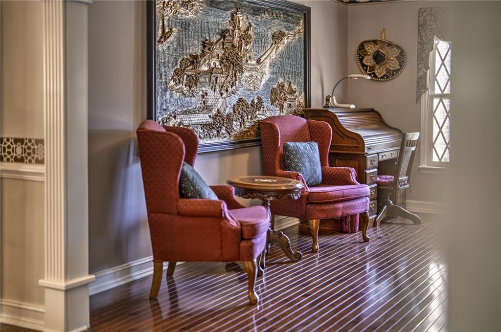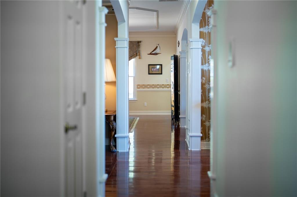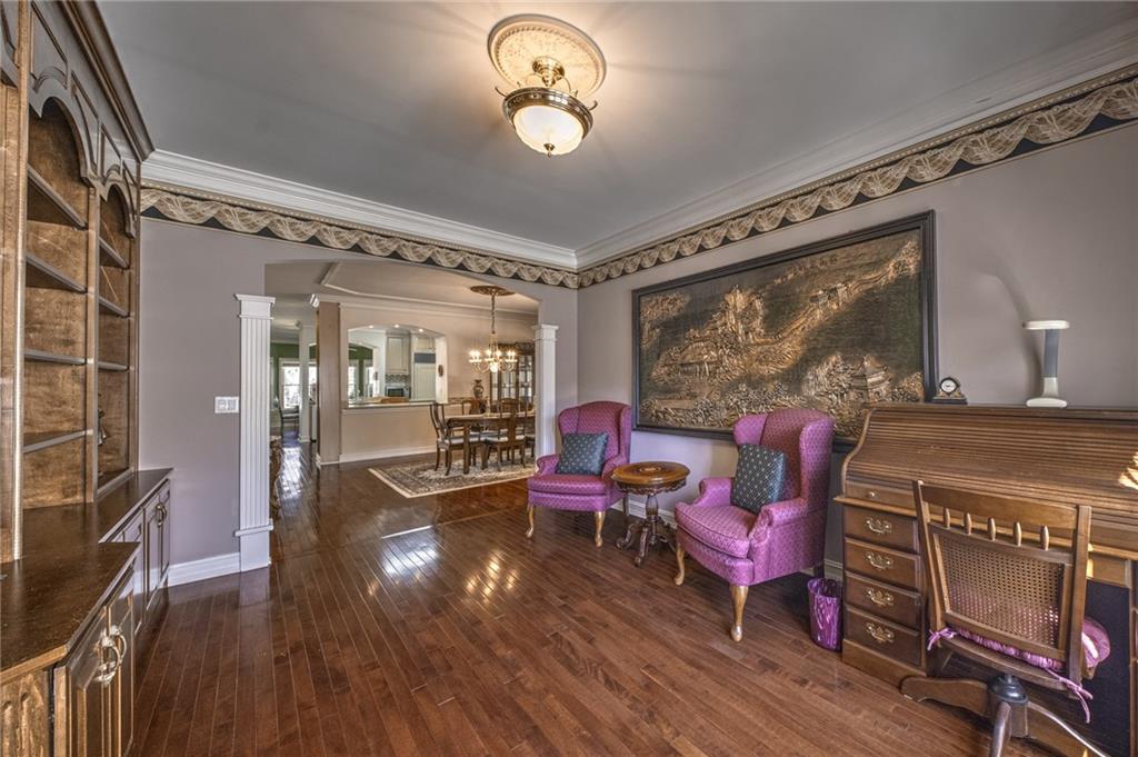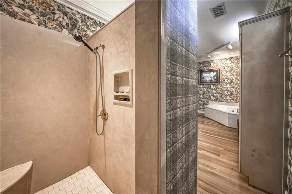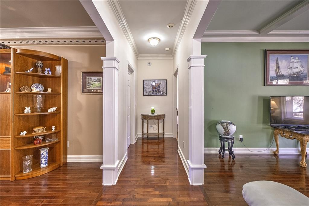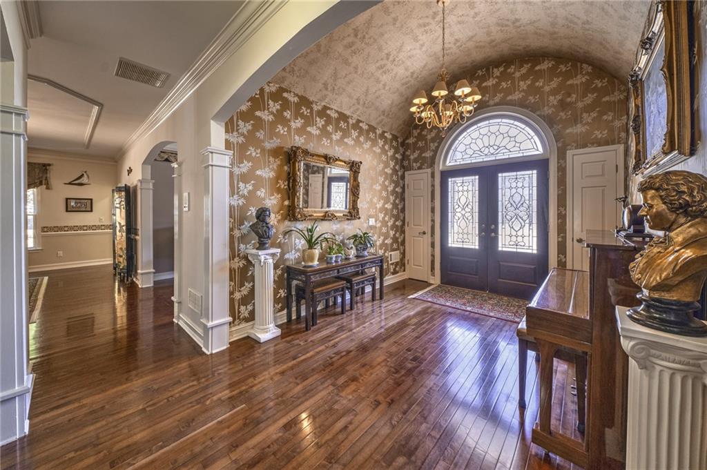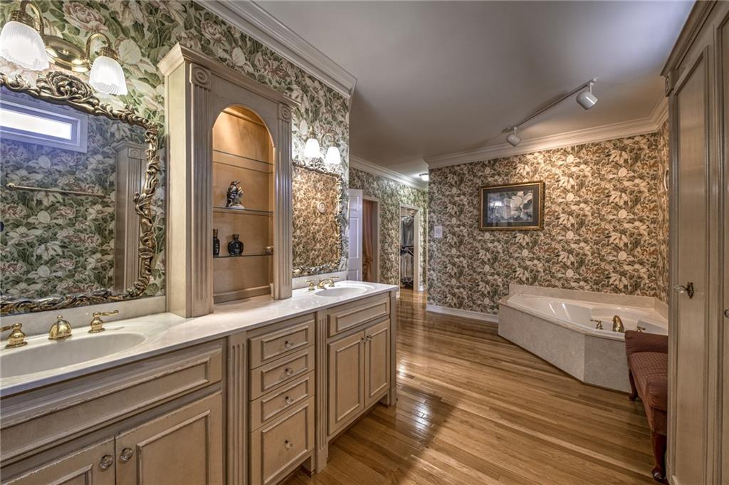- FeaturesBookcases, Coffered Ceiling(s), Crown Molding, Disappearing Attic Stairs, Double Vanity, High Ceilings 10 ft Main