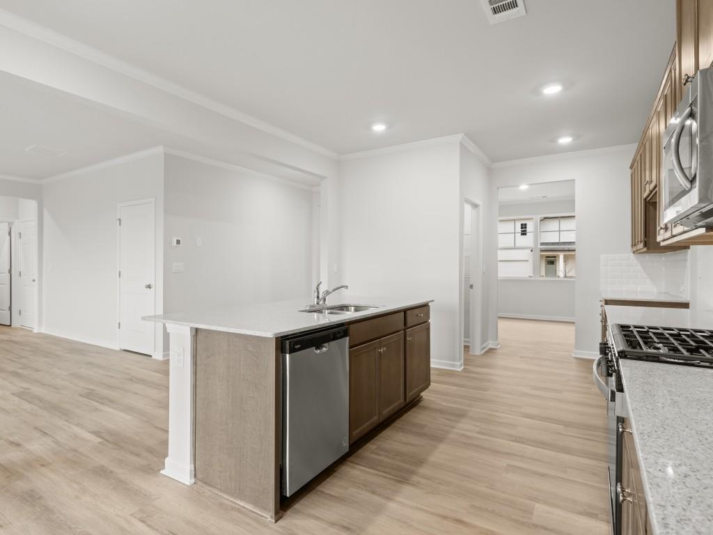 New construction two-story home at 837 Lost Creek Parkway is a 3,209 sq. ft Halton plan in Dallas, GA's Lost Creek community boasting of 5 bedrooms and 3 bathrooms, including a spectacular primary suite, quartz counter tops in kitchen & bath along with LVP flooring throughout the main including bathrooms. A spacious foyer leads you into the home with access to the stairs, a hallway leading into the living room and an entryway into the flex room at the front of the home. Through the flex room you'll enter a butler's pantry that acts as a pass-through--especially beneficial if the flex space is used as a dining room--and also provides access to the roomy walk-in pantry. The large kitchen feels boundless with seamless flow into the attached dining area and adjacent living room. Stainless-steel appliances, oversized island and bountiful counter space make the kitchen a chef's dream. A bedroom and full bathroom round out the main living area. At the top of the stairs is an additional living area. On one side, are three secondary bedrooms and a bathroom with double vanity and a linen closet. On the other side, the primary suite sprawls from the front of the home to the back, featuring a roomy bedroom with its own large sitting area, two expansive walk-in closets and a primary bathroom with double vanity, separate soaking tub and shower plus a water closet. A convenient laundry room rounds out the second floor. Contact us to learn more about your new home at 837 Lost Creek Parkway.