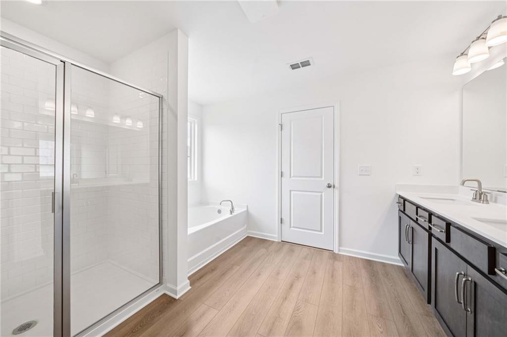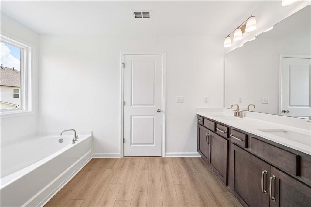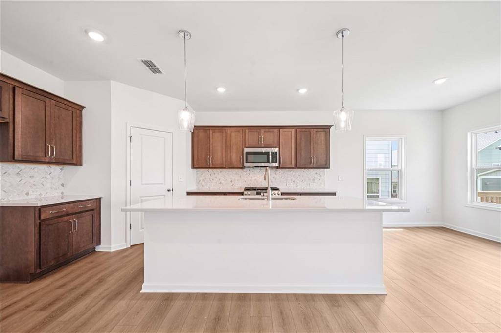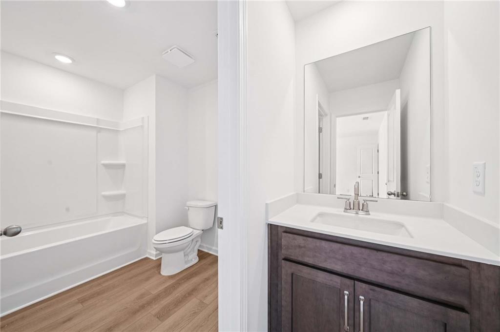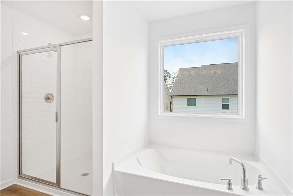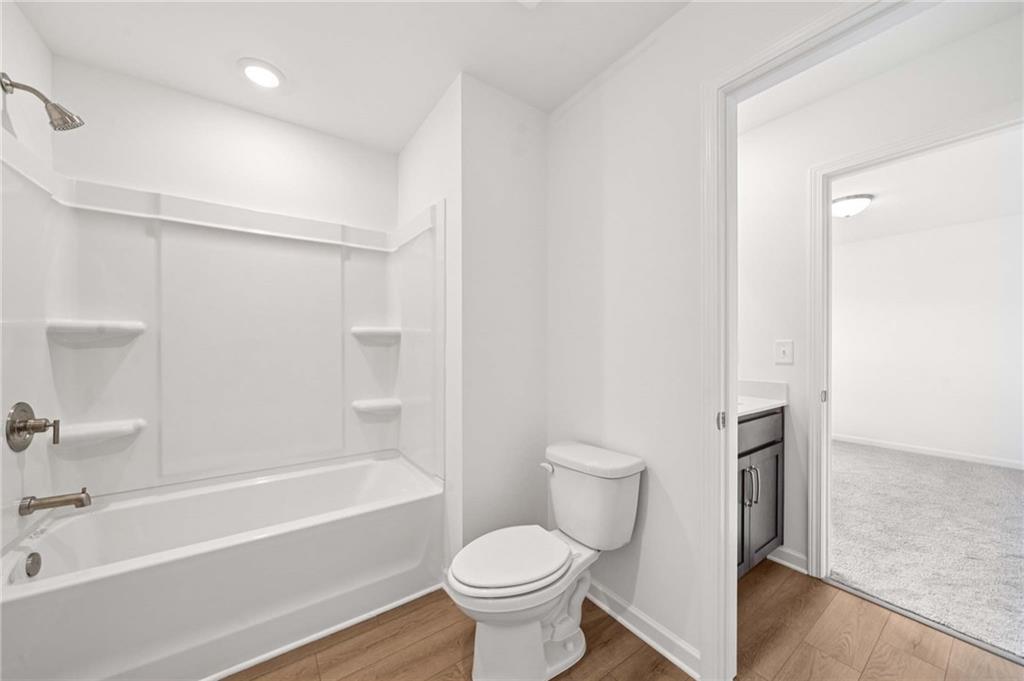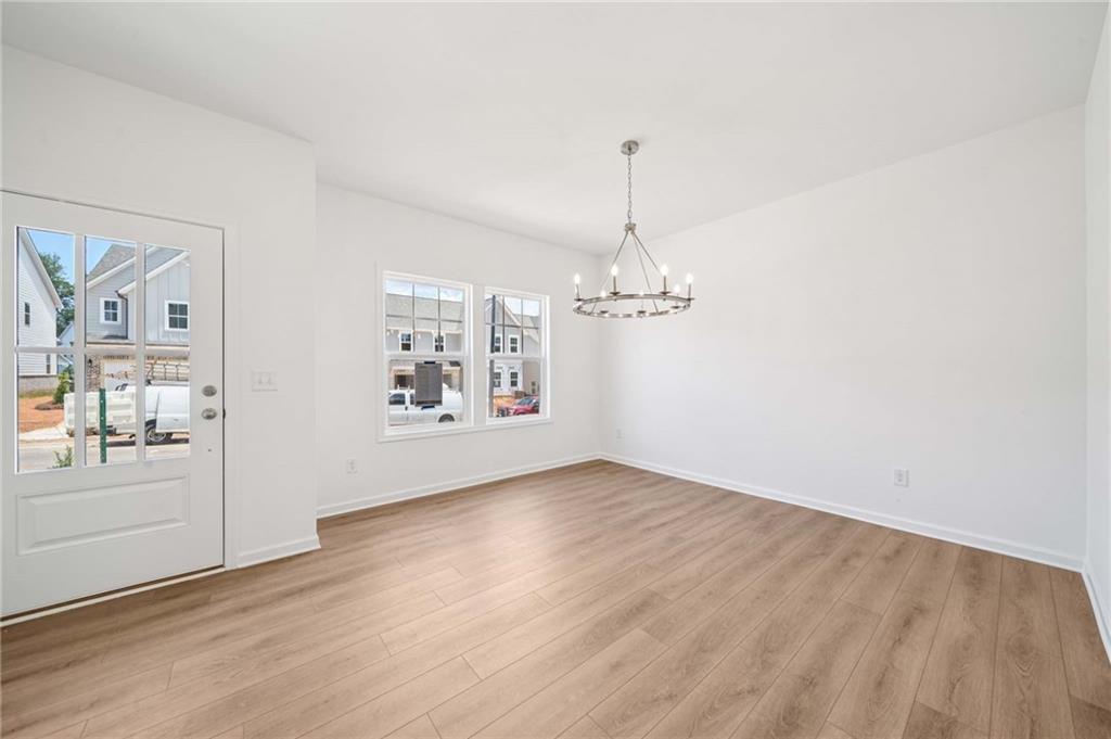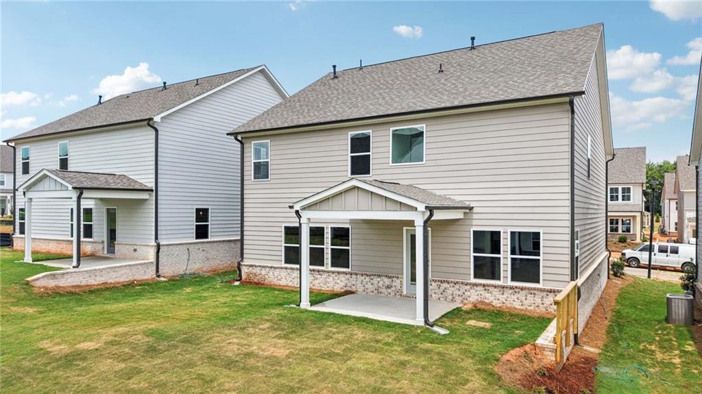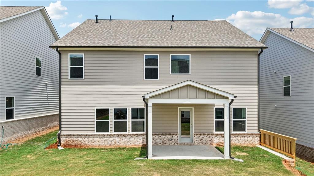 Welcome to the Hampstead, a captivating home featuring an impressive main living area. The open kitchen boasts a spacious island and a large walk-in corner pantry offering ample storage and prep space. Enjoy lots of space in the inviting family room which provides access to the covered patio. Upstairs, discover three generous secondary bedrooms, each with a walk-in closet, along with a convenient laundry room and 2 full bathrooms. The primary bedroom suite serves as a serene retreat, complete with a double vanity, separate tub, walk-in shower, and an expansive walk-in closet. Located in the heart of Flowery Branch near the scenic shores of Lake Lanier, Eastlyn Crossing offers a stunning collection of single-family homes and townhomes in a vibrant community. Enjoy the charm of historic downtown Flowery Branch, where you can stroll through unique boutiques, relax in cozy cafés, and browse the local farmer’s market. Spend your days exploring nearby attractions, from Alberta Banks Park’s tennis courts and playgrounds to the recreational opportunities at Lake Lanier Islands, including hiking trails, golf, waterslides, and lakeside dining. Closer to home, residents can relax by the cabanas at the pool or enjoy a friendly game on the pickleball courts. At Eastlyn Crossing, you’ll find the perfect balance of comfort, connection, and adventure. This home has a projected delivery date of August 2025. For further details and information on current promotions, please contact an onsite Community Sales Manager. Please note that renderings are for illustrative purposes, and photos may represent sample products of homes under construction. Actual exterior and interior selections may vary by homesite.