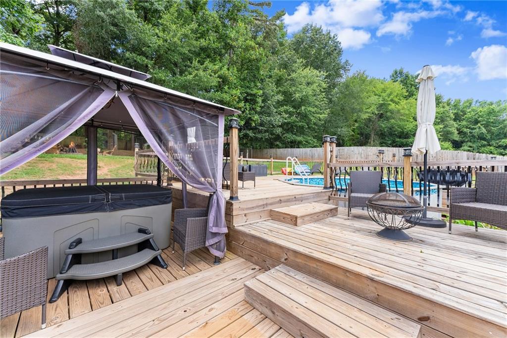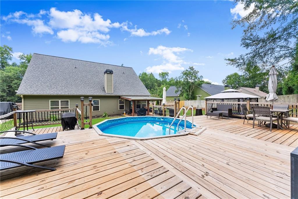 Gorgeous two-story home on a beautifully manicured 0.60-acre lot in sought-after Lake Vista Estates! Enjoy sunny days by the pool and relaxing evenings in the hot tub. This immaculate, model-perfect home features 4 spacious bedrooms, 3 full baths, a powder room, and a dramatic two-story foyer. The open floor plan offers the perfect blend of comfort and space, showcasing gleaming hardwood floors, elegant arched openings, and a formal dining room that flows into the bright kitchen with white cabinetry, granite counters, double ovens, stainless steel appliances, a breakfast bar, and butler’s pantry. The vaulted great room centers around a cozy fireplace, while the main-level oversized primary suite impresses with a tray ceiling, double vanities, a custom walk-in closet, and spacious bath. Upstairs includes three additional bedrooms and two full baths—perfect for guests, home offices, or flexible living space. Outdoor living is a highlight with a hot tub, above-ground pool, three-tier deck, and covered patio—ideal for entertaining or relaxing. The fenced yard includes a dog run/kennel and storage building. A two-car garage and extended driveway provide ample parking for 4+ vehicles. Walk to the community lake with kayaking, fishing, pavilion, playground, and playfield. Conveniently located near I-85, Athens, shopping, and dining.