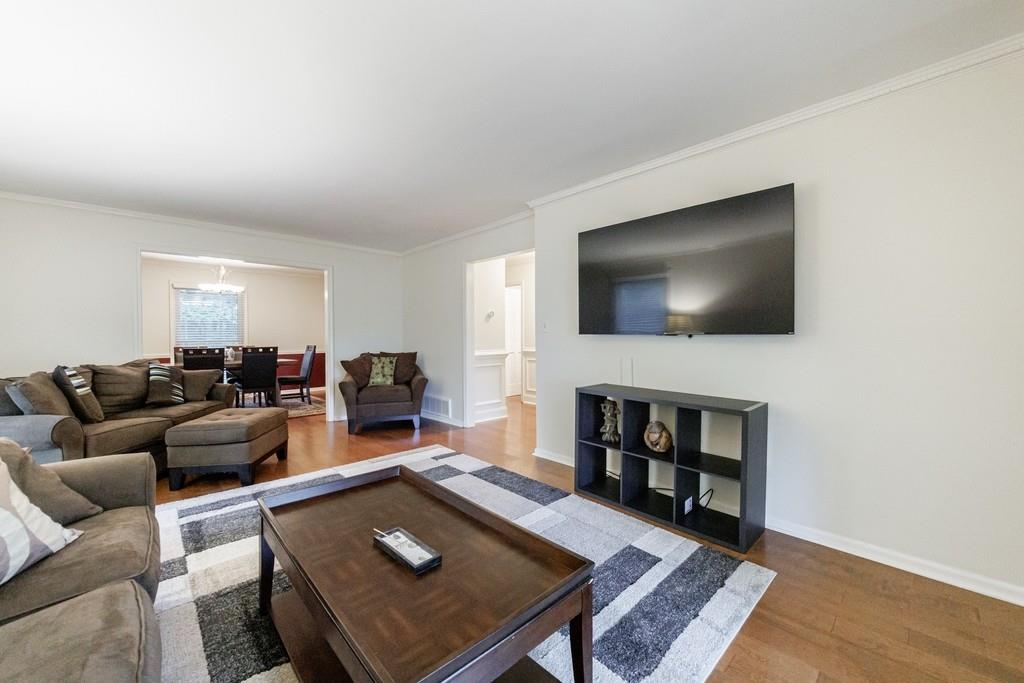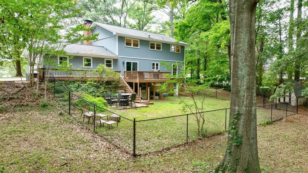 A True Hidden Gem on 1.18 Acres! This beautifully renovated 4-bedroom, 2.5-bath home offers space, style, and unbeatable convenience just steps from the elementary and middle schools, so kids can walk to and from class. Set on 1.18 acres, the property features a fenced yard perfect for children and pets, plus land stretching to the tree line for privacy or future development potential. Inside, you'll love the large foyer, spacious living and dining rooms, and an eat-in kitchen with warm wood cabinetry, granite countertops, stainless steel appliances, and easy access to the deck for indoor-outdoor entertaining. The family room with fireplace adds cozy charm, while the oversized primary suite and three additional bedrooms provide room for everyone. The unfinished basement with interior and exterior access offers endless possibilities for a media room, extra bedroom, or hobby space. With a new driveway, fresh paint, new carpet, and a prime location near parks, shopping, restaurants, and major highways, this home is the perfect blend of comfort, function, and investment potential. This one truly has it all!