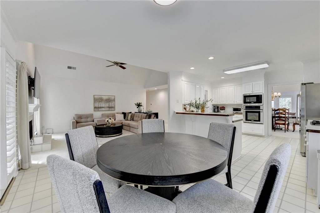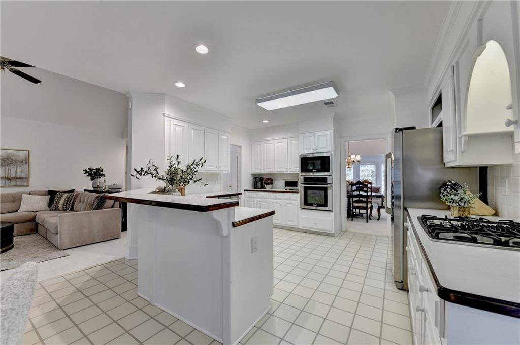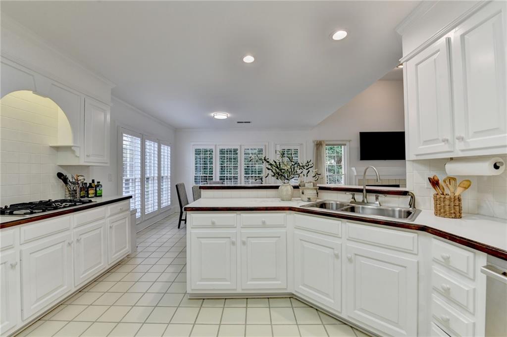 - KitchenBreakfast Bar, Breakfast Room, Cabinets White, Eat-in Kitchen, Other Surface Counters, Pantry, Solid Surface Counters, View to Family Room