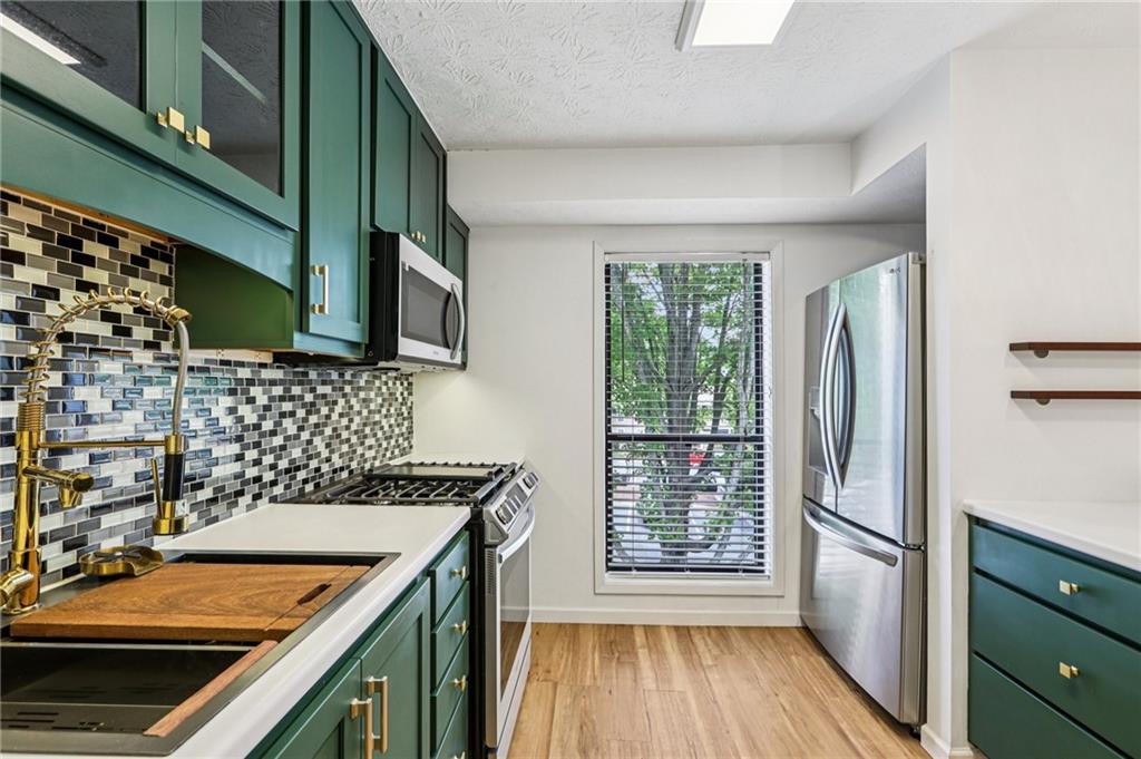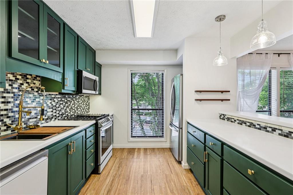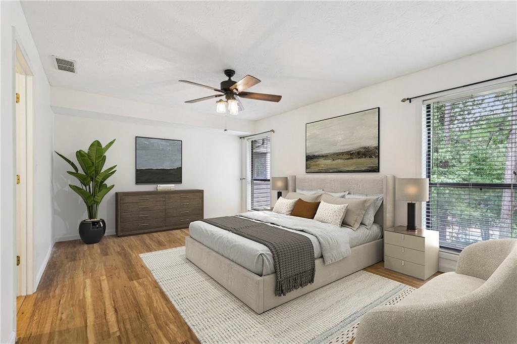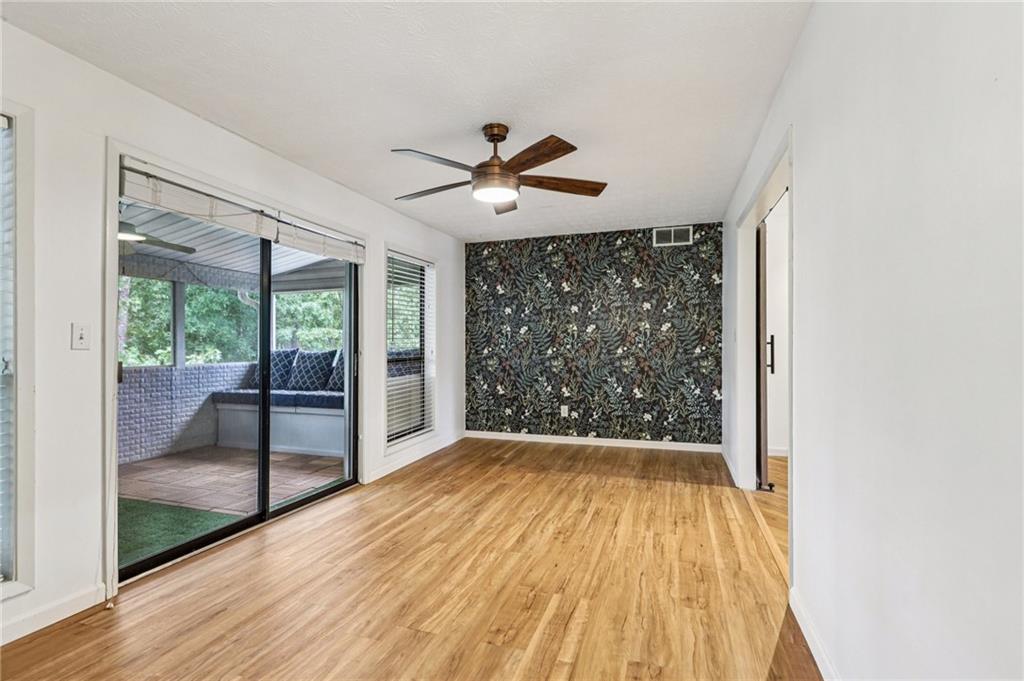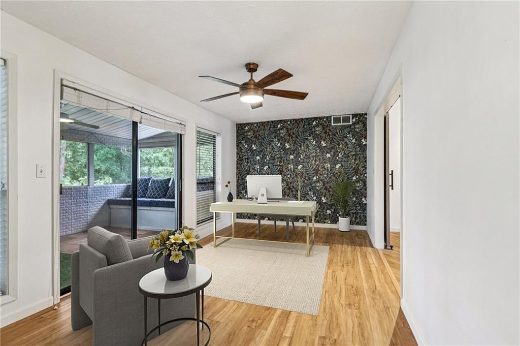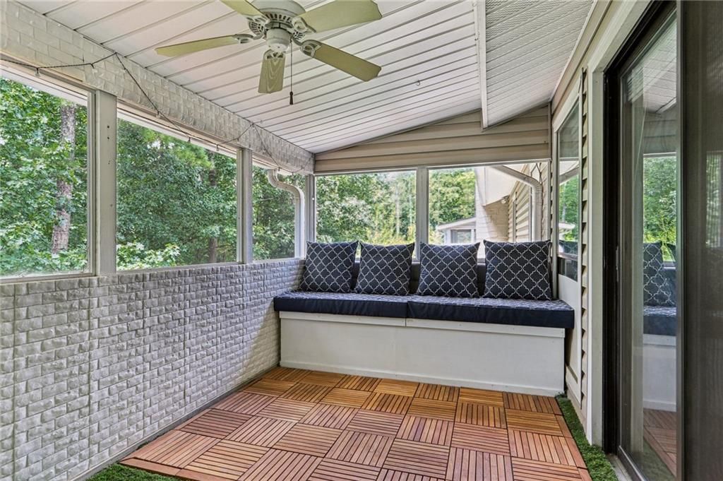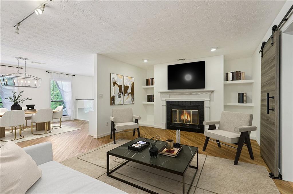 ***Updated***Samsung Bespoke Kitchen Appliances***Large Floorplan***Convenient Location***Gorgeous, move-in ready home with luxury vinyl plank flooring throughout — no carpet! The spacious living room features custom built-ins, abundant natural light, and a cozy fireplace. An adjacent dining room with an updated light fixture flows seamlessly into the beautifully updated kitchen, showcasing on-trend painted cabinets, Samsung Bespoke stainless steel appliances, new LG ThinQ refrigerator, upgraded sink, and stylish tile backsplash. A versatile flex space just off the living room closes with barn doors, making the perfect second living area, home office, or cozy reading nook. Step outside to a screened-in porch for year-round enjoyment! The spacious primary suite offers a fully renovated en-suite bath with dual sinks and a fully tiled frameless glass shower. A second bedroom, full hall bath, and convenient laundry room complete the main level. Nestled in a well-maintained neighborhood—truly a hidden gem—you’re just minutes from I-75 and GA-400, 15 minutes from Atlanta, and close to everyday conveniences. Publix and Kroger are just a stone's throw, with Walmart, Target, The Battery, Cumberland Mall, and Costco all less than 10 minutes away. Endless dining options nearby range from fast favorites like Chick-fil-A, Panera Bread, and Wendy’s to local gems such as Brass Tap, R.C. Kitchen, Mellow Mushroom, Tasty China, Hikaru Ramen, and Pappadeaux. Fitness enthusiasts will love having LA Fitness right outside the neighborhood. This home combines style, comfort, and unbeatable location—perfect for both relaxing at home and enjoying everything the area has to offer! Book your tour today!