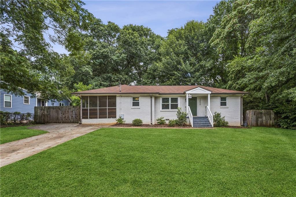 Welcome to 1400 Smith Street SE, an impeccably renovated three-bedroom, two-bath ranch nestled on over half an acre in the heart of East Atlanta. Set on a rare, flat, oversized lot that feels like a private park oasis, this home offers an incredible combination of style, comfort, and privacy, just minutes from East Atlanta Village, the BeltLine, and local favorites. Step inside to discover refinished hardwood floors, fresh paint, an open-concept layout, and a light-filled kitchen with stainless steel appliances, a gas stove, venthood, tile backsplash, and views into the dining and living areas, perfect for everyday living and entertaining. The primary suite is a true retreat with its own private entrance to the back deck, a spa-like bath featuring a walk-in shower, dual vanities, and a custom built-in walk-in closet. Two secondary bedrooms share a beautifully updated full bath. A dedicated office with custom iron doors and a dry bar offers an ideal work-from-home setup, flex space, bar room or playroom. Enjoy outdoor living on the spacious screened-in porch, a large patio with bistro lights, and a large back deck overlooking the fully fenced and landscaped backyard, a rare find in the city. There is plenty of storage space in the unfinished exterior entry basement that is approx. 17’ by 21’ ! Additional highlights include a laundry room off kitchen with sink and shelving, keypad entry, Ring doorbell and cameras, and a shed for extra storage. Major system upgrades include a newer roof, replaced HVAC and ductwork (with zone damper), professional basement waterproofing with lifetime warranty, updated plumbing, fencing under the deck, and updated light fixtures throughout!