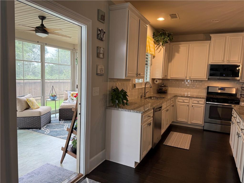 Charming and BETTER THAN NEW! In the beautiful Whisper Point neighborhood, and the sought after Silver City Elementary school district, this beautifully maintained home is loaded with upgrades, including stylish light fixtures, crown molding, plantation shutters, hardwood floors, lush landscaping, fenced backyard and a glass-enclosed rear porch perfect for year-round enjoyment. Inside, you’ll find an oversized master suite with a spacious bathroom and oversized walk-in closet. You will love preparing meals in the bright white kitchen that features granite countertops, a large island, abundant cabinets, plenty of prep space, and a convenient touchless faucet. The open layout connects the kitchen to the inviting family room with a cozy fireplace and enclosed rear porch, while a separate dining area and additional flex living space offer room to entertain or relax. Located near the new Coal Mountain City Center, schools, shopping and dining, and only minutes to GA 400 and the Dawsonville Premium Outlet Mall. Truly move in ready. Schedule your showing today!