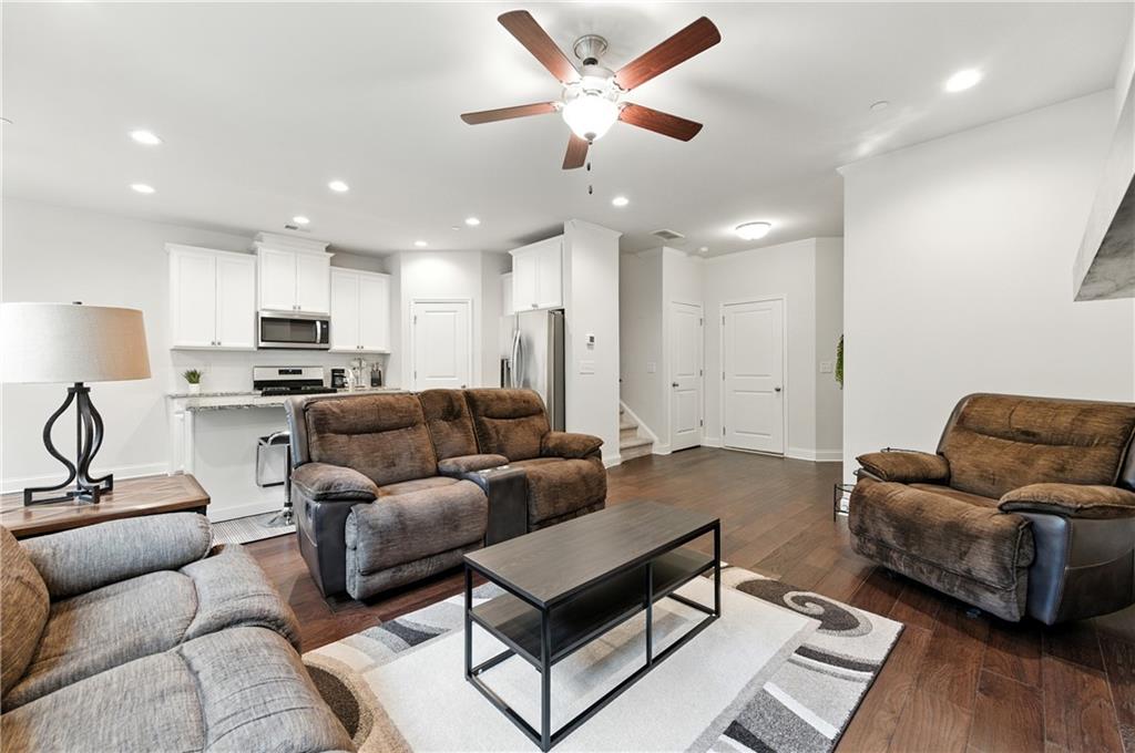 This beautiful 3 bedroom, 2.5 bath townhome in the Spring Creek Place community is conveniently located minutes from Downtown Woodstock and I-575. Enjoy the benefits of like-new construction with a spacious, open concept floor plan. Large windows fill up the living space with an abundance of natural light. The first floor features hardwood flooring and a modern kitchen layout with an open view to the family room and dining area. Sleek white kitchen cabinetry, stainless steel appliances, gas range, and eat-in kitchen island. Half bath for guests located in entry foyer. Step outside and enjoy your peaceful, fenced-in back porch. Upstairs, you will find an oversized primary bedroom and spa-like bath with a large walk-in closet. Two additional bedrooms, bathroom, and laundry room complete the upper level. Sought-after Woodstock school districts and near plenty of shopping/dining/recreation options.