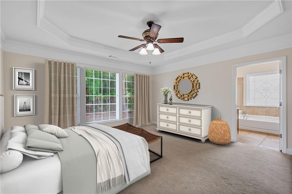 - FeaturesDisappearing Attic Stairs, Double Vanity, Entrance Foyer, High Ceilings 9 ft Main, Tray Ceiling(s), Walk-In Closet(s)