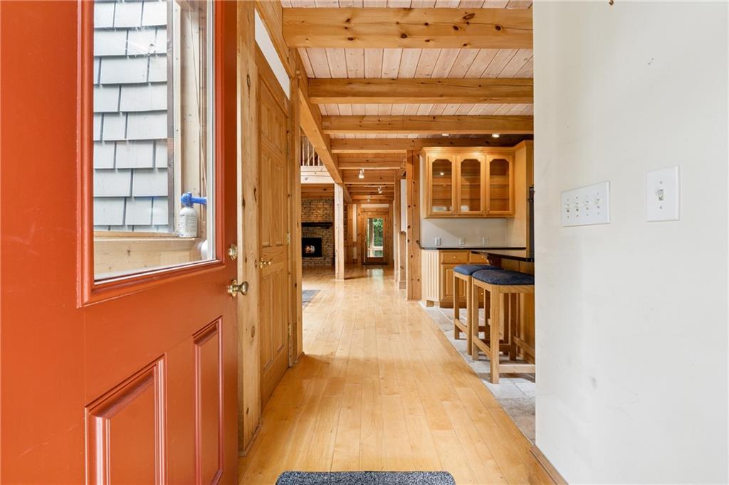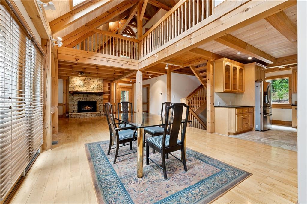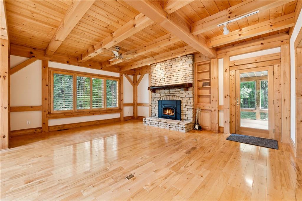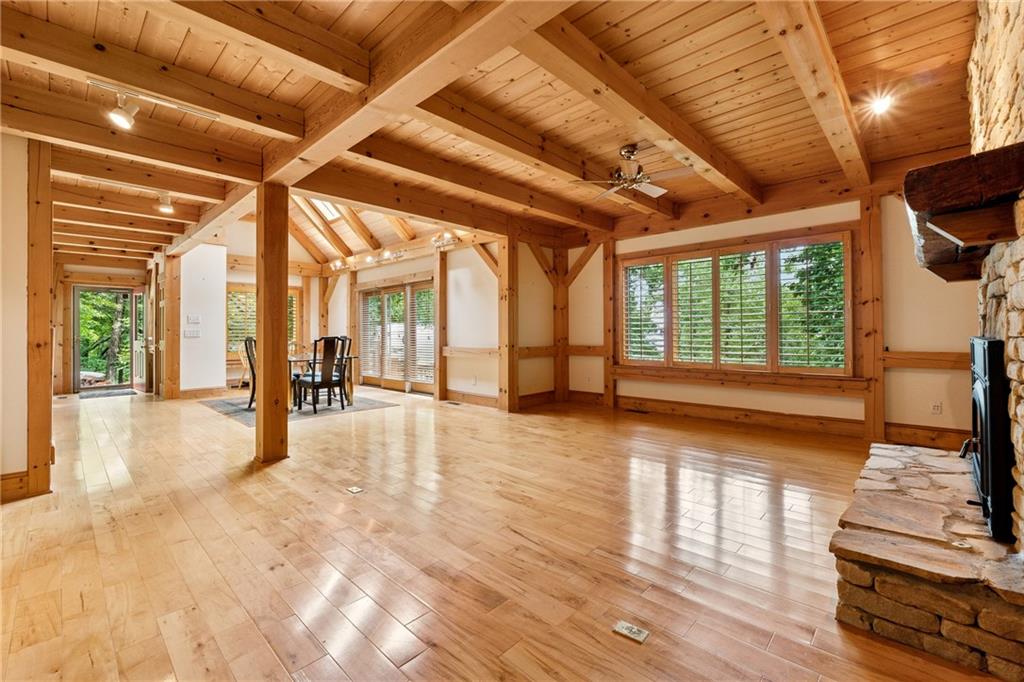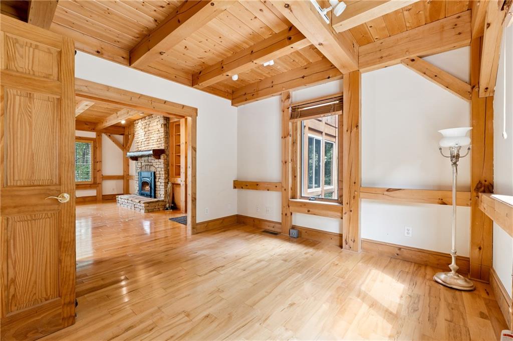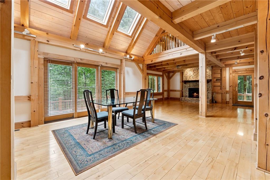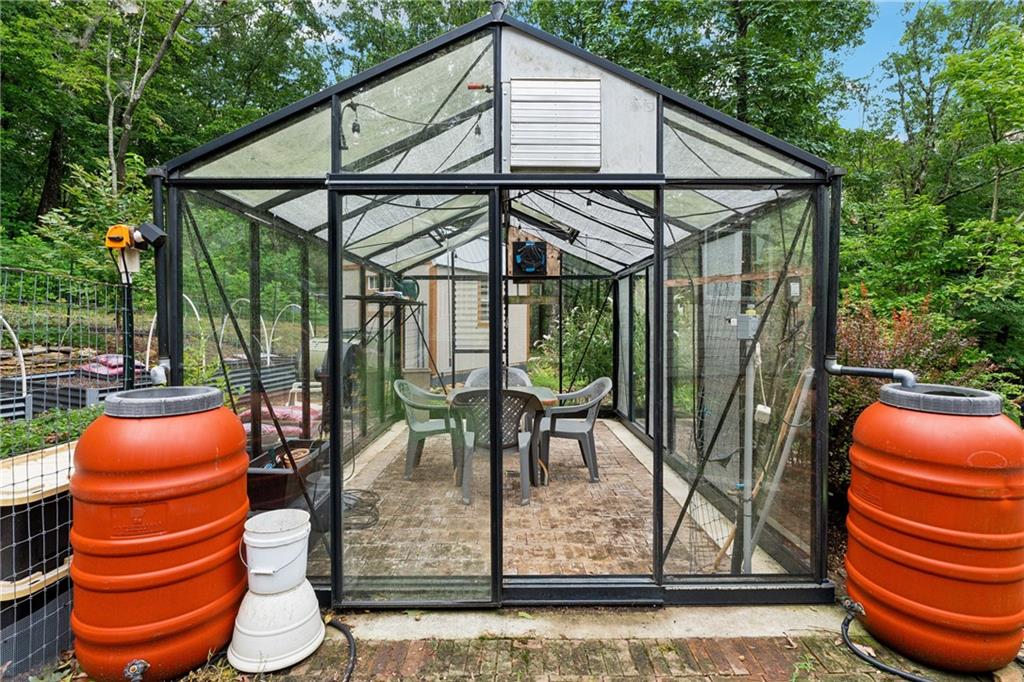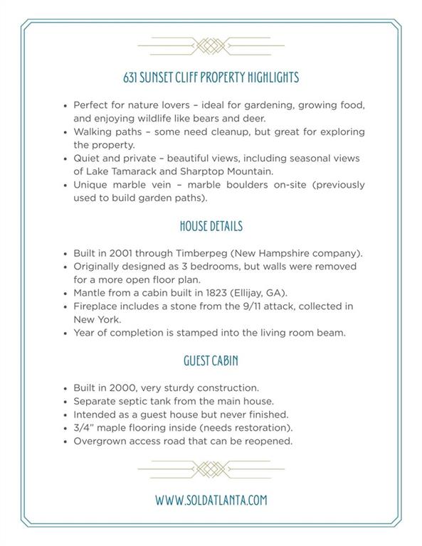 Exquisite Mountain Estate | Approx 6 Acres | Historic Charm & Endless Possibilities. LOTS of additional rooms! A winding private drive leads to this meticulously maintained custom Timberpeg home, thoughtfully designed with an open floor plan and rich historic character. Currently offering spacious living areas, this retreat can be easily converted into a 5-bedroom haven. Beautiful hardwood flooring, tons of natural light, a spacious kitchen with a large center island, granite countertops, stainless steel appliances, a Thermador cooktop, and a convenient pantry. For gardening enthusiasts, a Victorian glass greenhouse with automatic climate-control windows offers the ideal space to nurture your plants year-round. Outside, the estate features a large detached garage, a walk-through shed, AND a sturdy unfinished guest cabin with plumbing—perfect for a home office, homeschooling studio, or future guest house. Enjoy the fireside screen porch or the two additional spacious outside decks. Set against breathtaking views of Sharptop Mountain, the property is a nature lover’s dream—complete with abundant wildlife, serene walking paths, and seasonal views of Lake Tamarack. Inside, you’ll find a Vermont Castings wood insert fireplace, timeless details such as an 1823 mantle, and an upstairs Vermont Castings gas heater for cozy comfort. Practical features include a full-house generator, a 1,000-gallon buried propane tank, well water, and HOA-maintained roads for easy year-round access. This is more than a home—it’s a private mountain sanctuary where history, craftsmanship, and natural beauty converge.