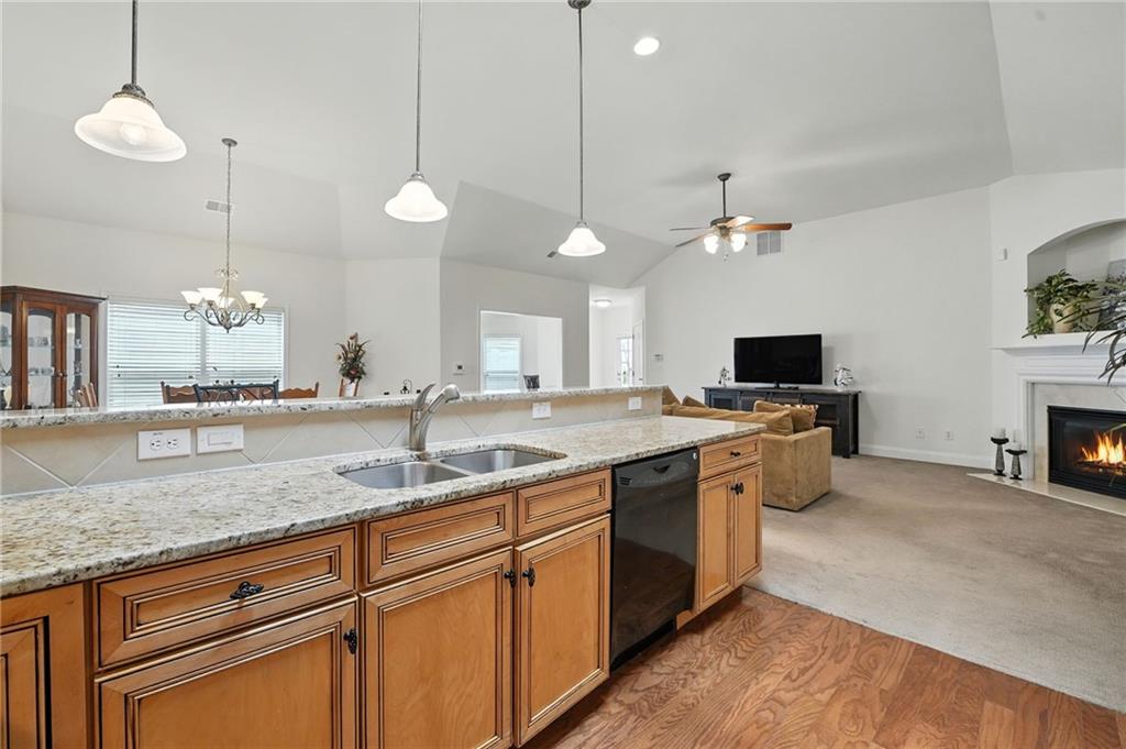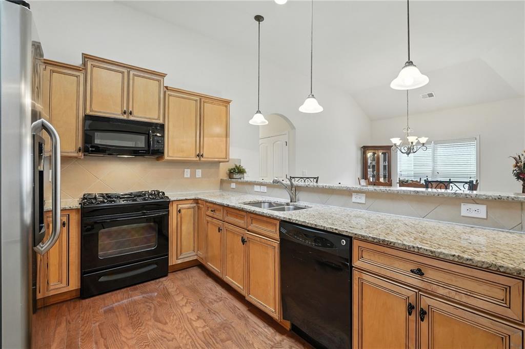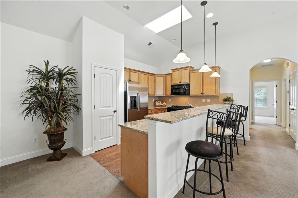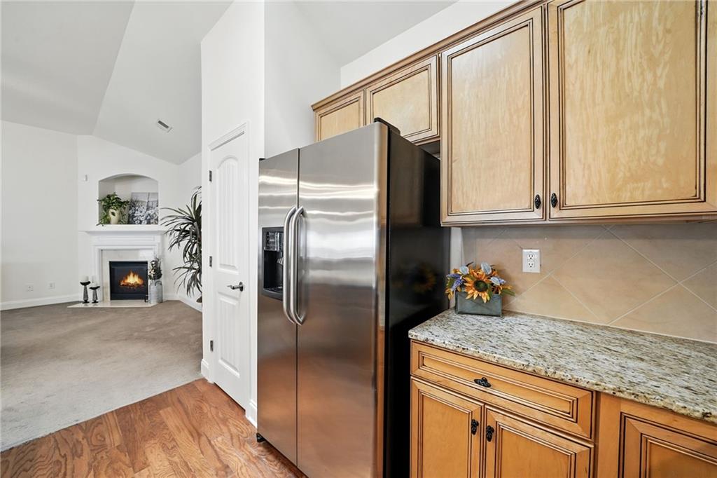 - KitchenBreakfast Bar, Cabinets Stain, Pantry, Stone Counters, View to Family Room