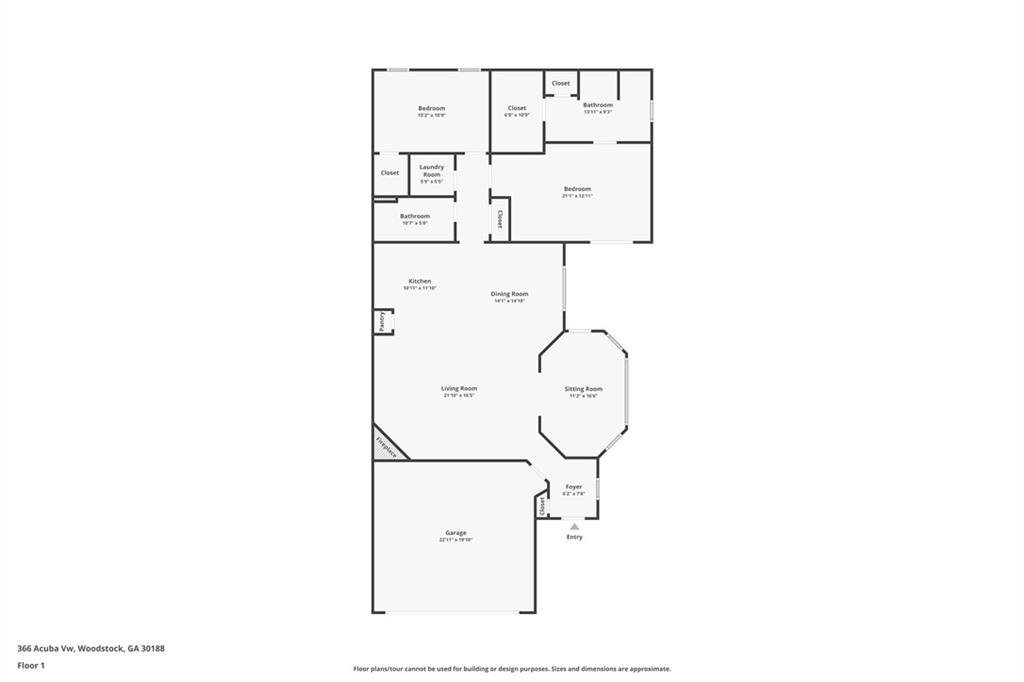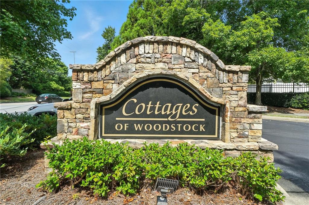 Open and inviting, bright and spacious this home is sure to please. Located in the vibrant and beautiful Cottages of Woodstock neighborhood close to shopping, minutes from Downtown Woodstock and all it has to offer, with easy access to the freeway. Come explore the active adult lifestyle where mowing the grass is the thing of the past and enjoying the pool, fitness center, and activities takes the place of maintenance and lawn chores! Gated and private this community is sure to please. Come step into the bright foyer and be greeted by the spacious and open floor plan. Downsizing does not have to mean giving up entertaining space! This beautiful home has room to gather and entertain with a large Living Room, Dining Room, Breakfast Bar/Entertaining Island that flow into the Sun Room with easy access to the outdoor patio. Boasting 1752 square feet this 2 bedroom 2 bath home has plenty of room to spread out but not so much room as to overwhelm. It is just right! The foyer has a hall closet, the kitchen has a pantry, there is a LARGE Laundry Room that fits a full size washer and dryer, a spacious hall closet, and both the secondary bedroom and Master Bedroom have walk in closets! The garage doors are even one foot larger than the average door! Giving you that extra space for easy entry and exit of your beautiful home! An easy walk to the beautiful swimming pool, the Clubhouse with a fitness center, this home is sure to be just what you have been looking for! Come explore your new found freedom from chores and embrace the active adult lifestyle! HOA maintains roof (was replaced 2018/2019) and exterior paint (which looks fabulous) as well as the grounds: lawn, flowers, shrubs, and trees. The amenities include pool, clubhouse, exercise facility, and there are activities. Be sure to check out the floorplan and 3D walk through...then schedule an appointment to see this great home in person!