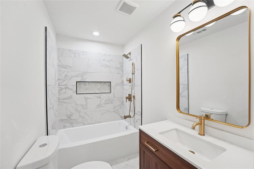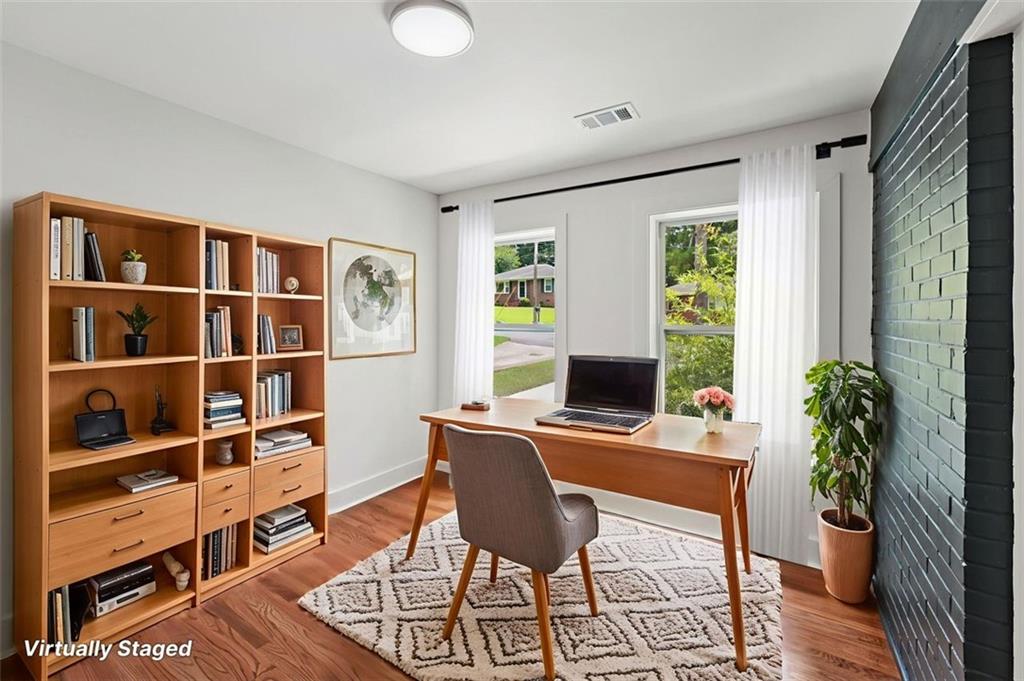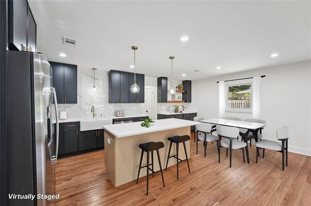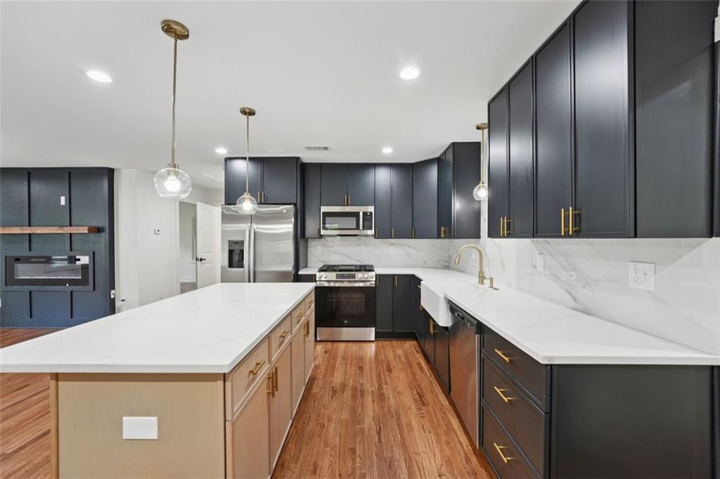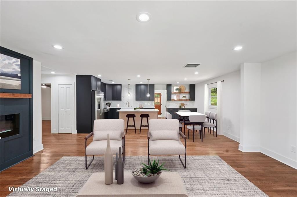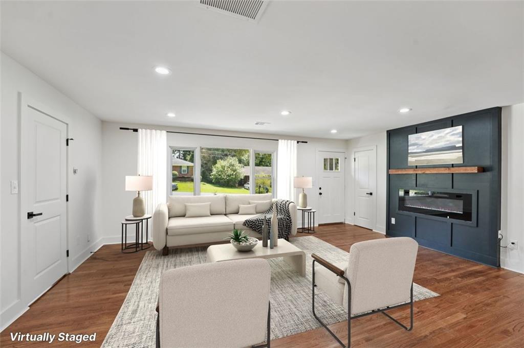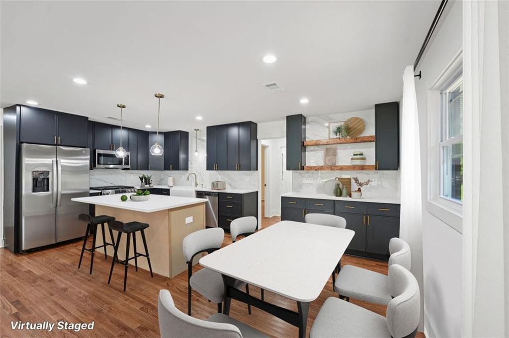 Beautifully Renovated 3BR/2BA Brick Ranch with Office – Move-In Ready! Welcome to your dream home! This stunning brick ranch blends timeless charm with modern elegance, offering 3 spacious bedrooms, 2 full bathrooms, and a dedicated office/study. Step inside to find gleaming hardwood floors throughout, tile in the baths and laundry, and a thoughtful floor plan perfect for both everyday living and entertaining. The gourmet kitchen is a true showstopper, featuring sleek black slim shaker cabinetry with 42” uppers, a white oak island, quartz countertops, and stainless steel appliances including a gas range, dishwasher, over-the-range microwave, refrigerator, and garbage disposal. Enjoy the convenience of a large walk-in pantry, an adjacent dining area with built-in cabinetry for china or barware, and a spacious living room with an electric fireplace. Your primary suite boasts a luxurious en-suite bath with a dual vanity, large tiled shower, and walk-in closet. All bedrooms have ceiling fans, while recessed lighting, pendant lights, and elegant sconced fixtures add warmth and style throughout. This home has been fully updated with brand new electrical, plumbing, HVAC, water heater, roof, gutters, driveway, and walkway—giving you complete peace of mind. Enjoy outdoor living on the back deck and in the fenced yard, plus the convenience of an attached carport and storage shed. Perfectly situated between Marietta Square and Smyrna Market Village and just 10 minutes from Truist Park, with the added bonus of no city taxes in unincorporated Smyrna. Nothing to do but move in and start making memories!